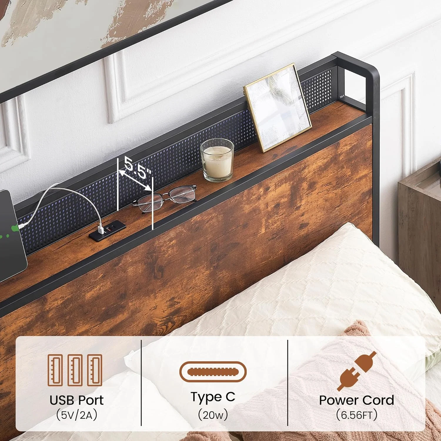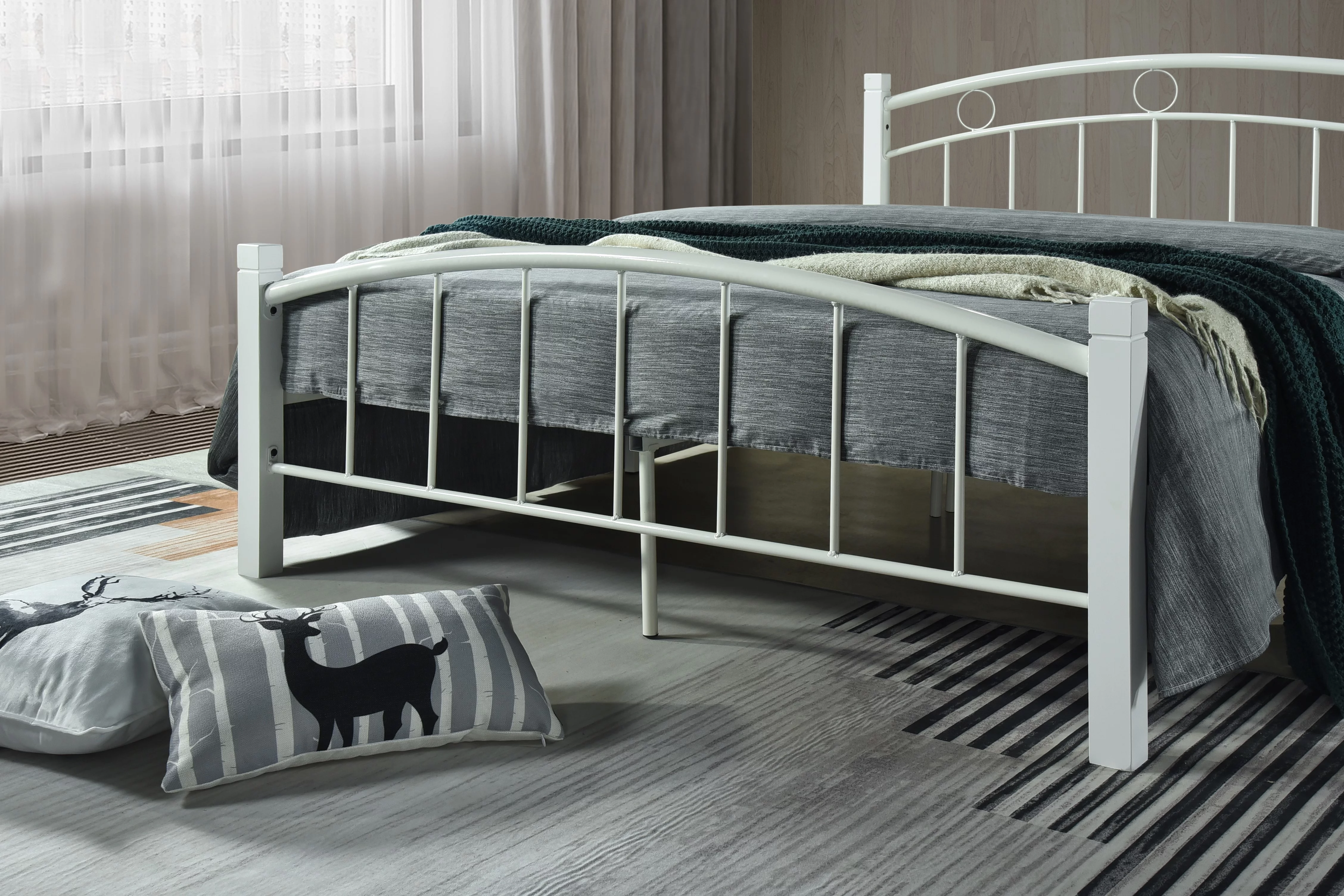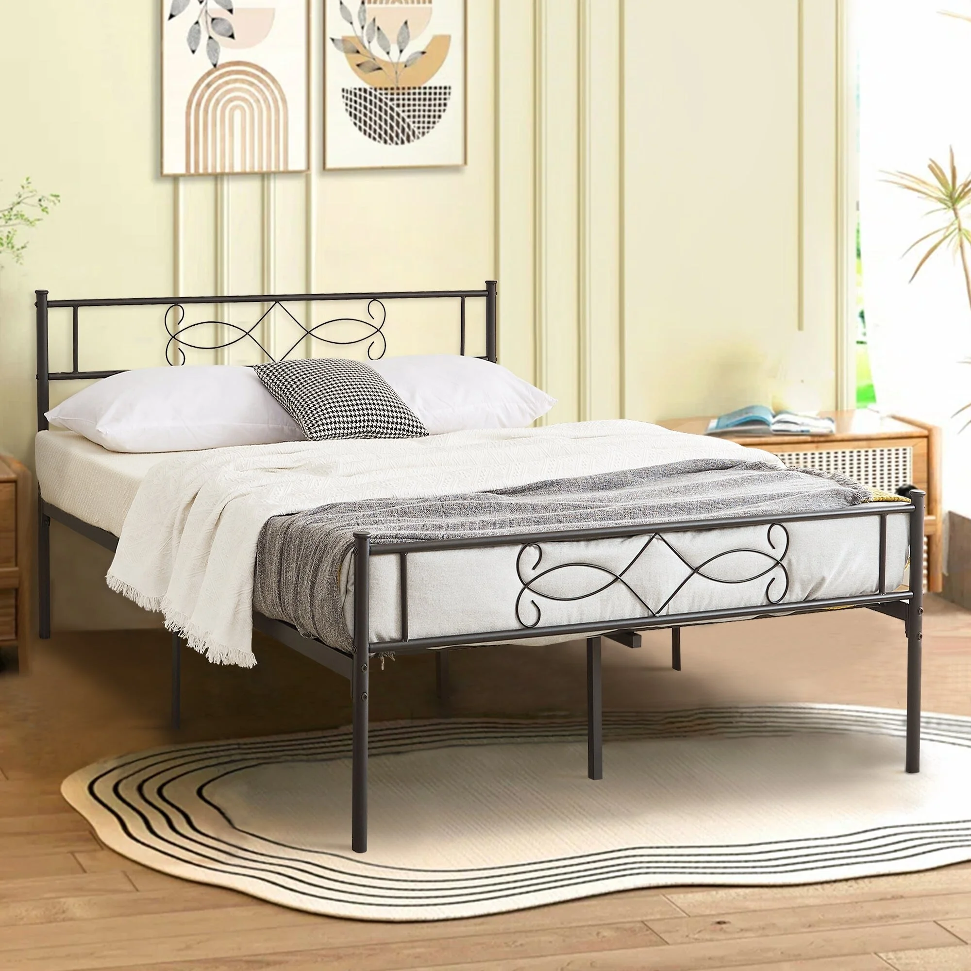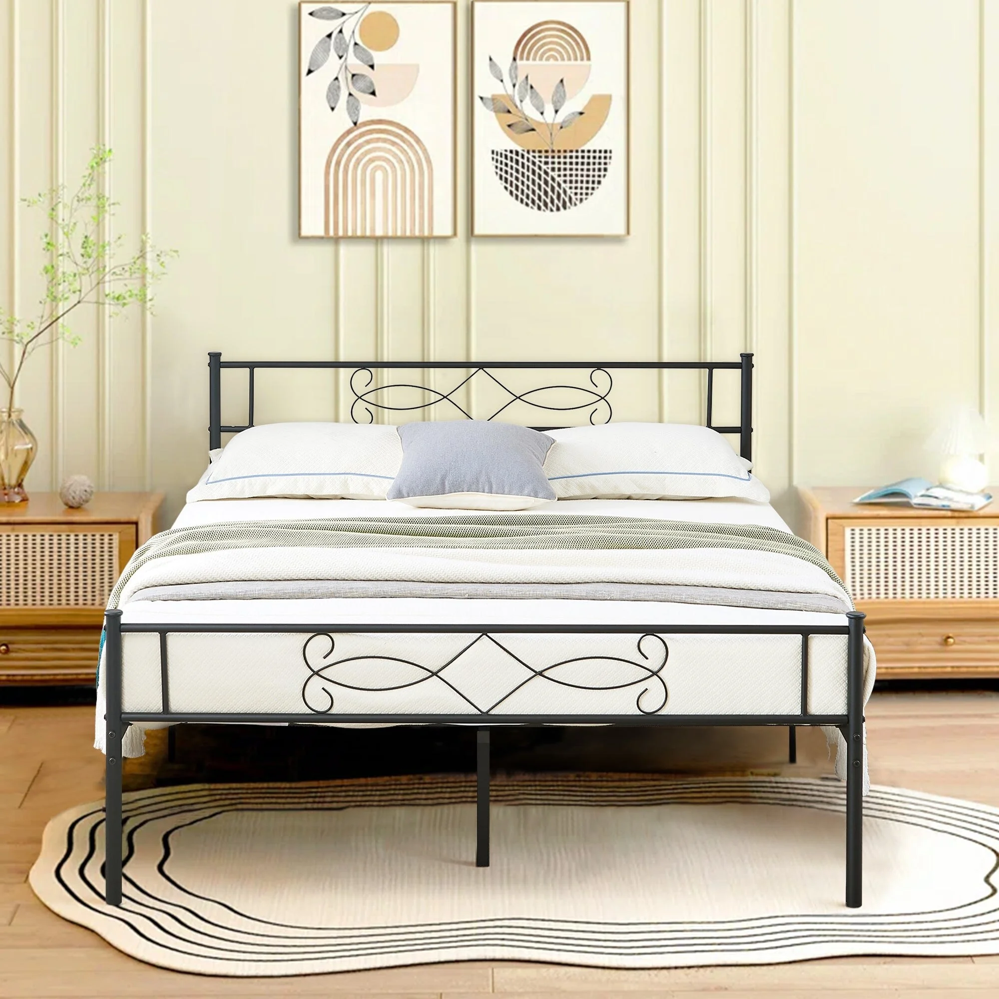 KHD Javlergo Metal Platform Bed Frame with Headboard and Footboard White Queen