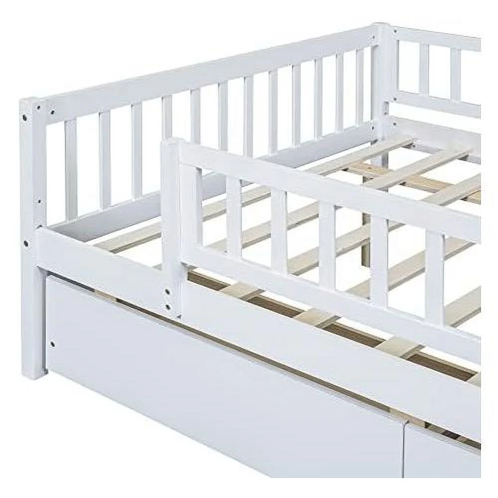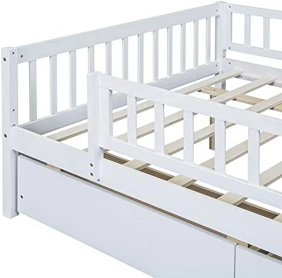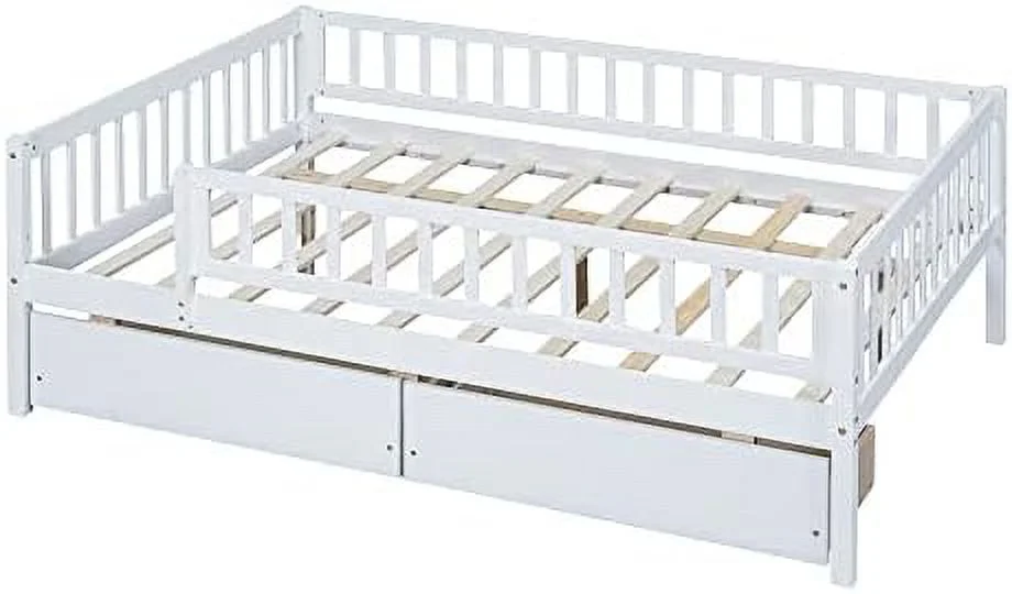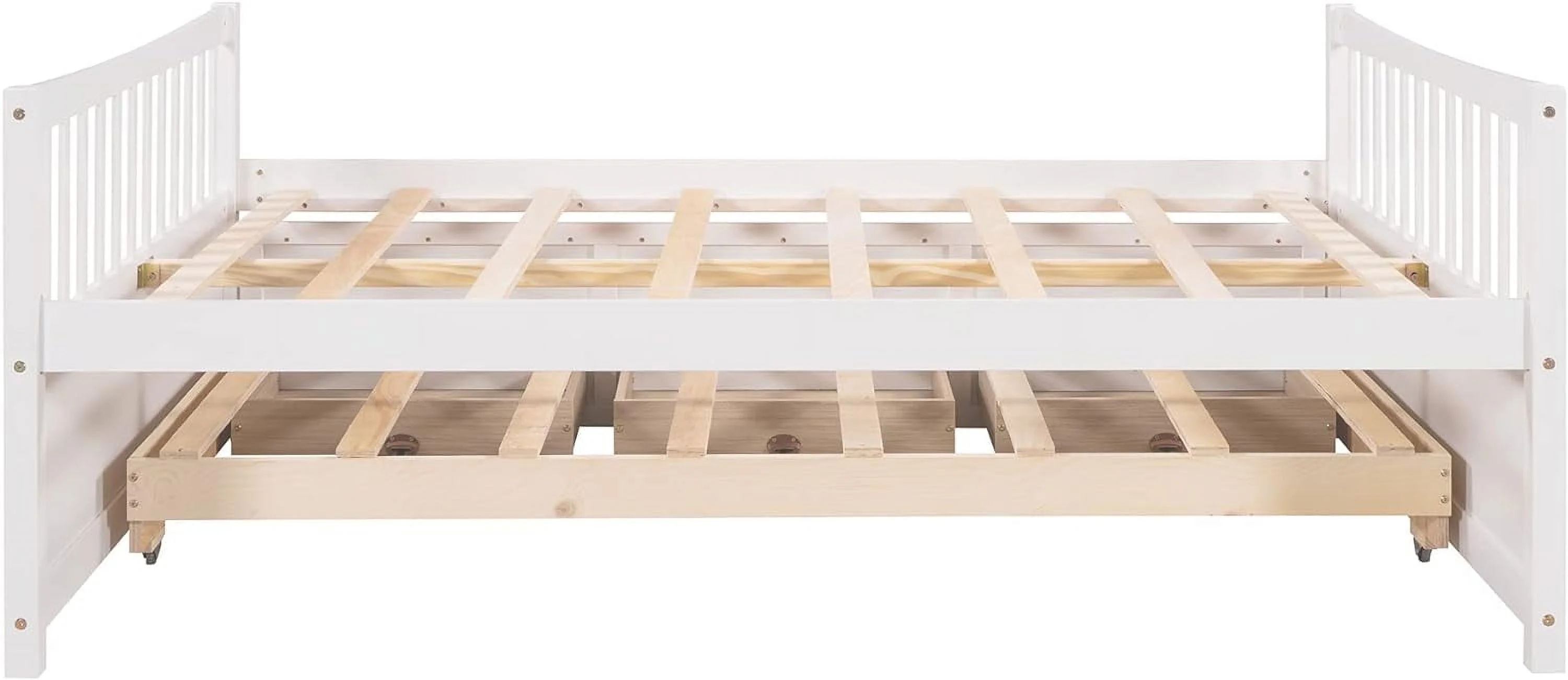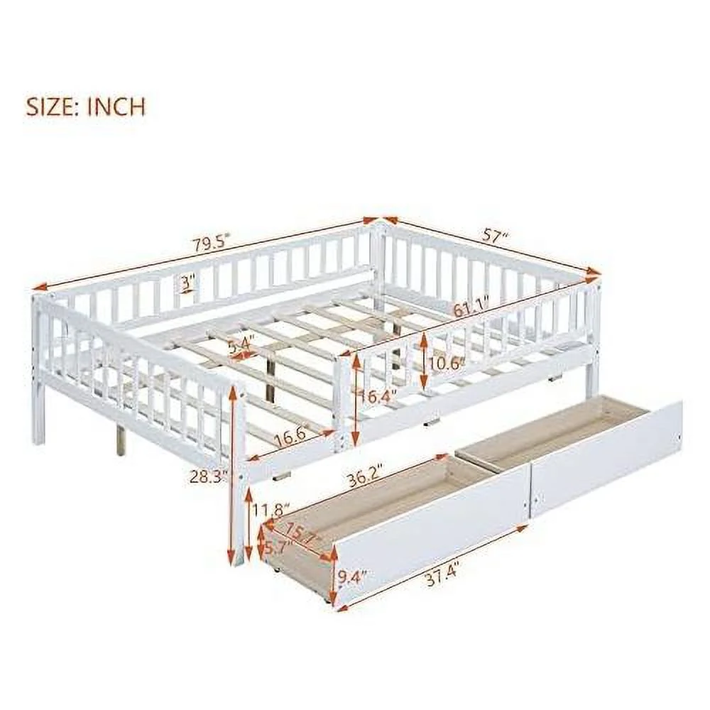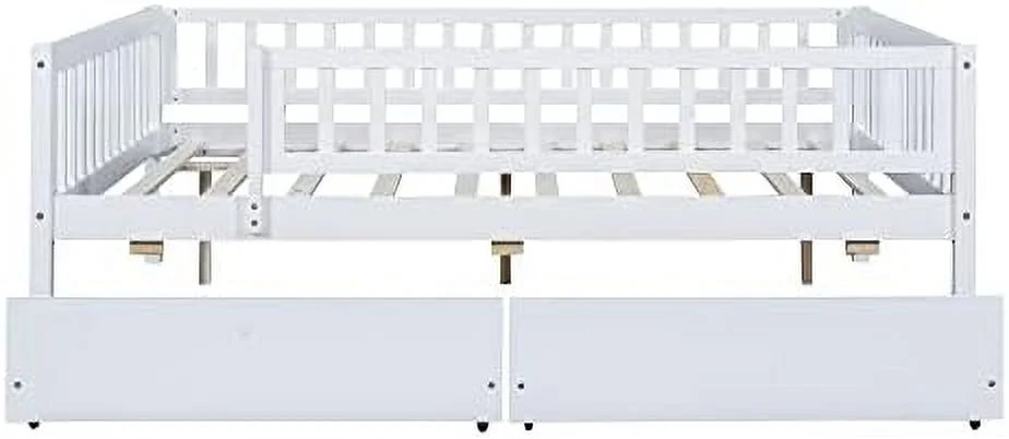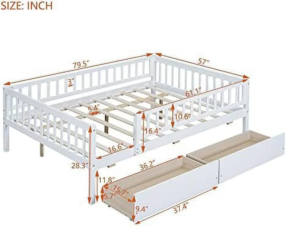 Full Size Daybed With Drawers, Wood Full Bed Frame, No Box Spring Needed, White
