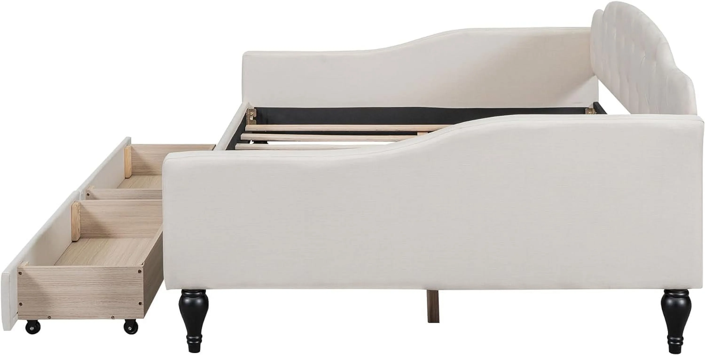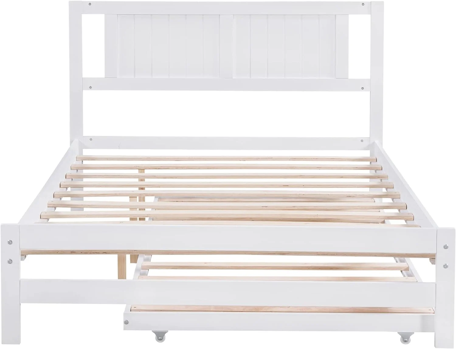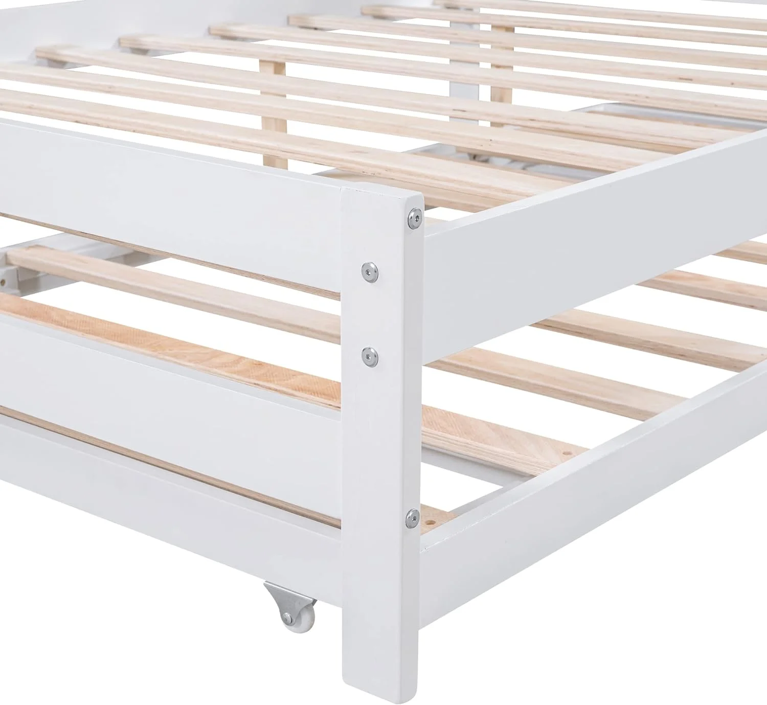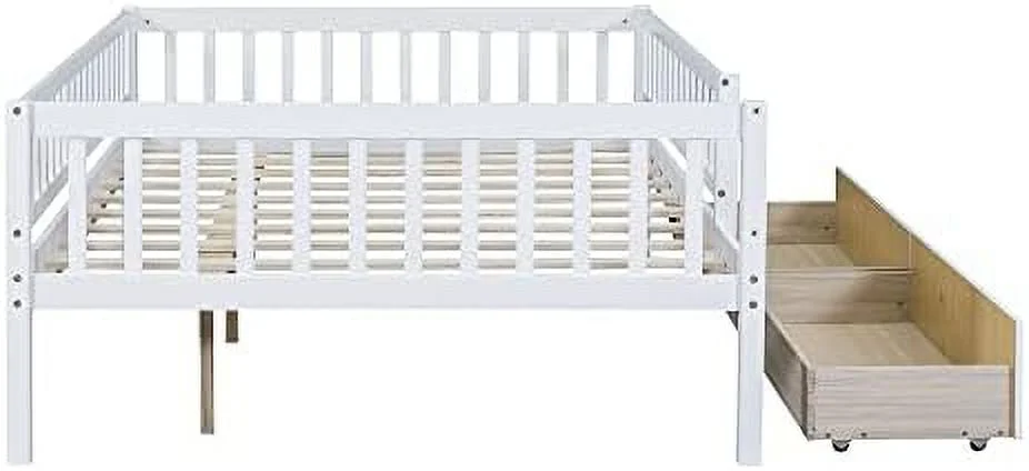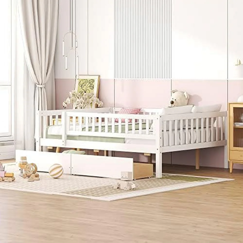 Full Size Daybed With Drawers, Wood Full Bed Frame, No Box Spring Needed, White