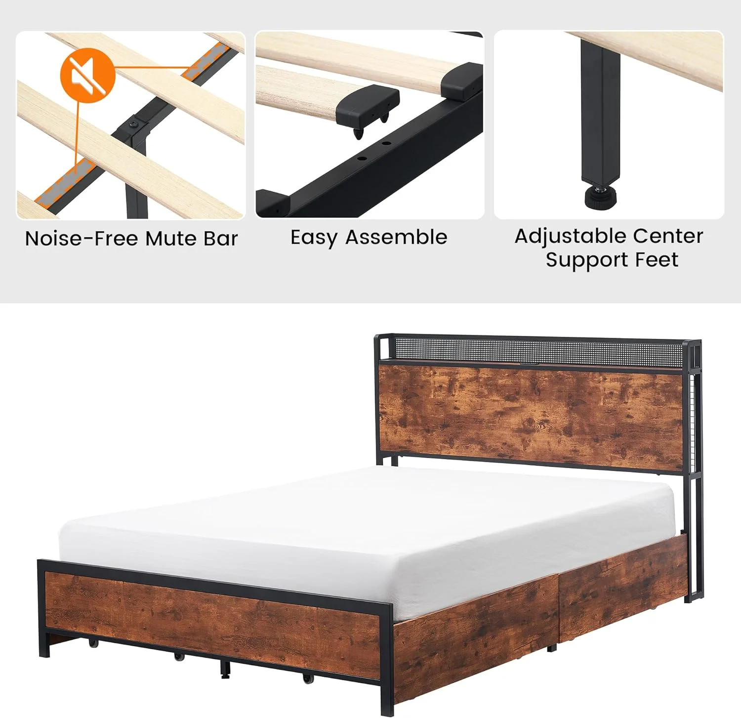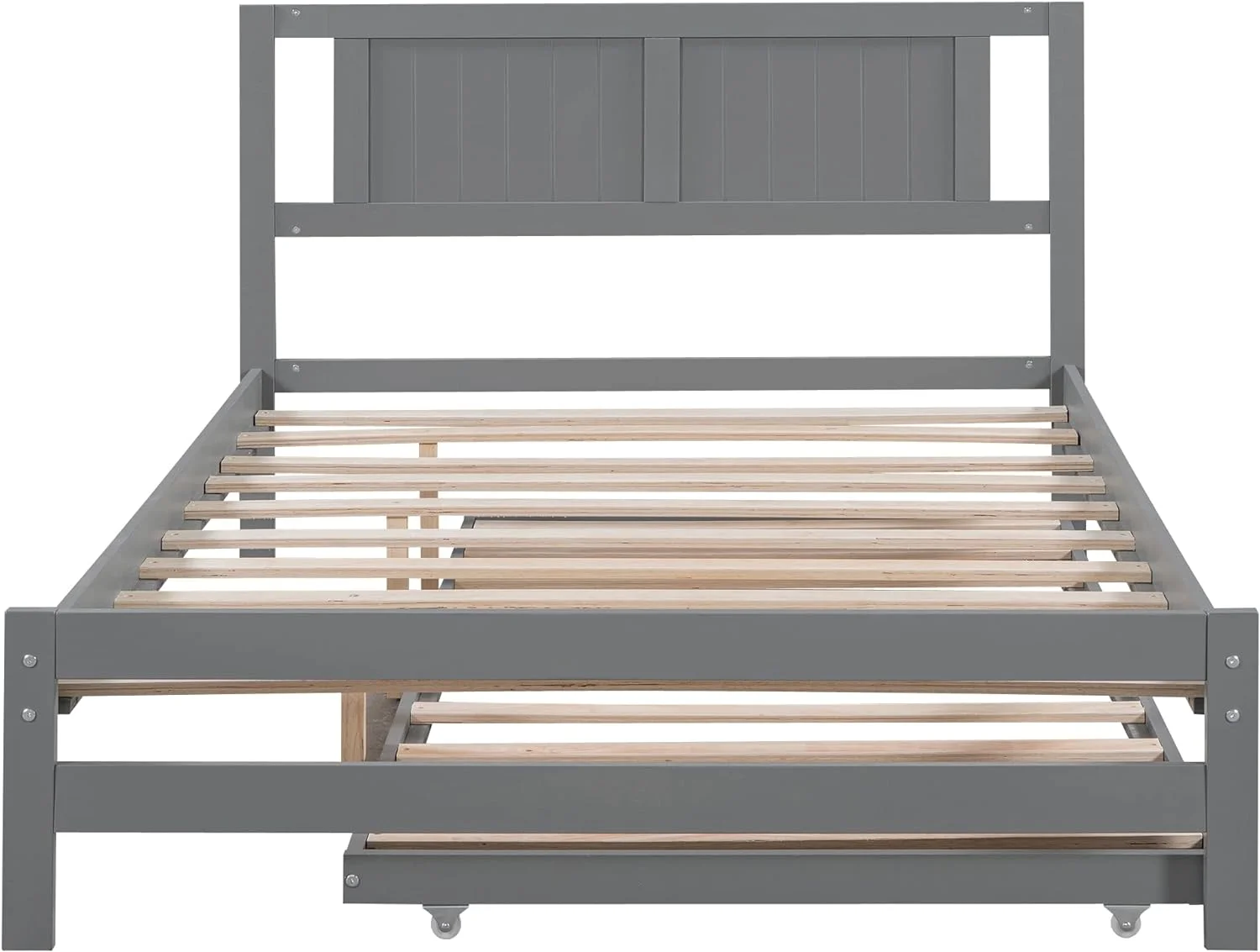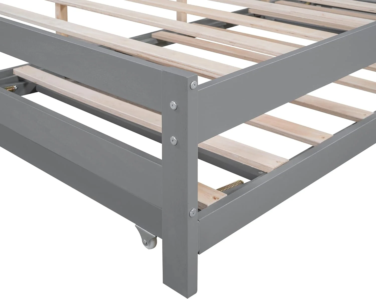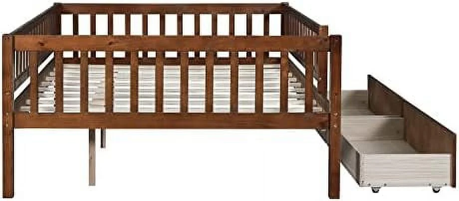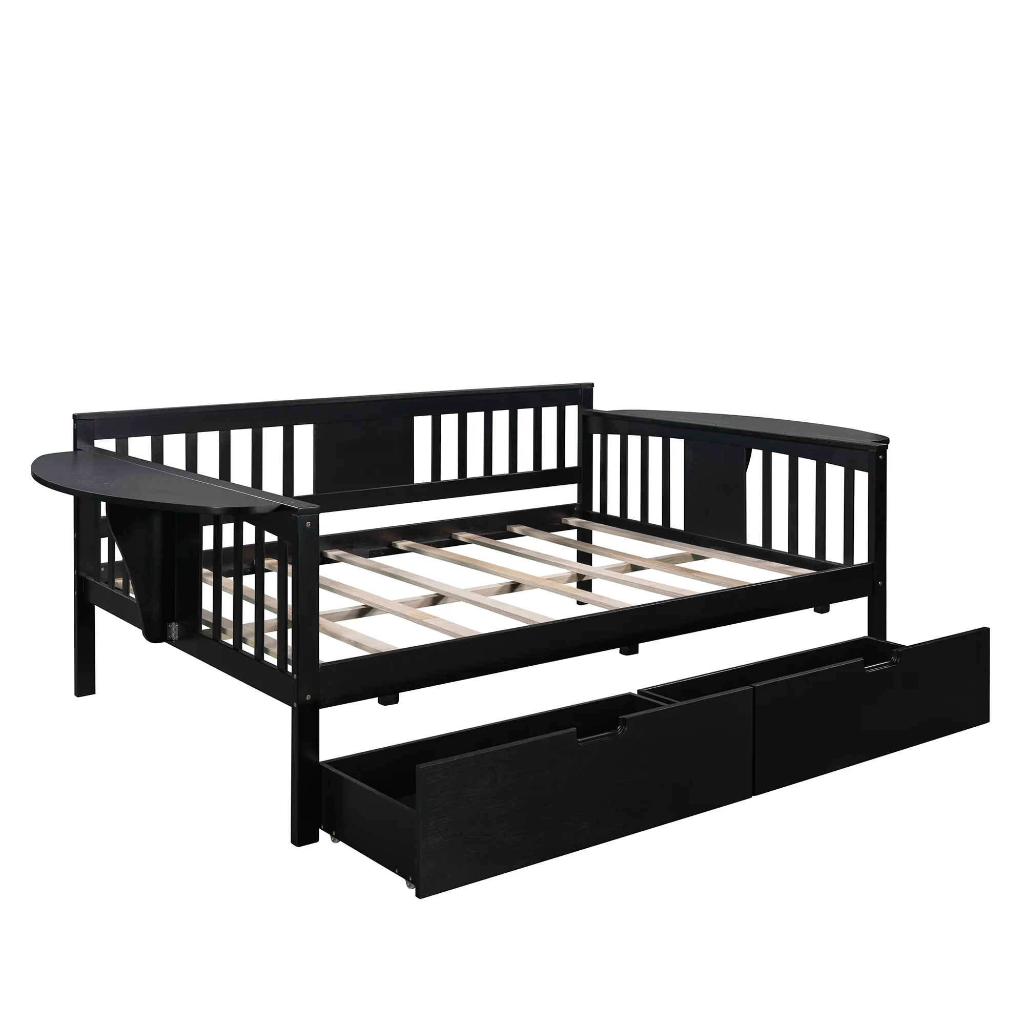 Full Size Daybed With Drawers, Wood Full Bed Frame, No Box Spring Needed, Walnut
