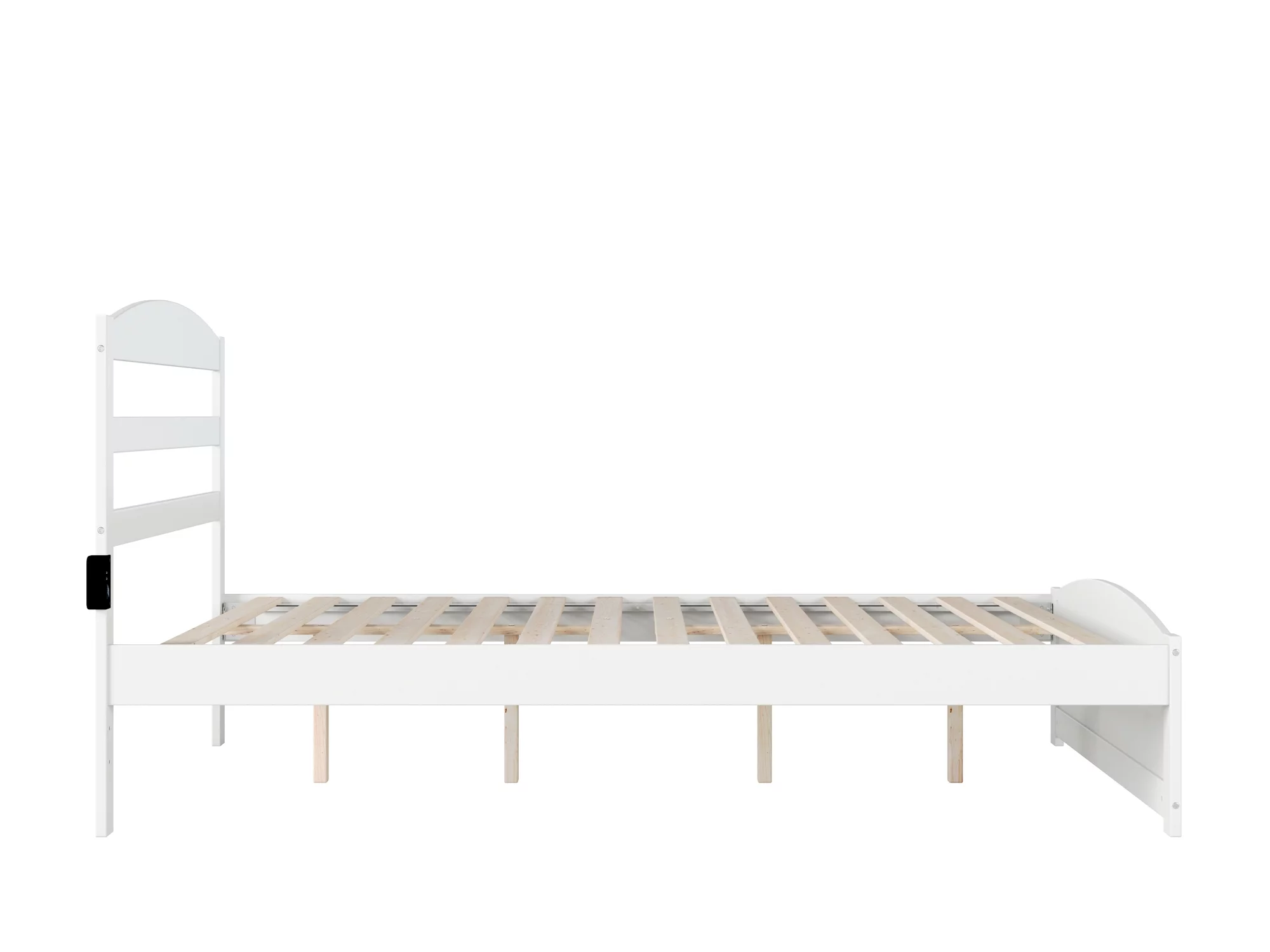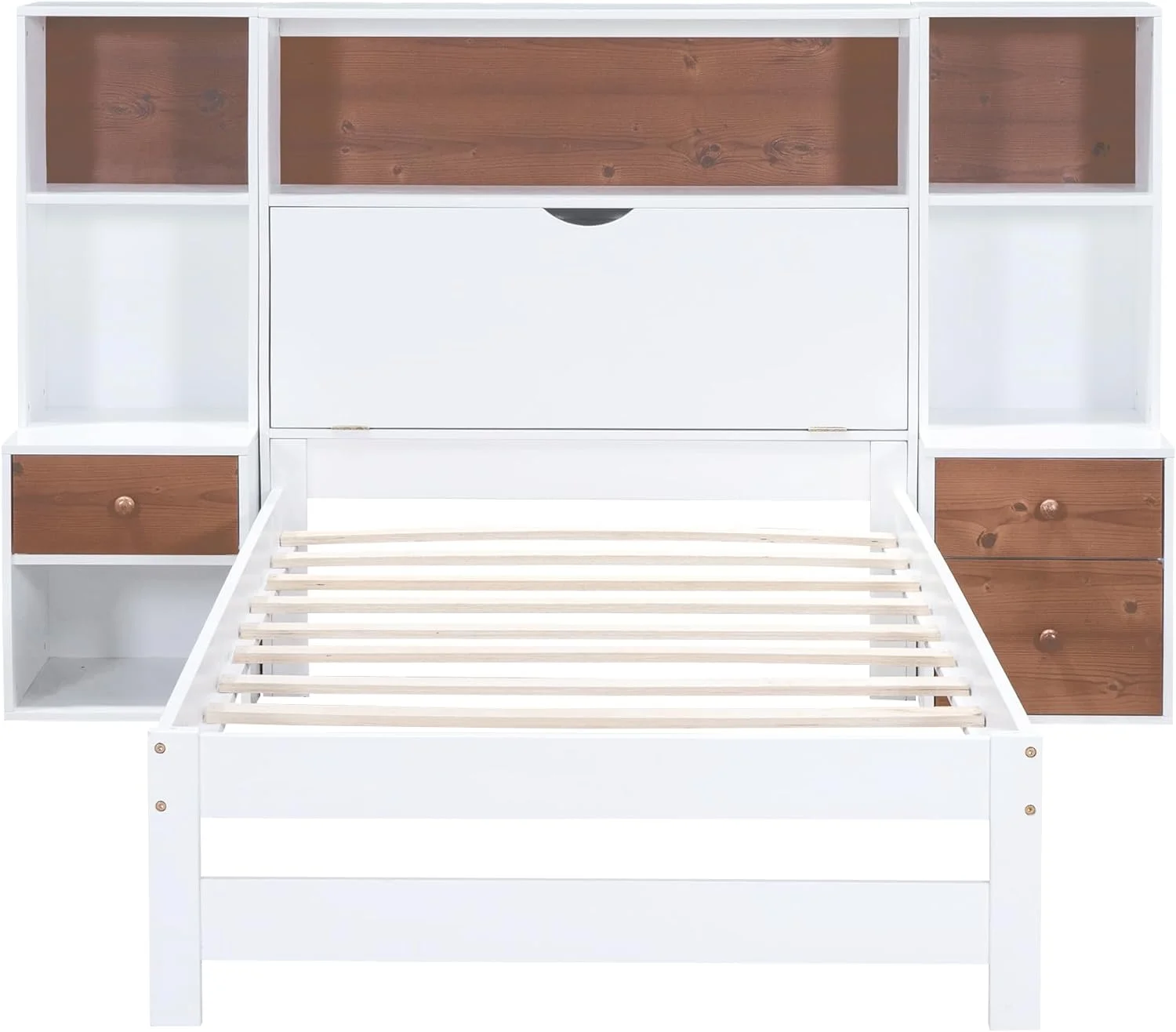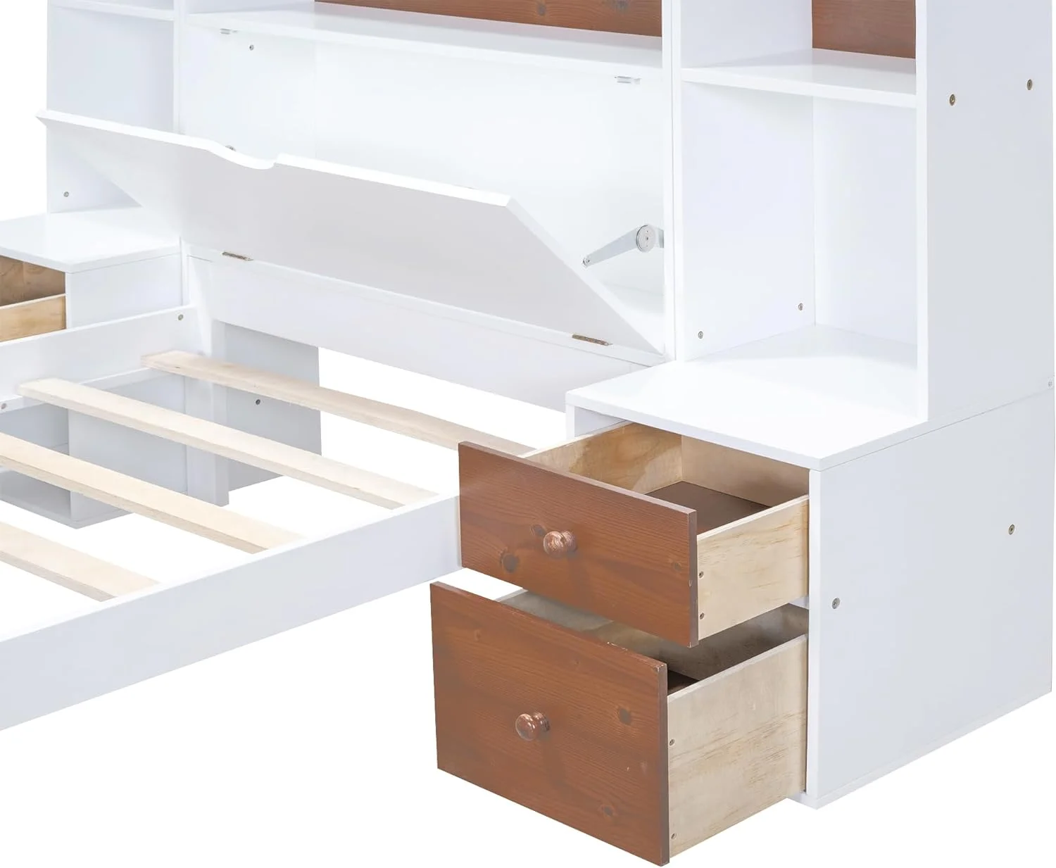 Size Platform Bed With Storage Headboard Ad Drawers, Bookcase Bed For Bedroom,Livig Room,White
