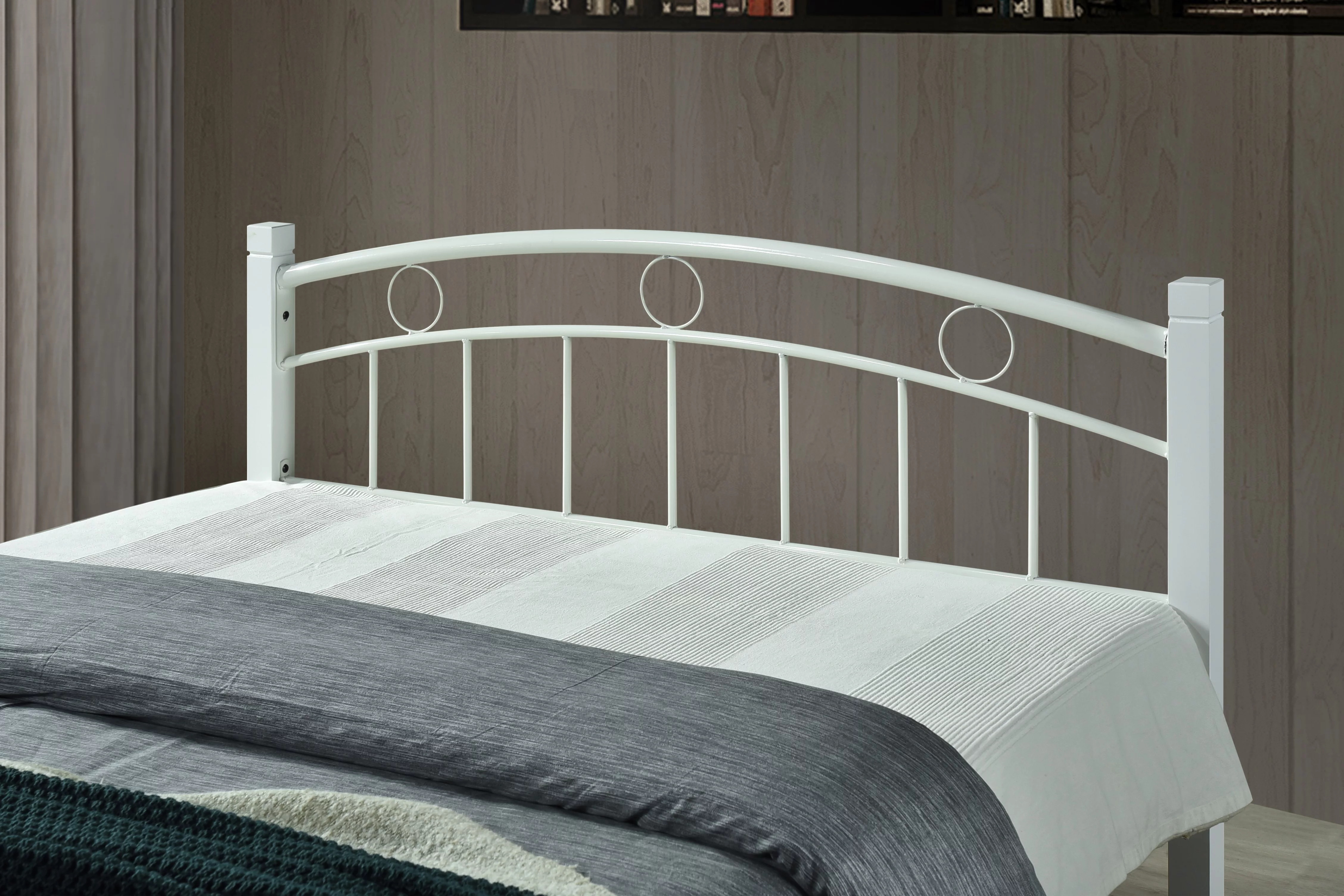 Hodedah Complete White Metal Platform Bed with Headboard and Footboard in Queen Size