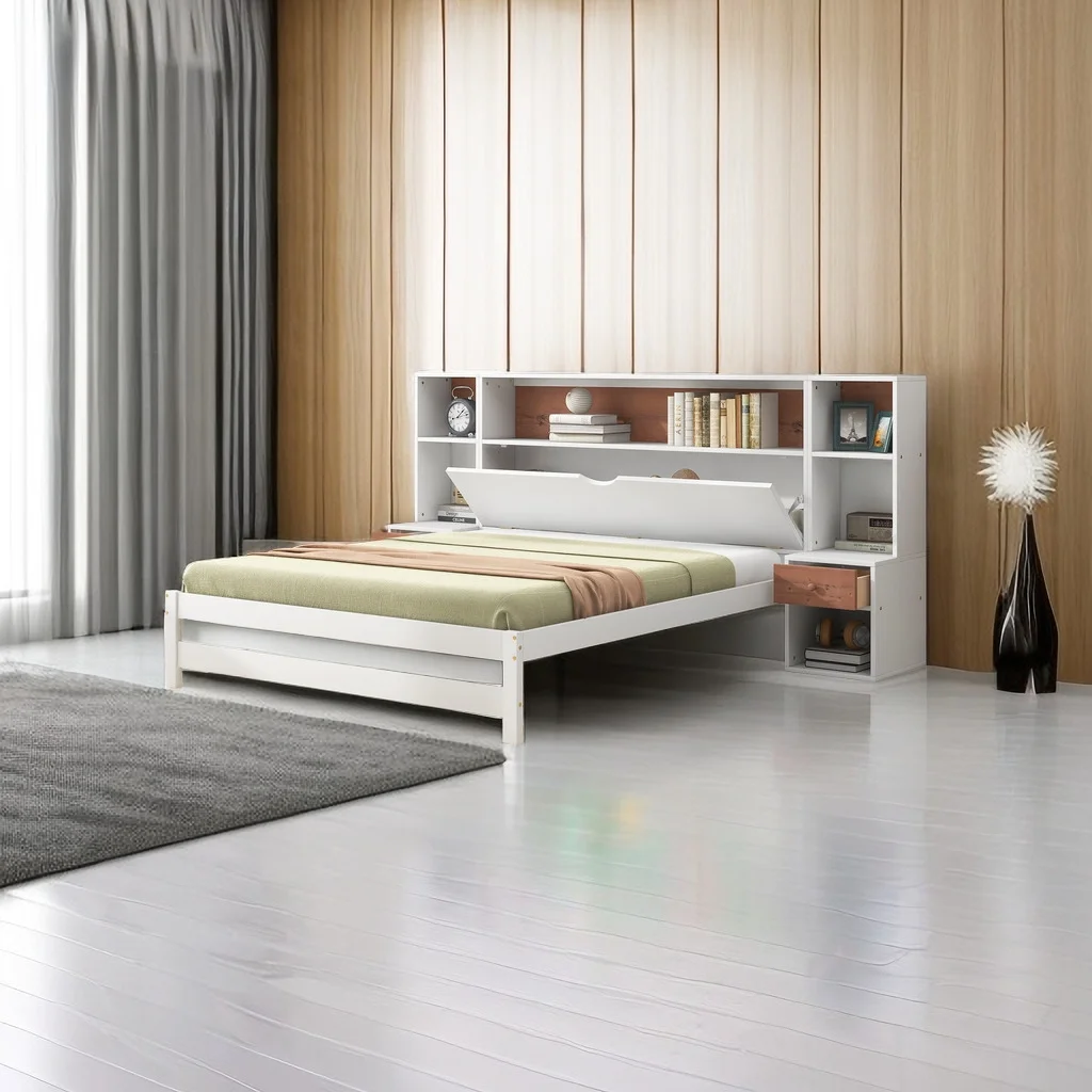 GEROBOOM River Ranch Full/Queen Bookcase Headboard Grand Walnut Grand Walnut Finish