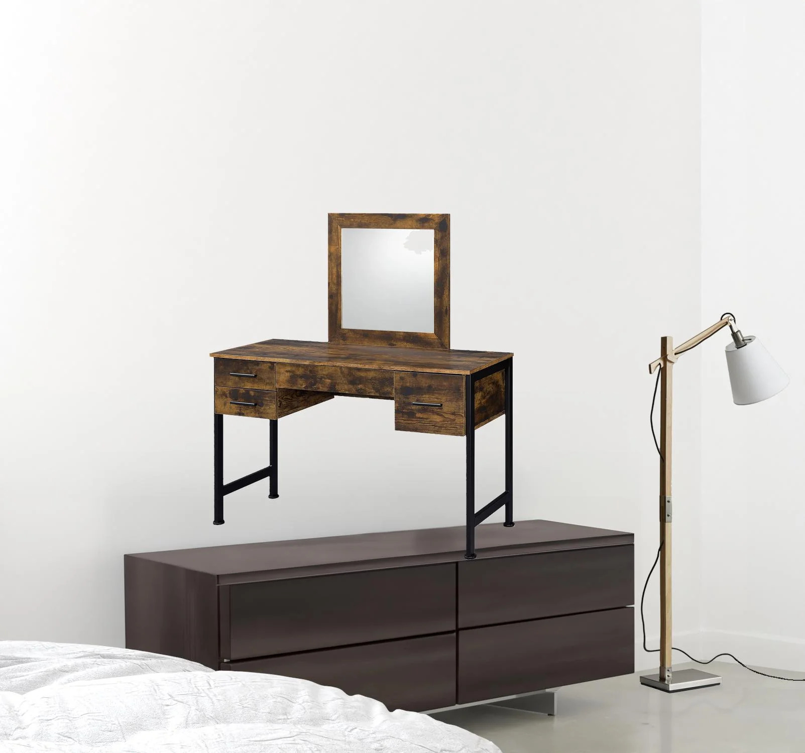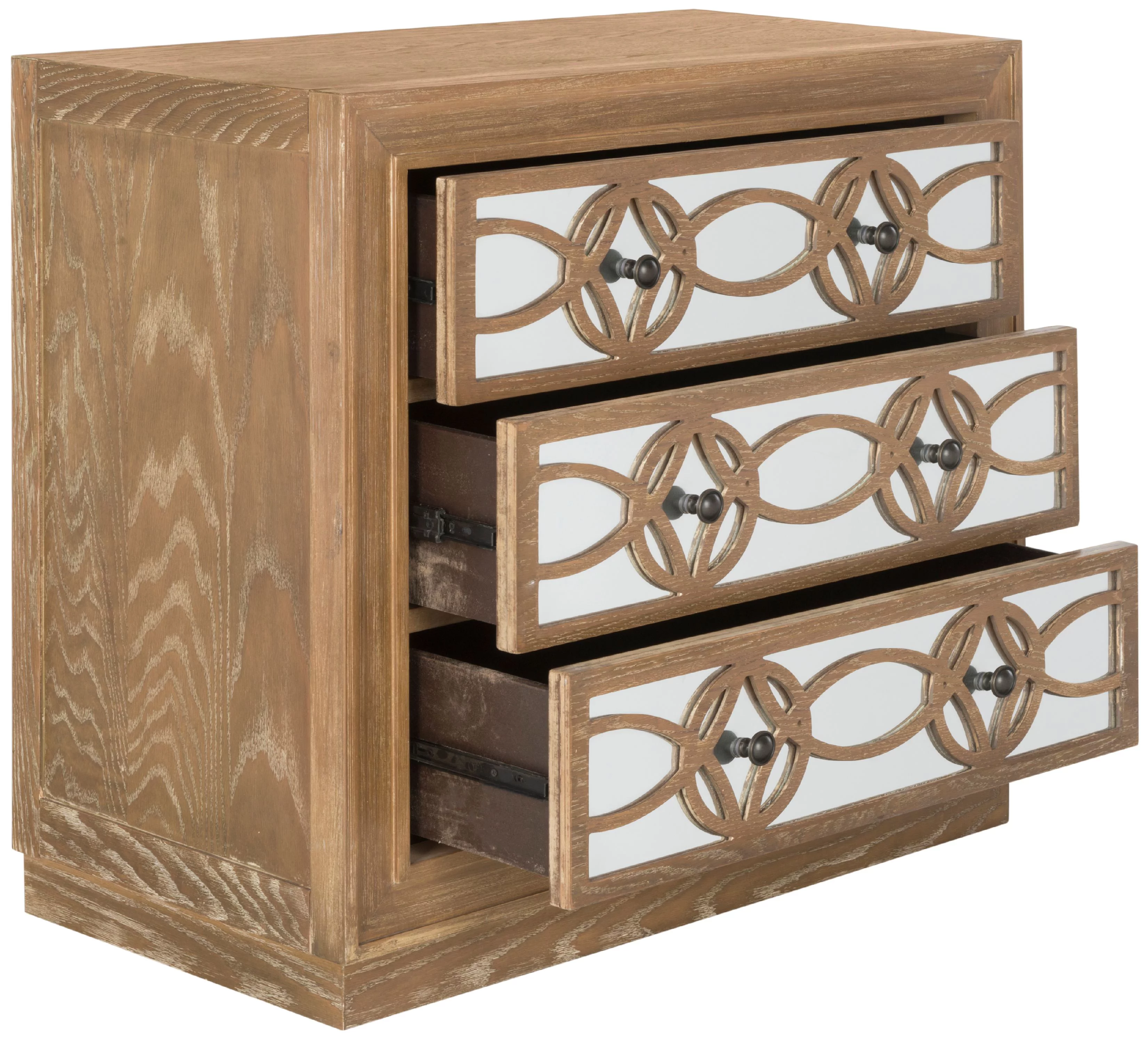 SAFAVIEH Catalina Classic Swirl Solid 3 Drawer Mirror Chest, Rustic Oak/Dark Bronze