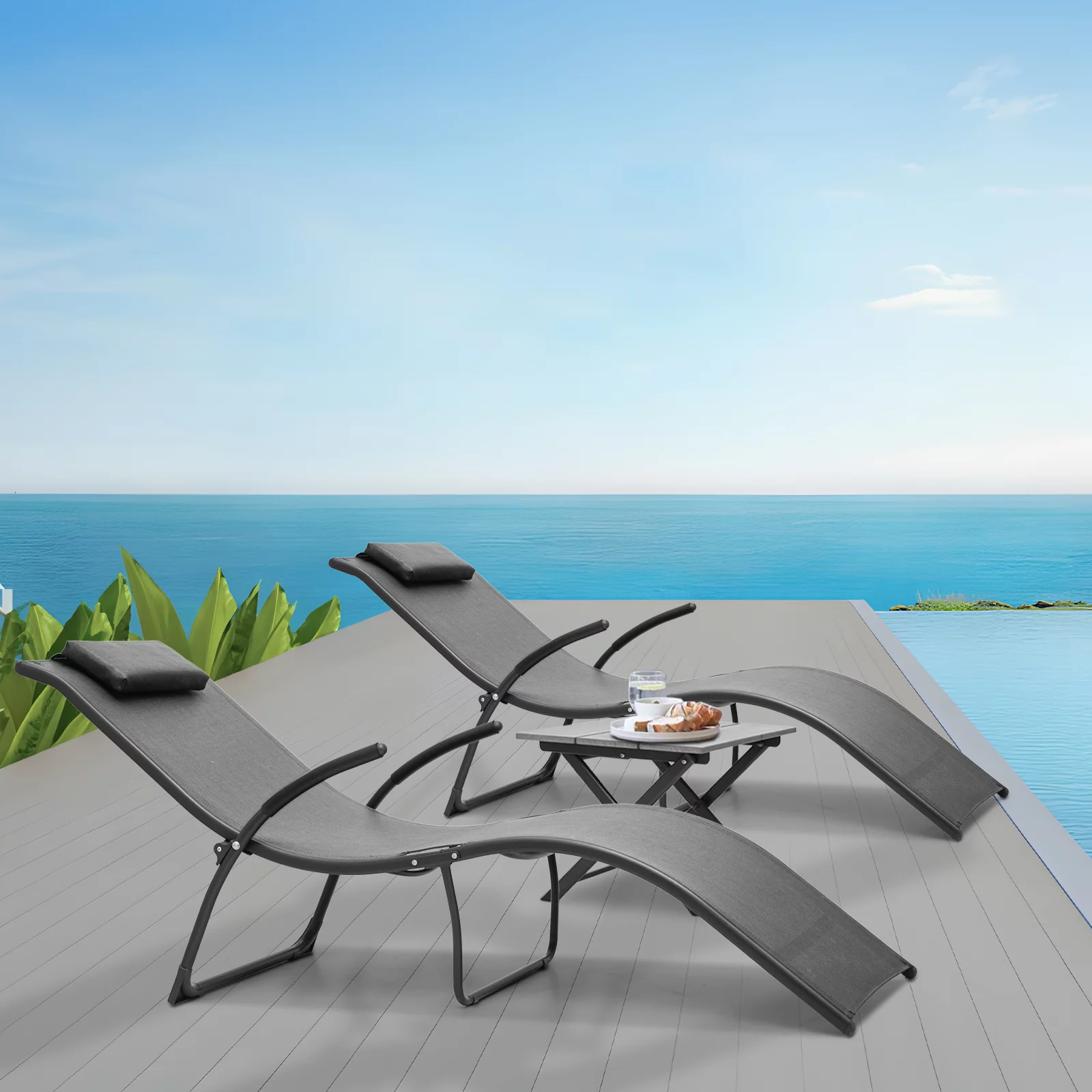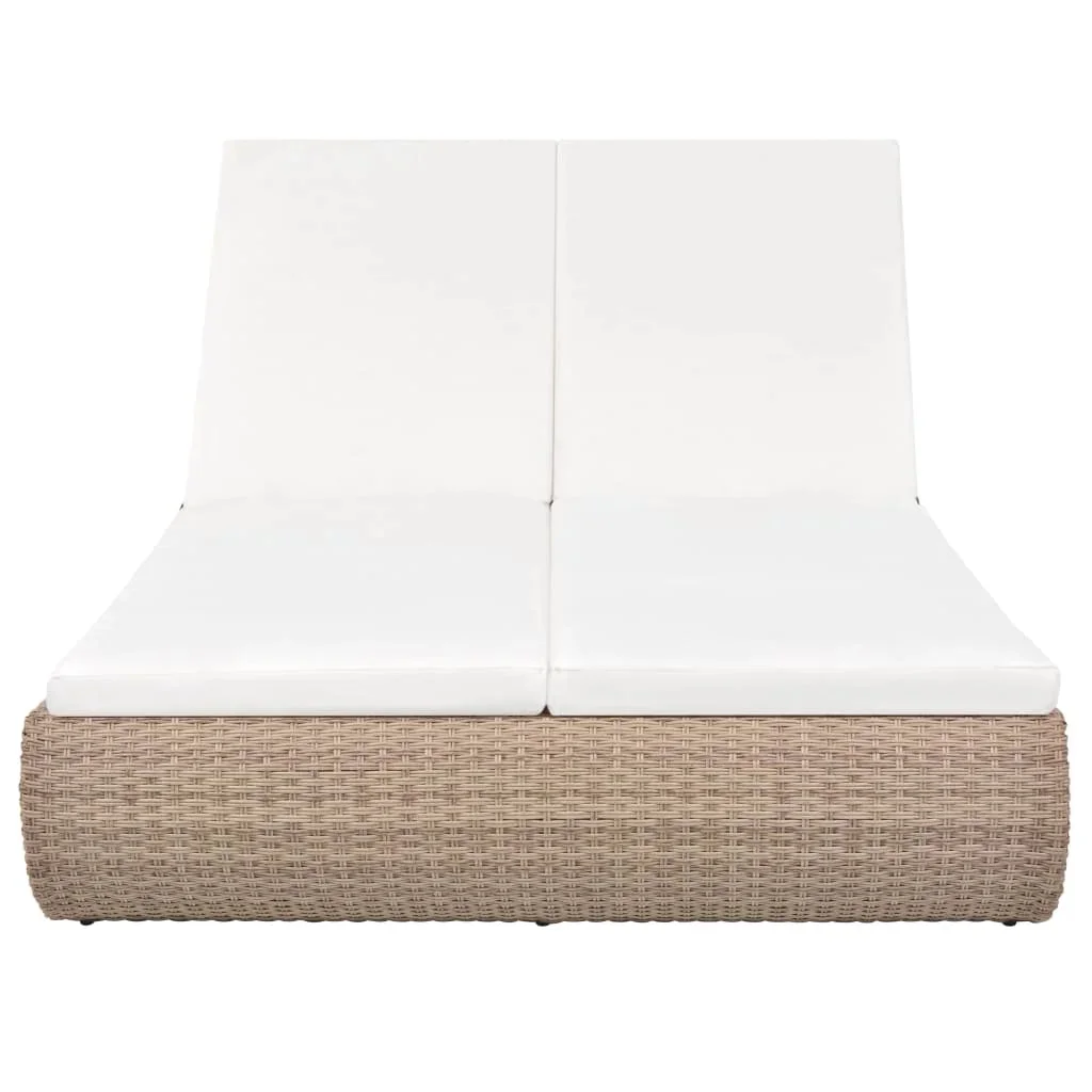 Outdoor Patio Garden Sun Lounger Lounge Bed for Pool Outside Home Deck Poly Rattan Beige