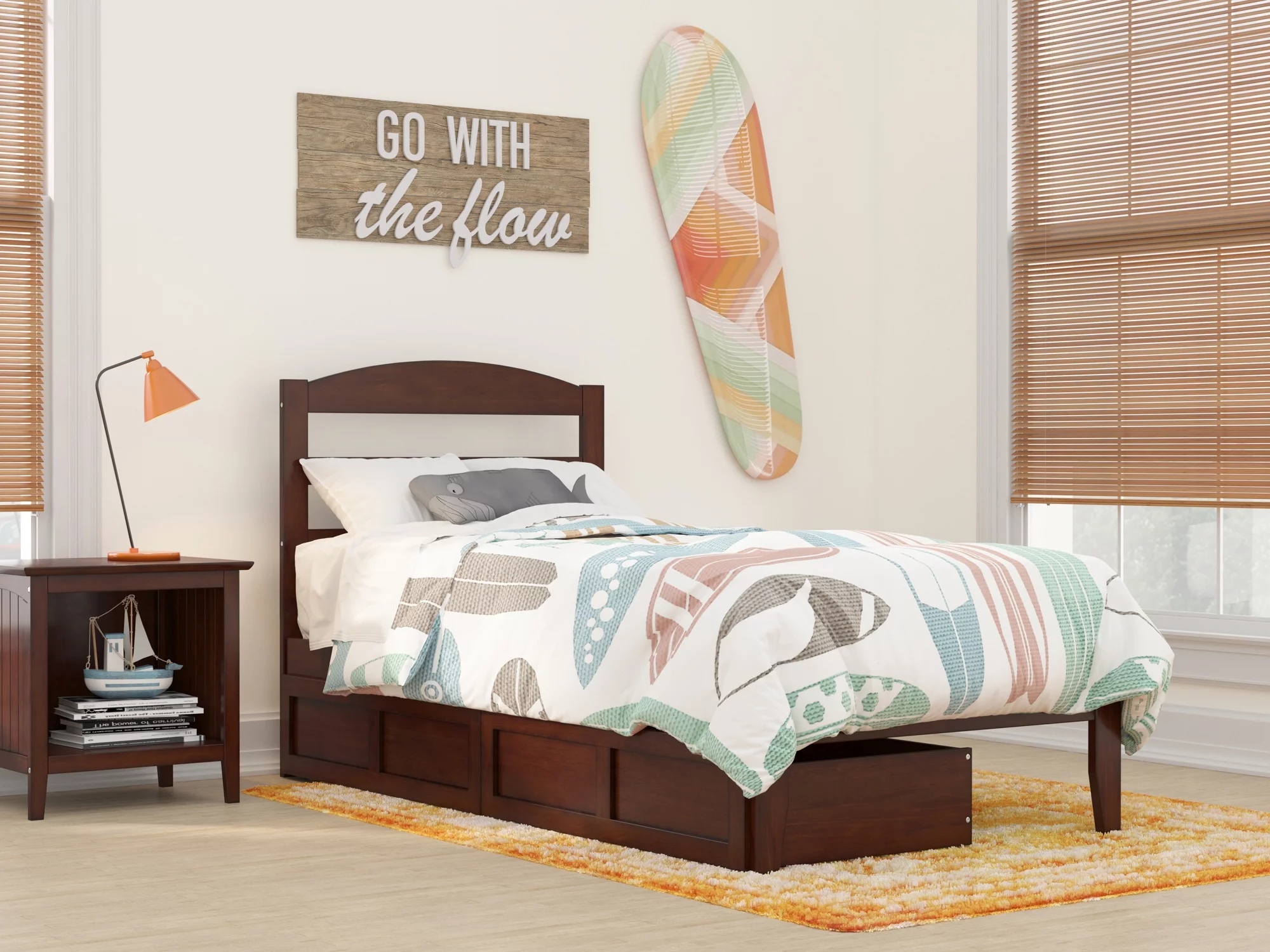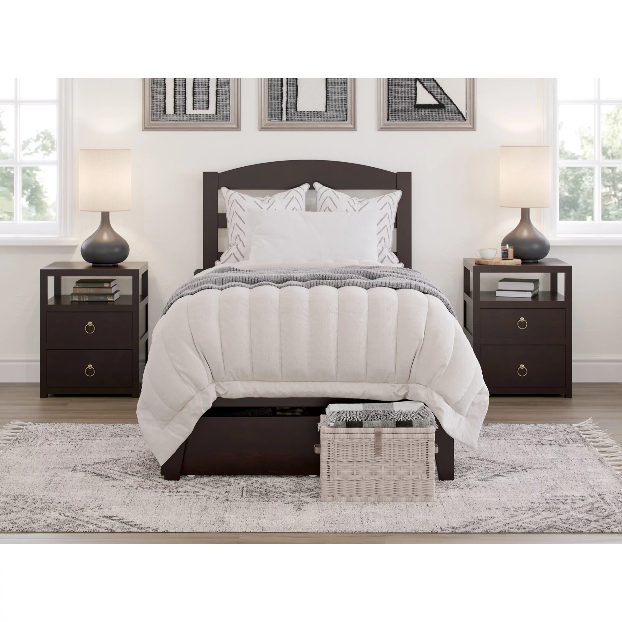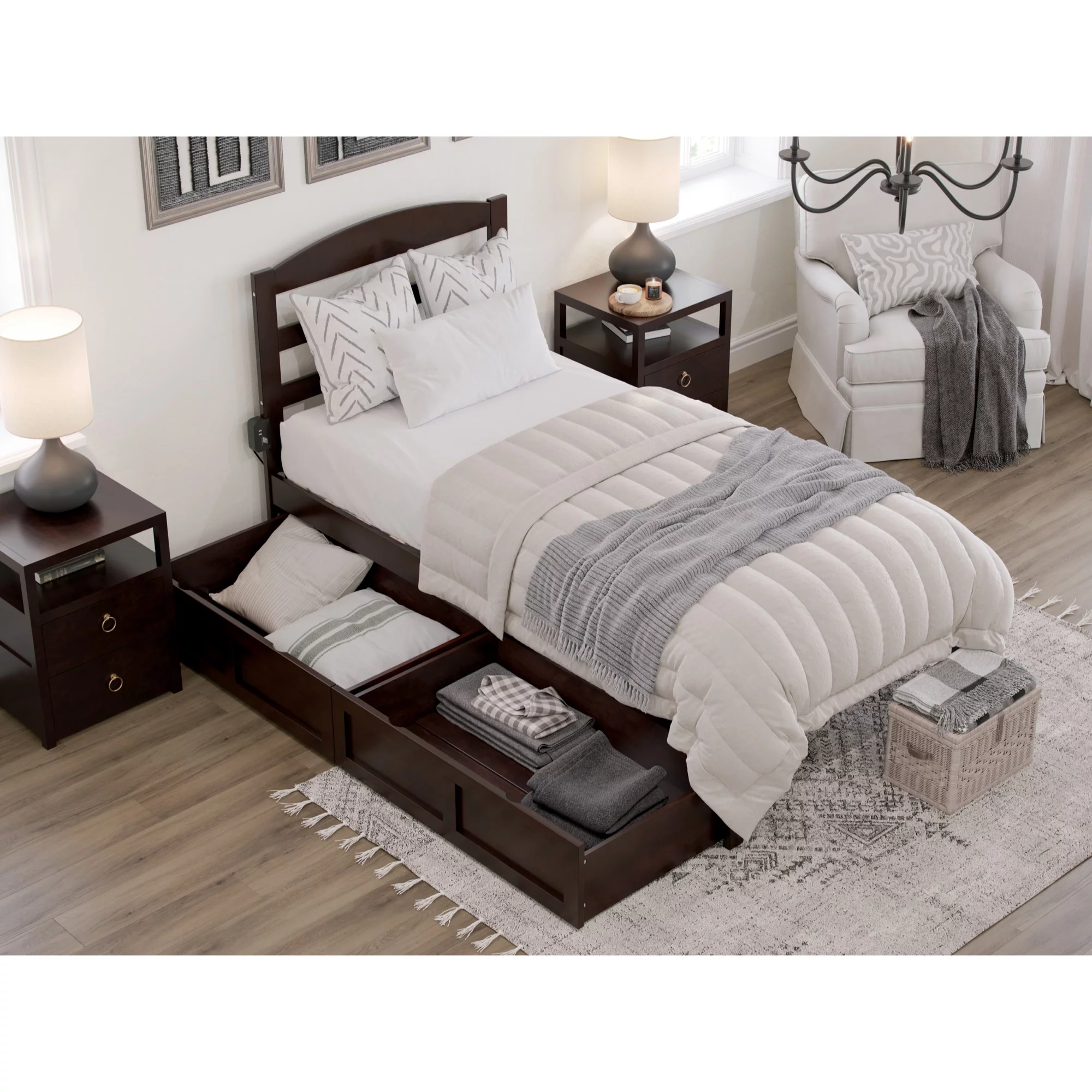 AFI Warren 14" Twin Wood Platform Bed Frame with Set of 2 Storage Drawers, Walnut