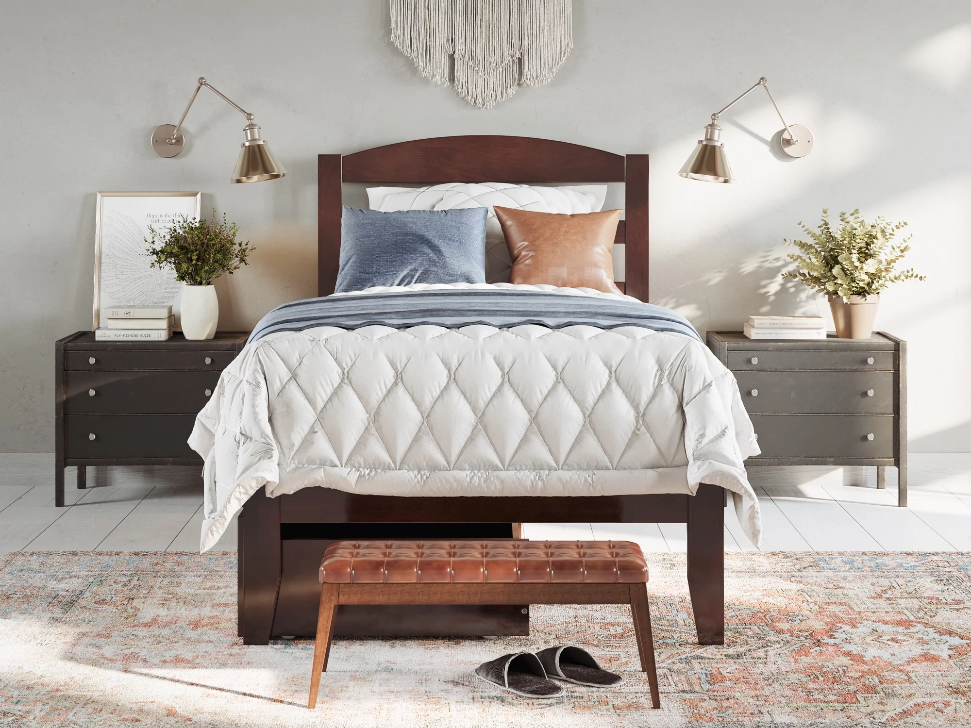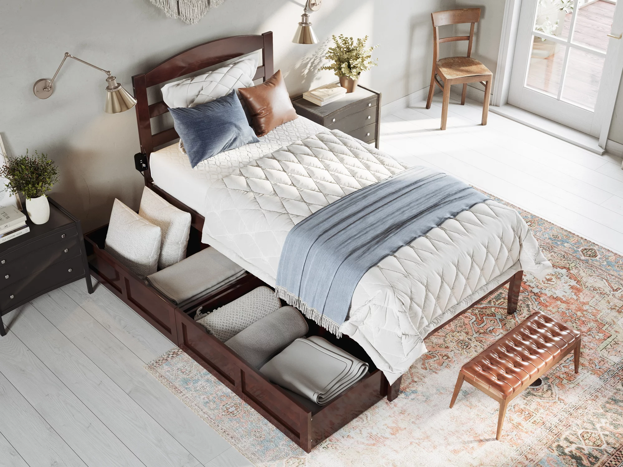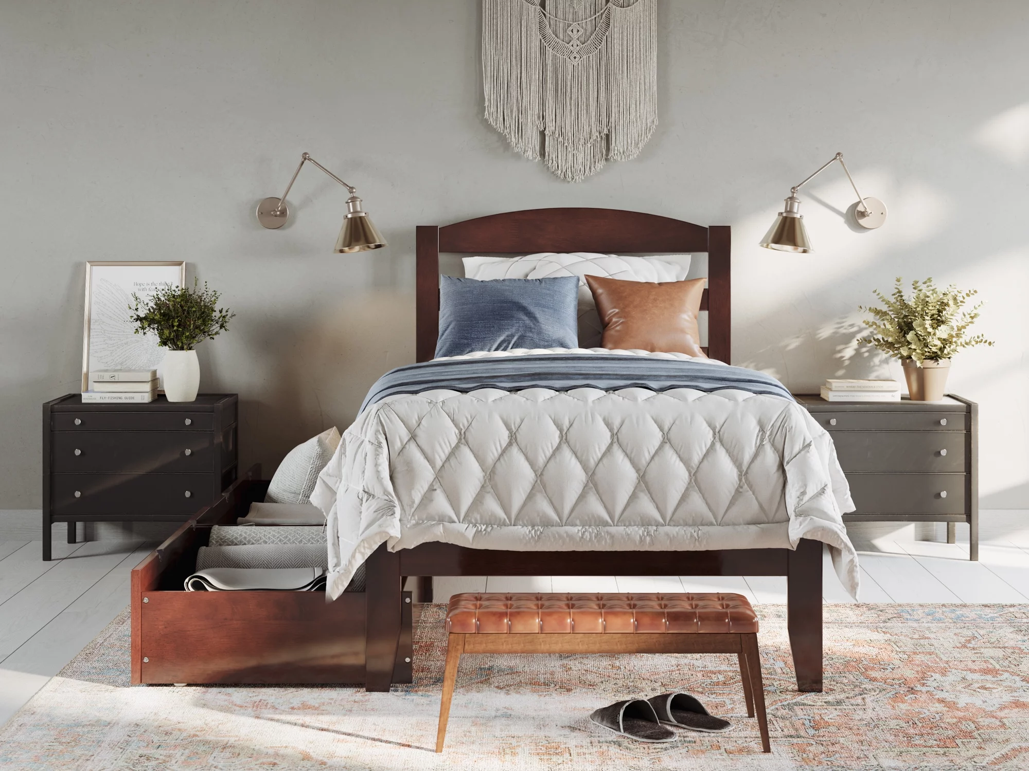 AFI Warren 14" Twin Wood Platform Bed Frame with Set of 2 Storage Drawers, Walnut