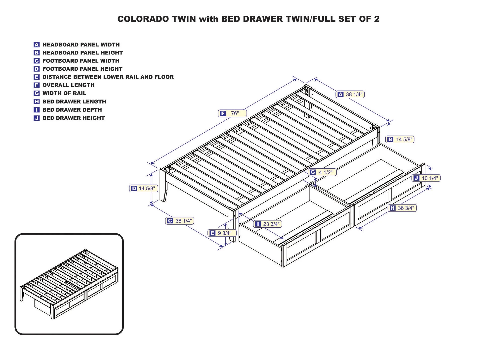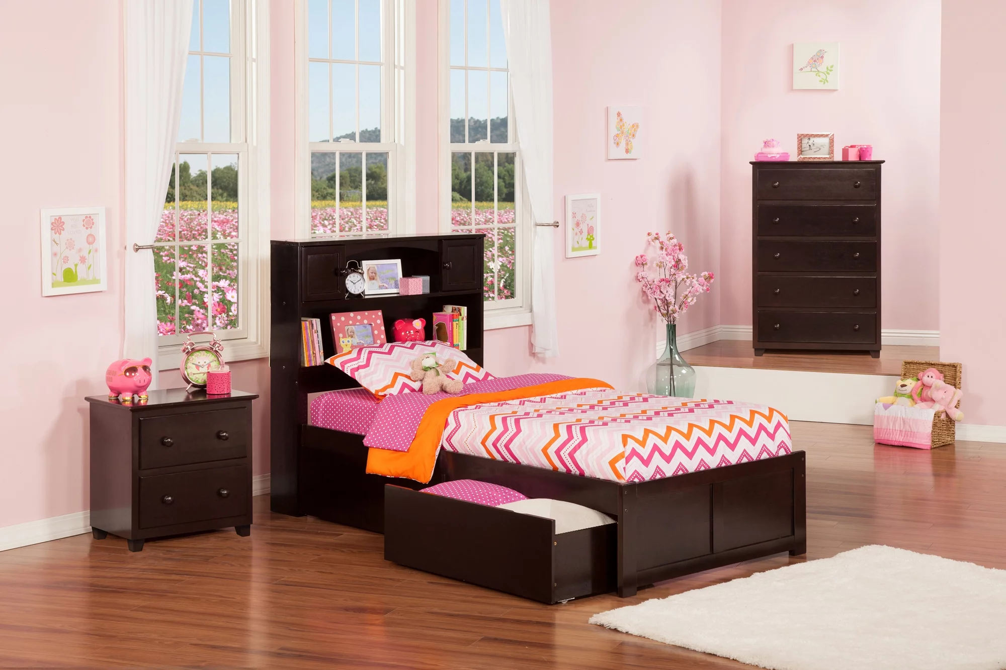 AFI Colorado 14" Twin Wood Platform Bed Frame with Set of 2 Storage Drawers, Espresso