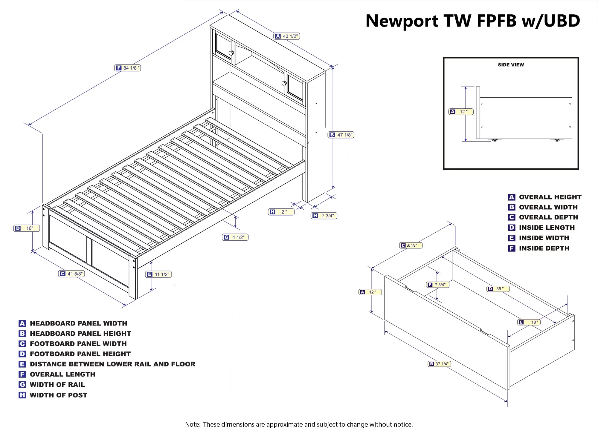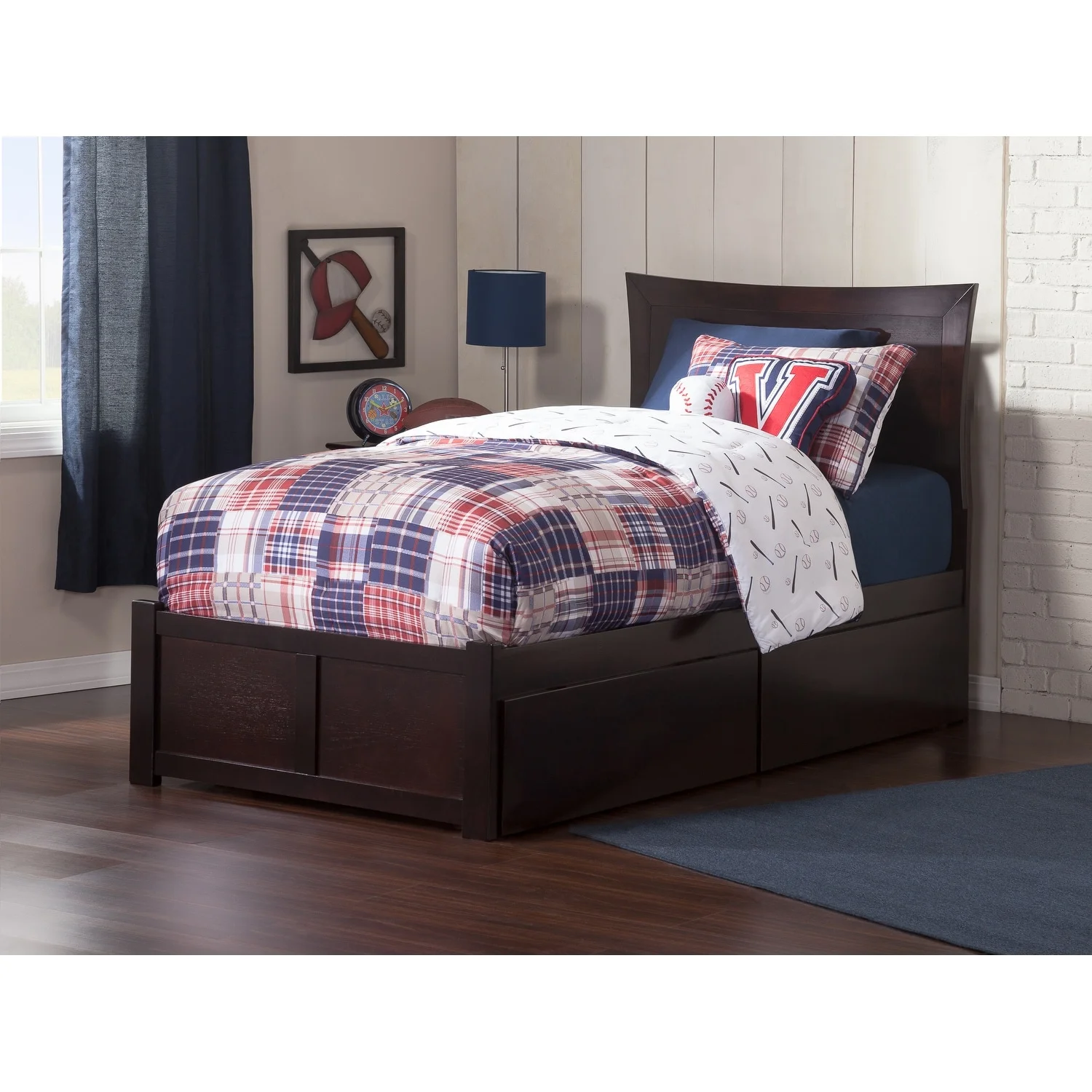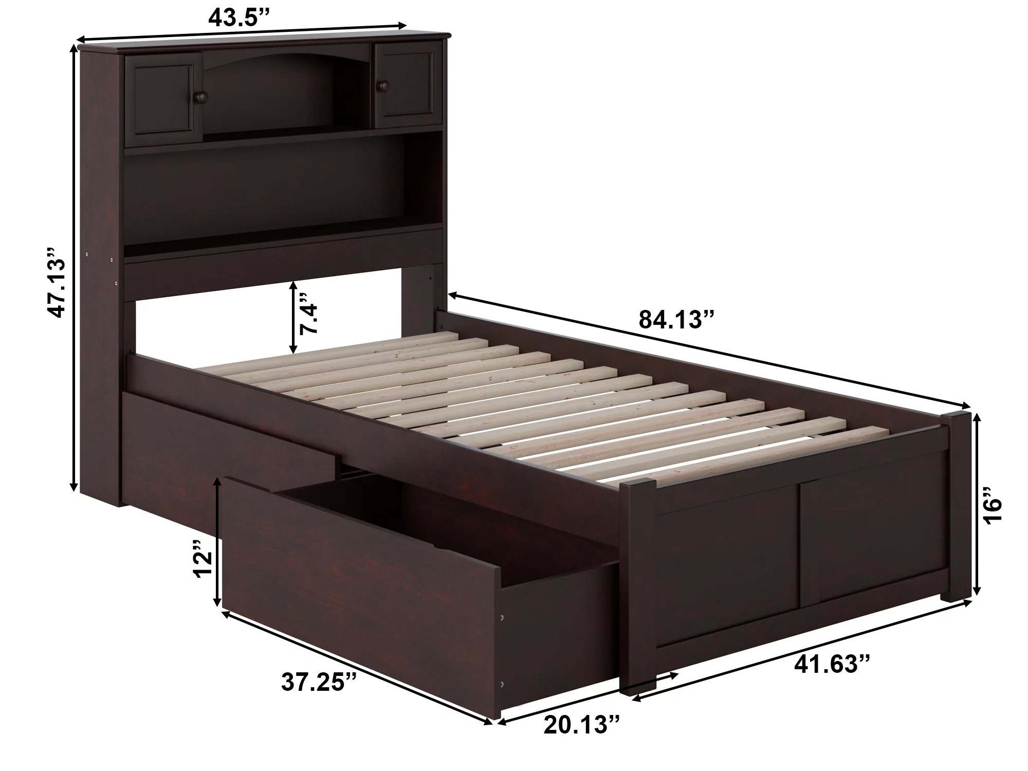 AFI Oxford Twin Wood Platform Bed with Headboard Footboard & 2 Storage Drawers, Espresso