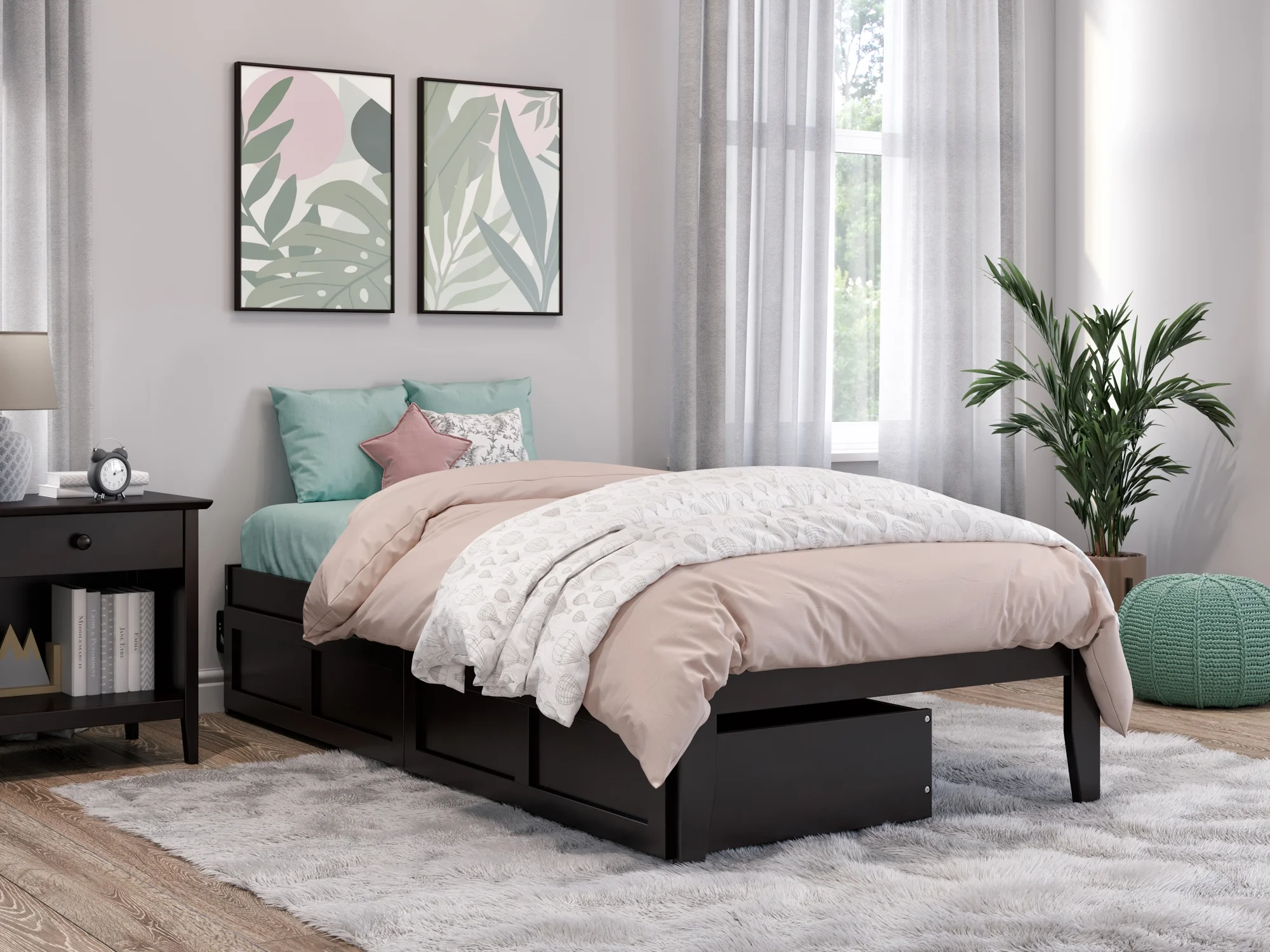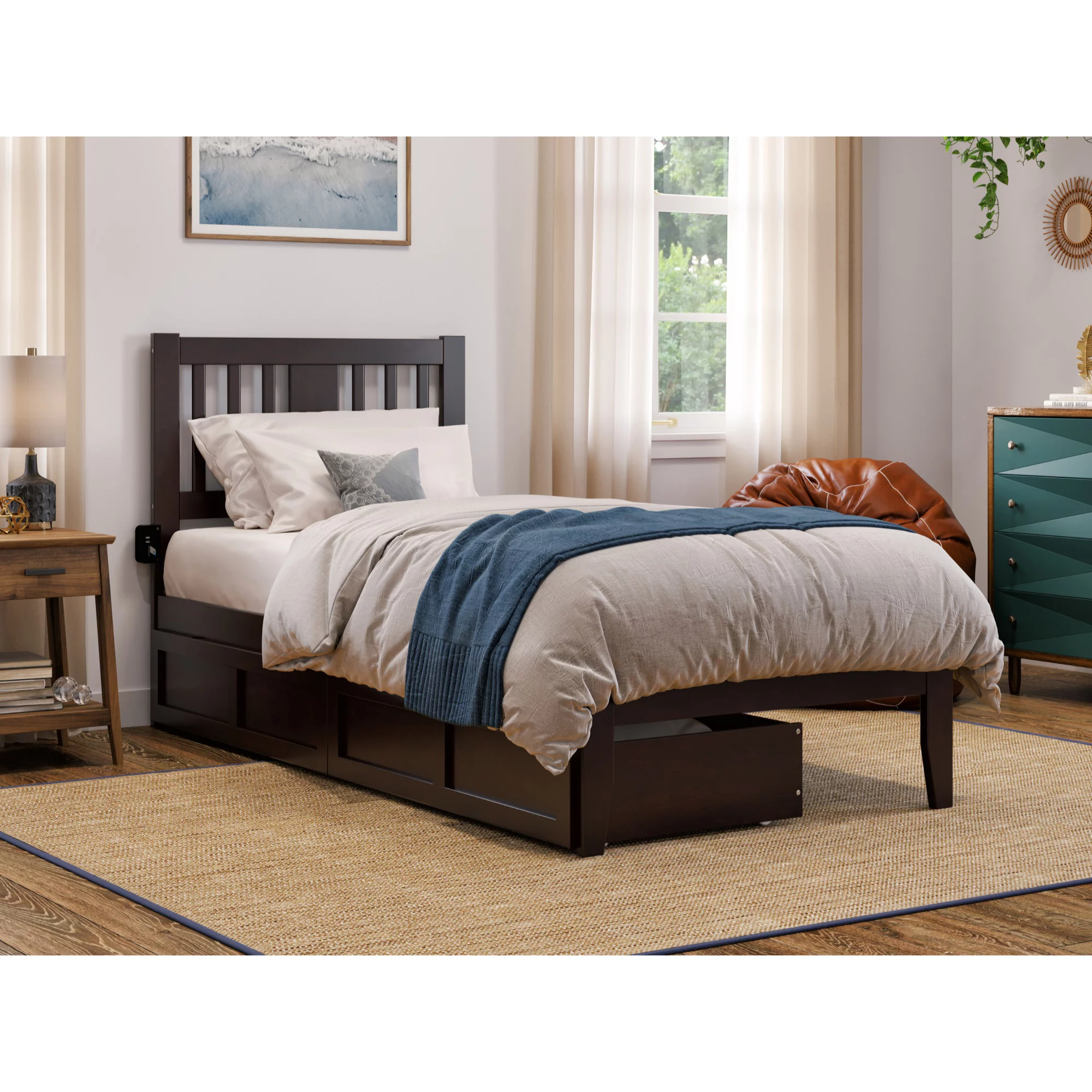 AFI Newport Twin Wood Platform Bed with Footboard & 2 Storage Drawers in Espresso