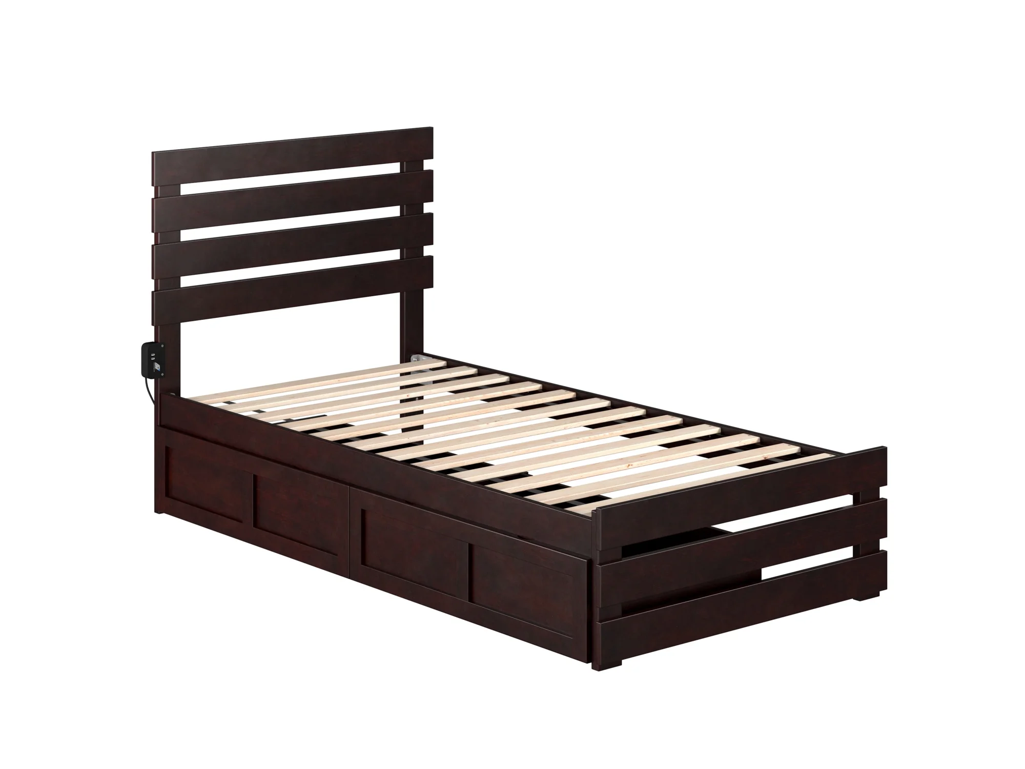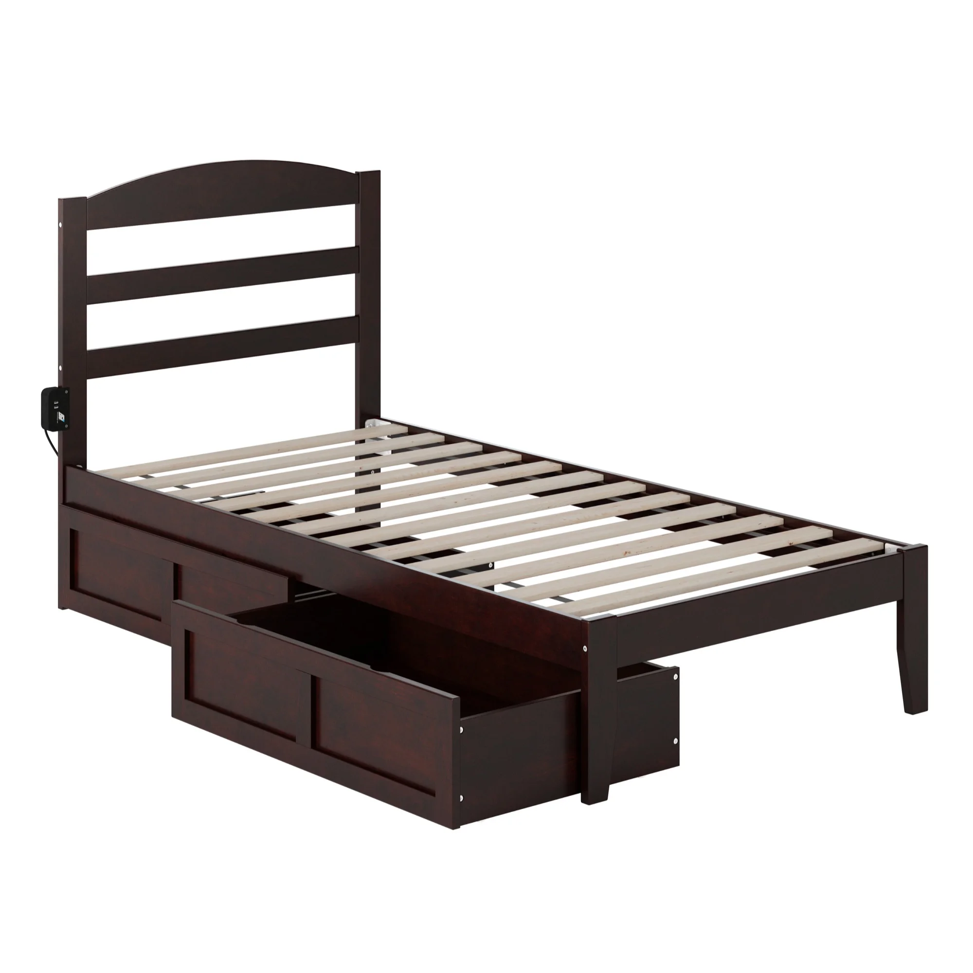 AFI Tahoe Twin XL Solid Wood Bed with 2 Drawers and USB Charger in Espresso