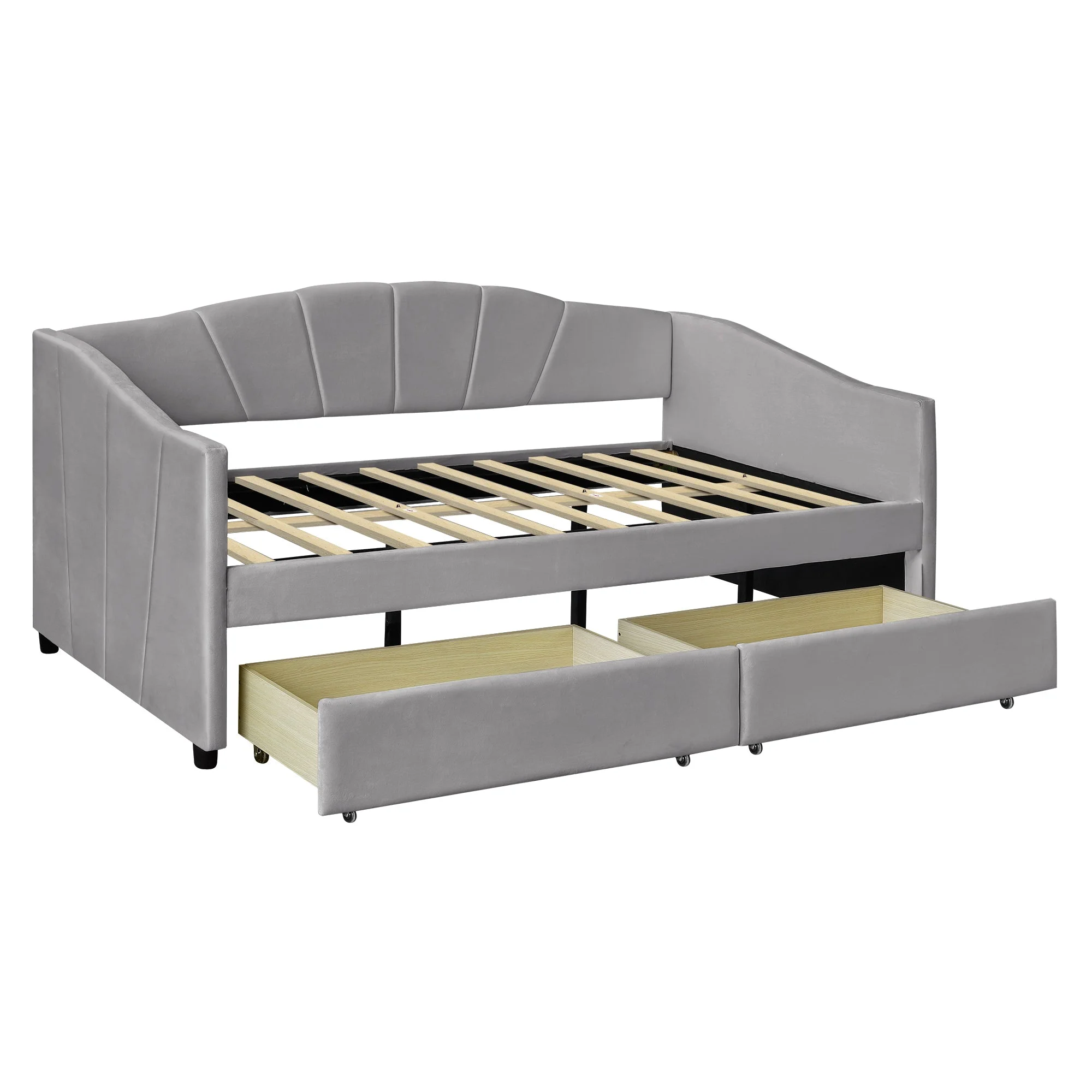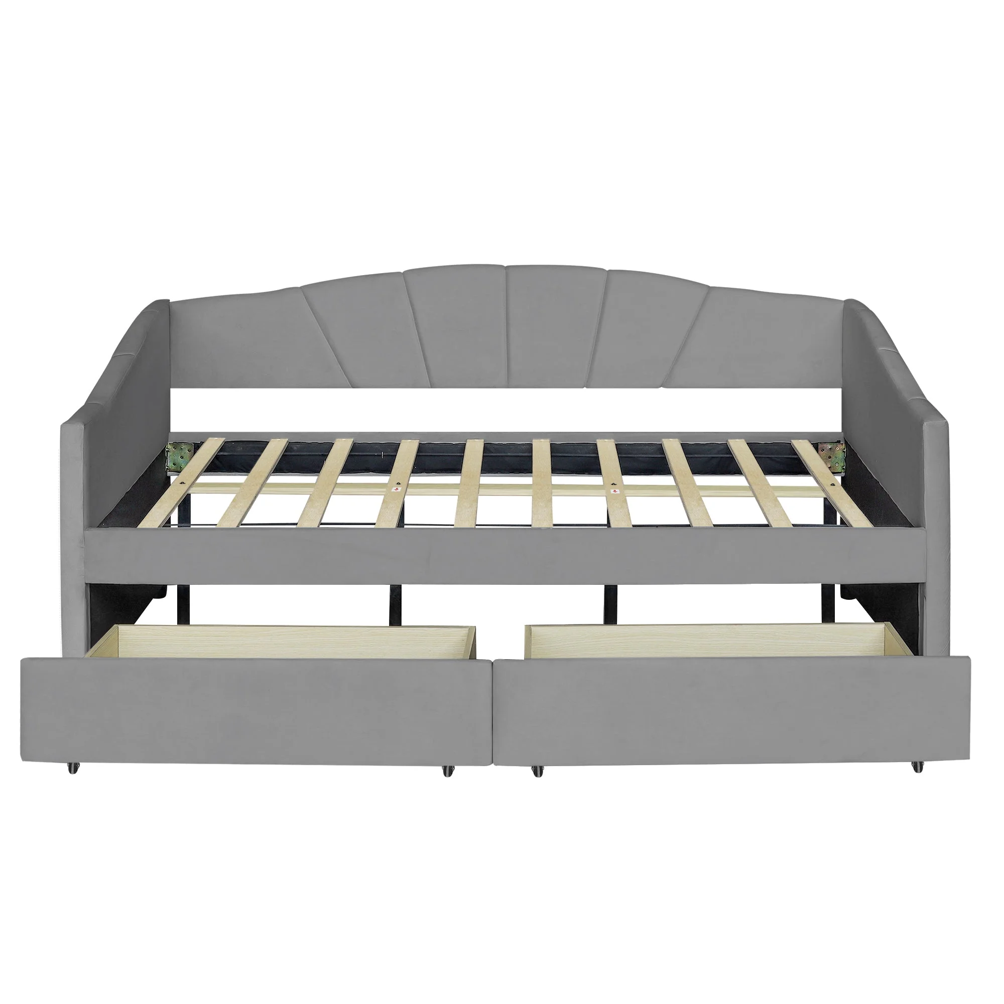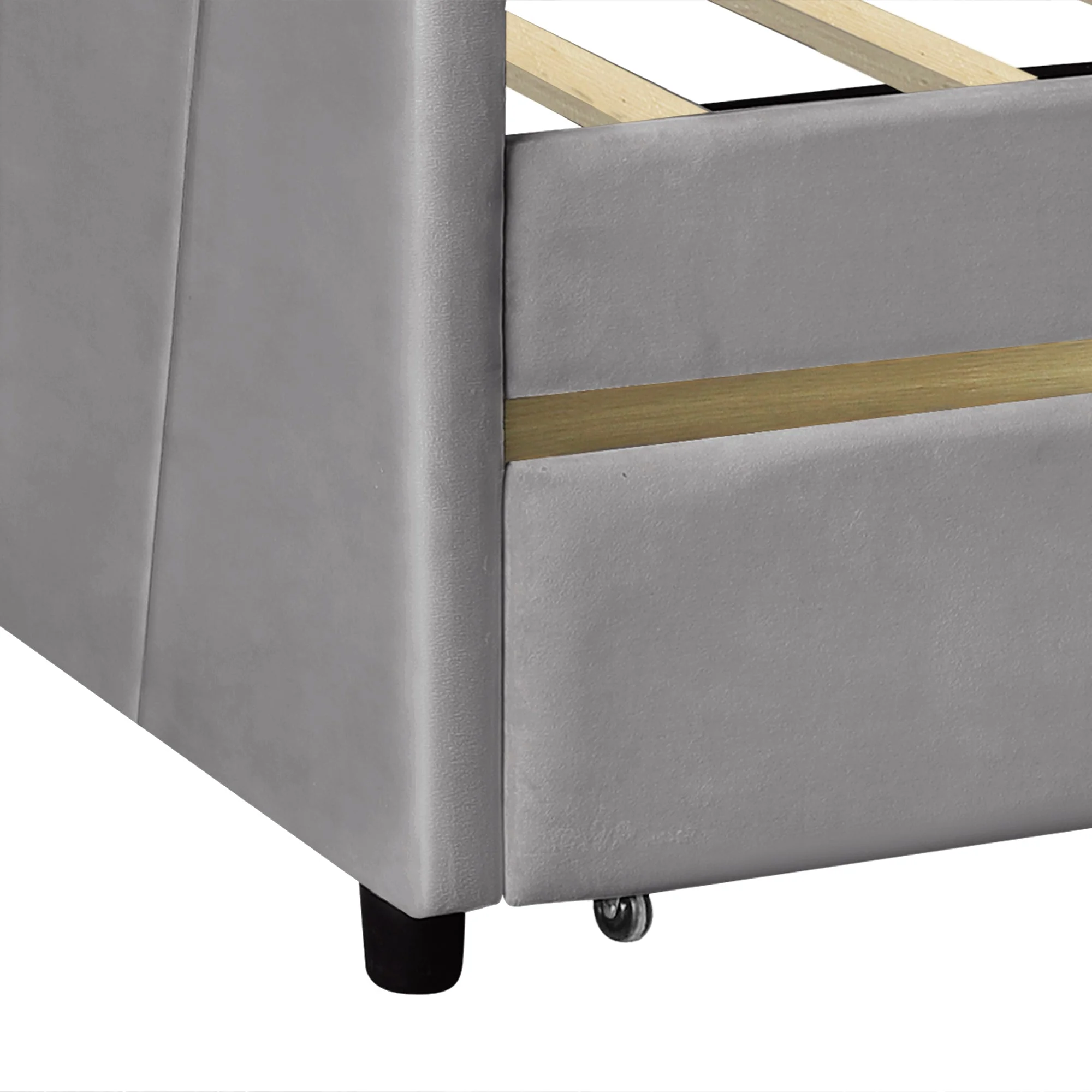 Adrinfly Twin Size Upholstery DayBed with Trundle and USB Charging Design,Trundle can be flat or erected,Gray