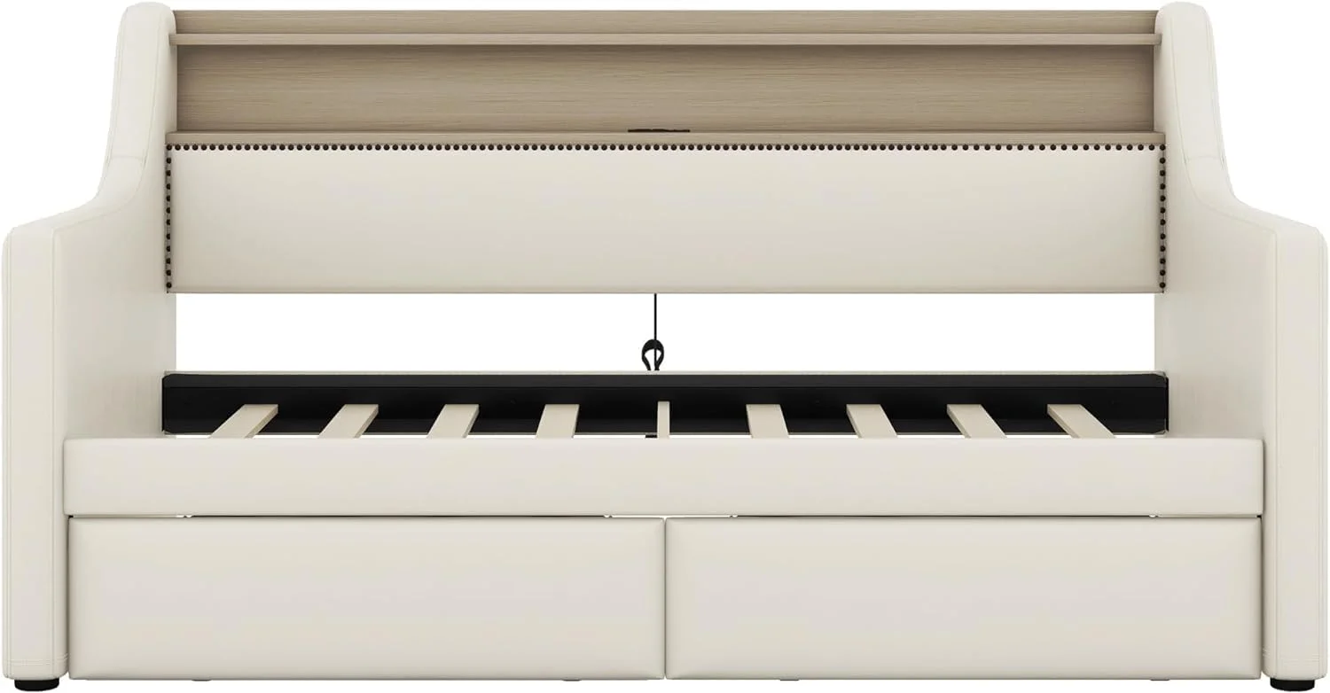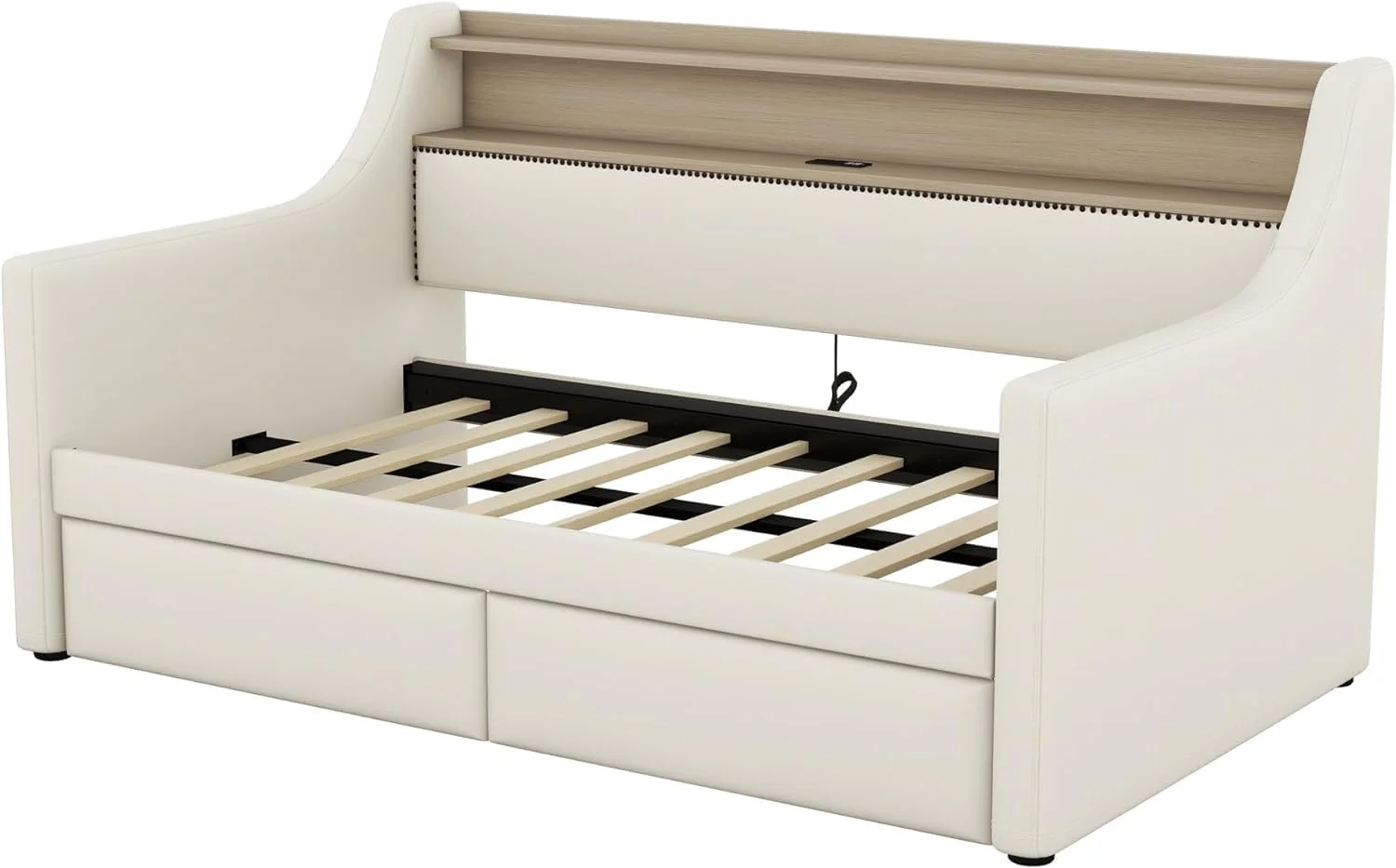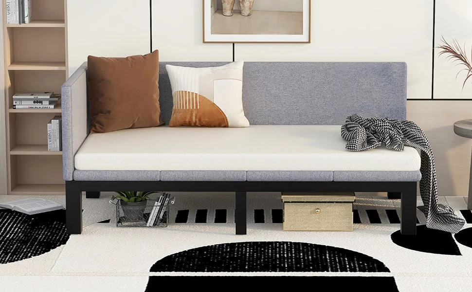 Adrinfly Twin Size Upholstery DayBed with Trundle and USB Charging Design,Trundle can be flat or erected,Gray