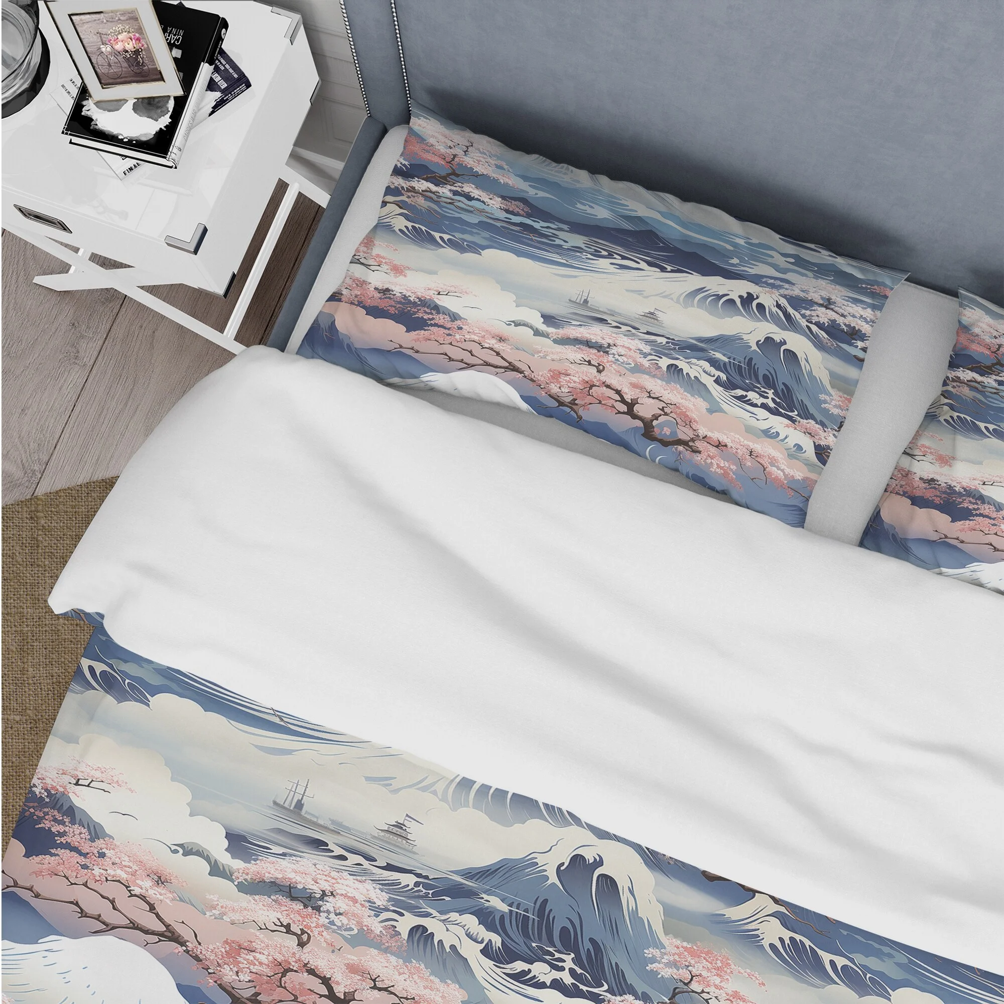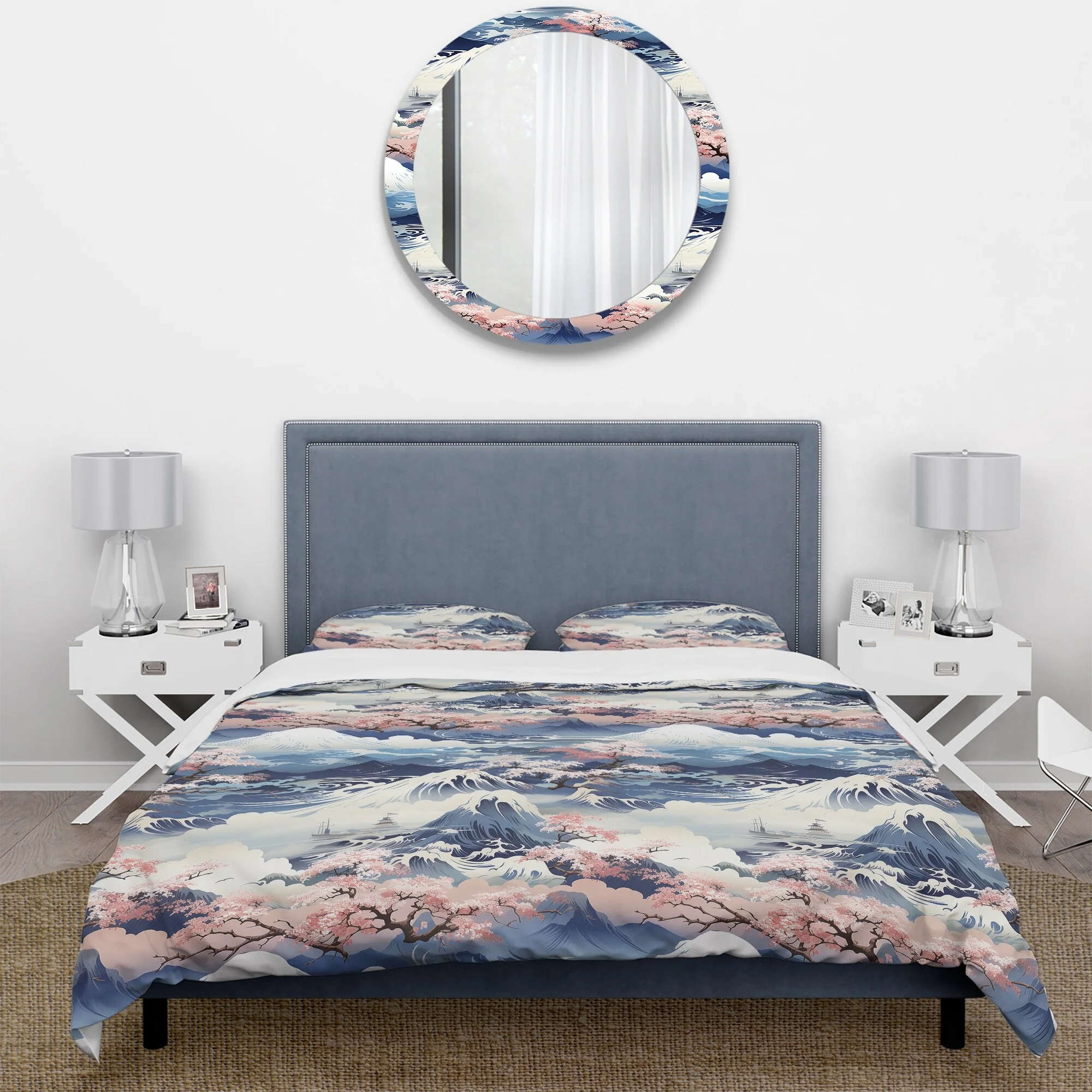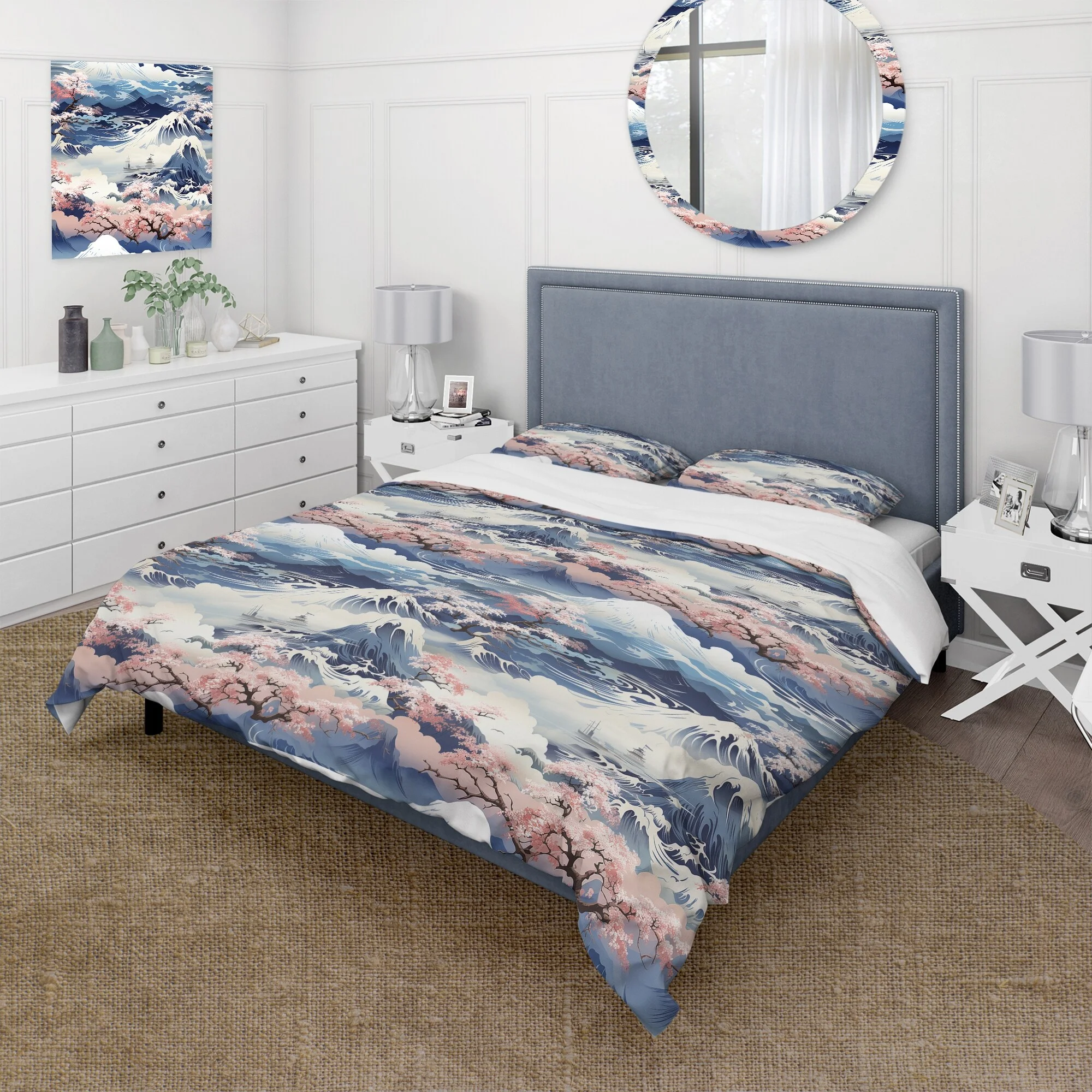 Designart "Zen Landscape With Blue And Pink Hues I" Japanese Bedding Covert Set - Oriental Bed Set With 1 Sham