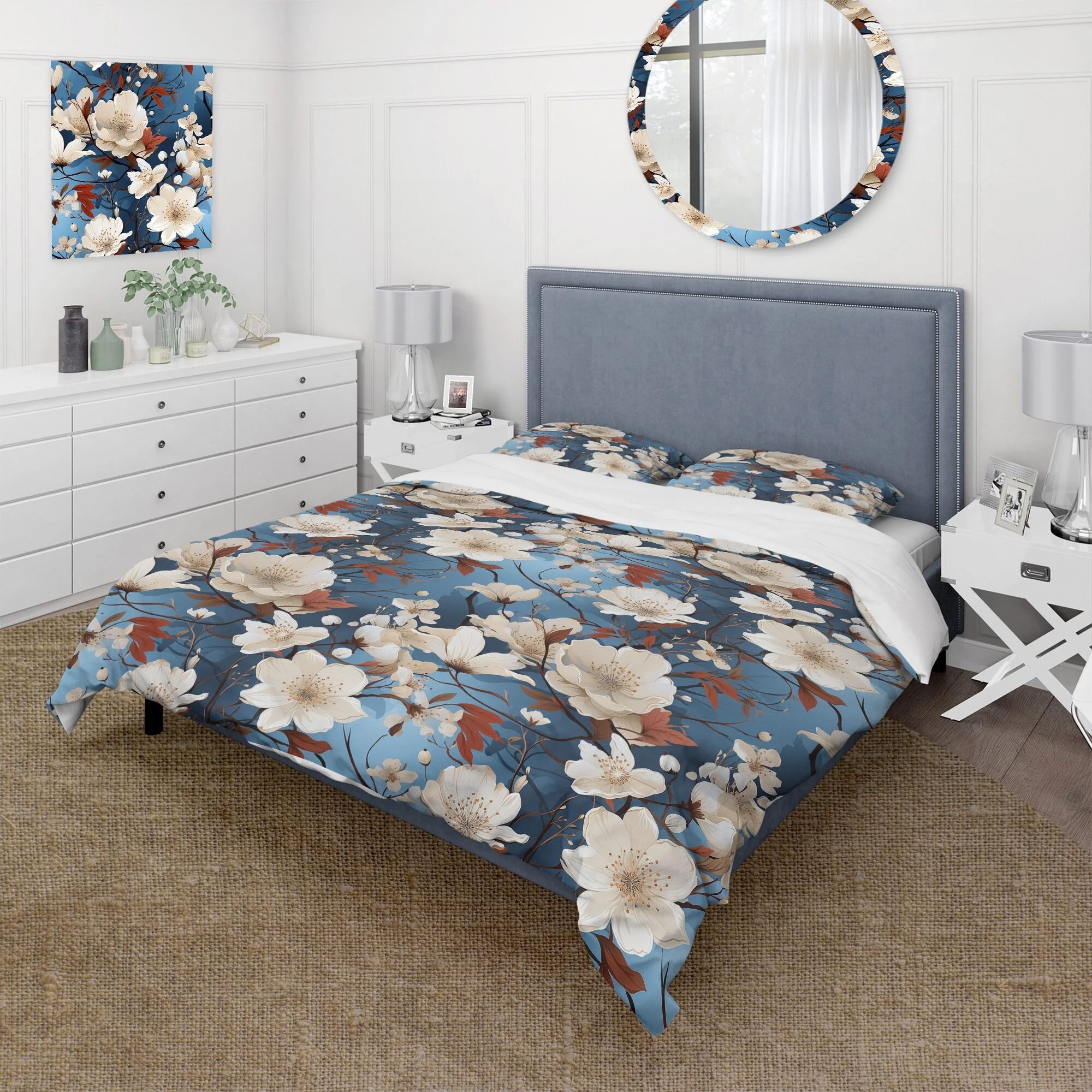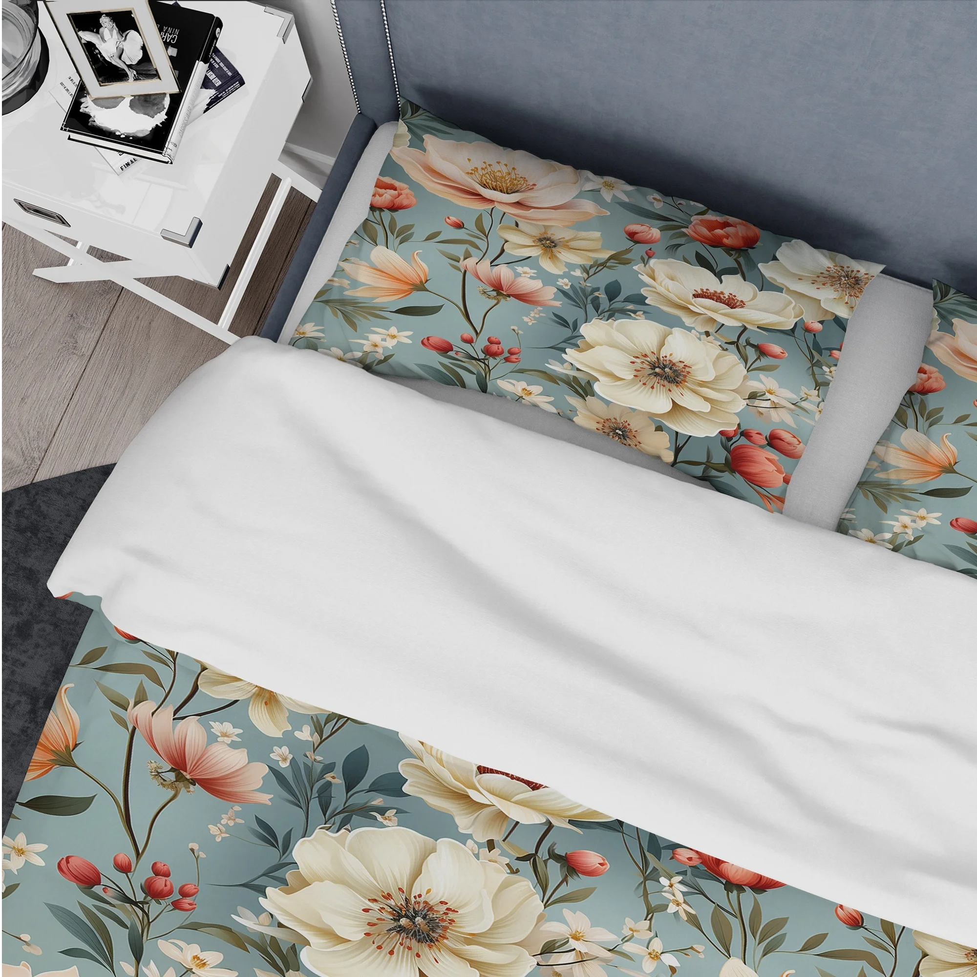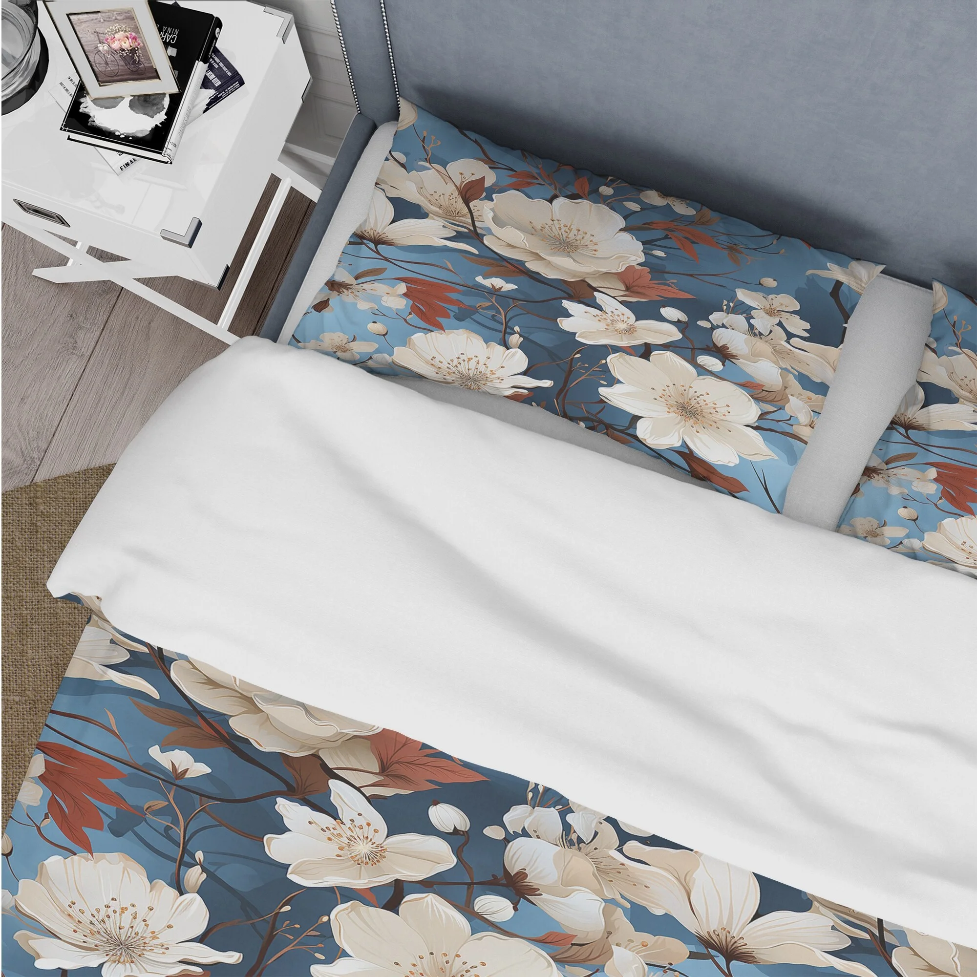 Designart "Ikebana Artistry From Japan I" White Floral Bedding Covert Set - Cottage Bed Set With 2 Shams