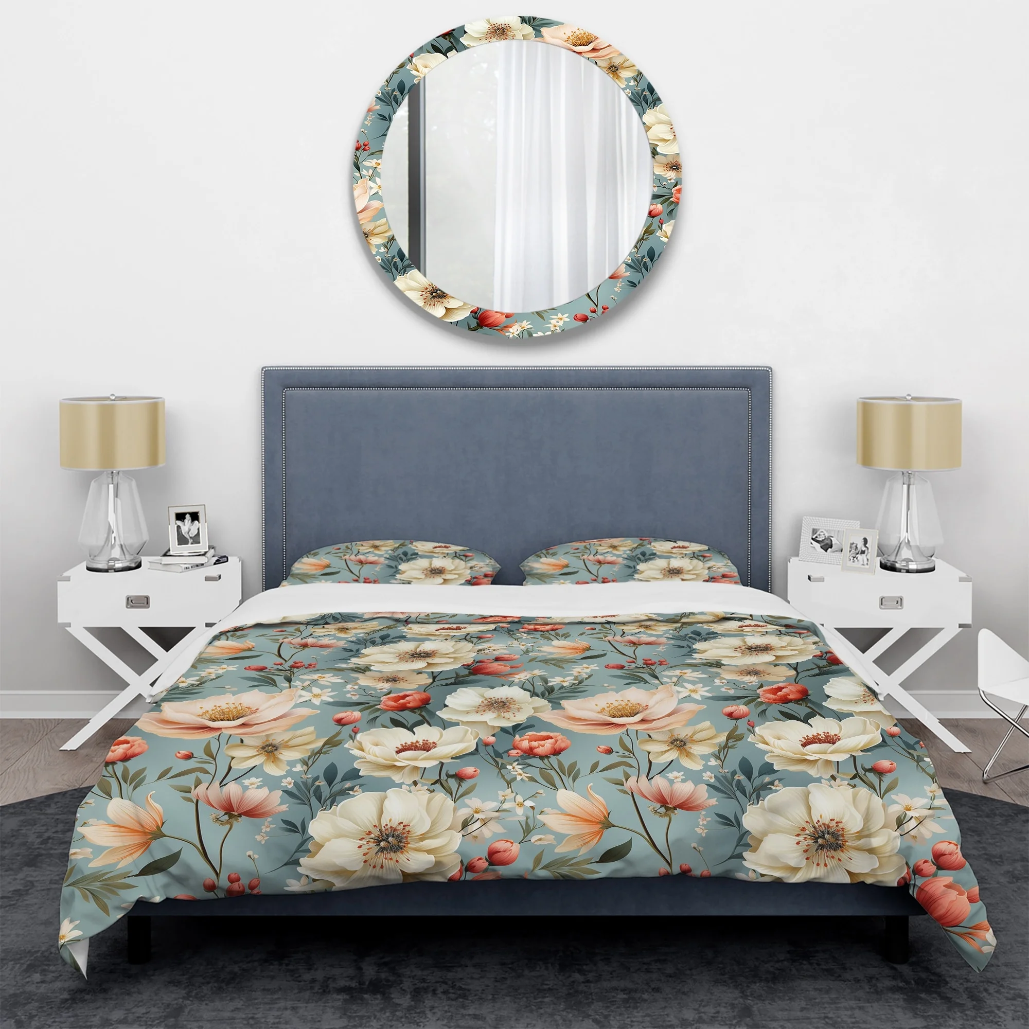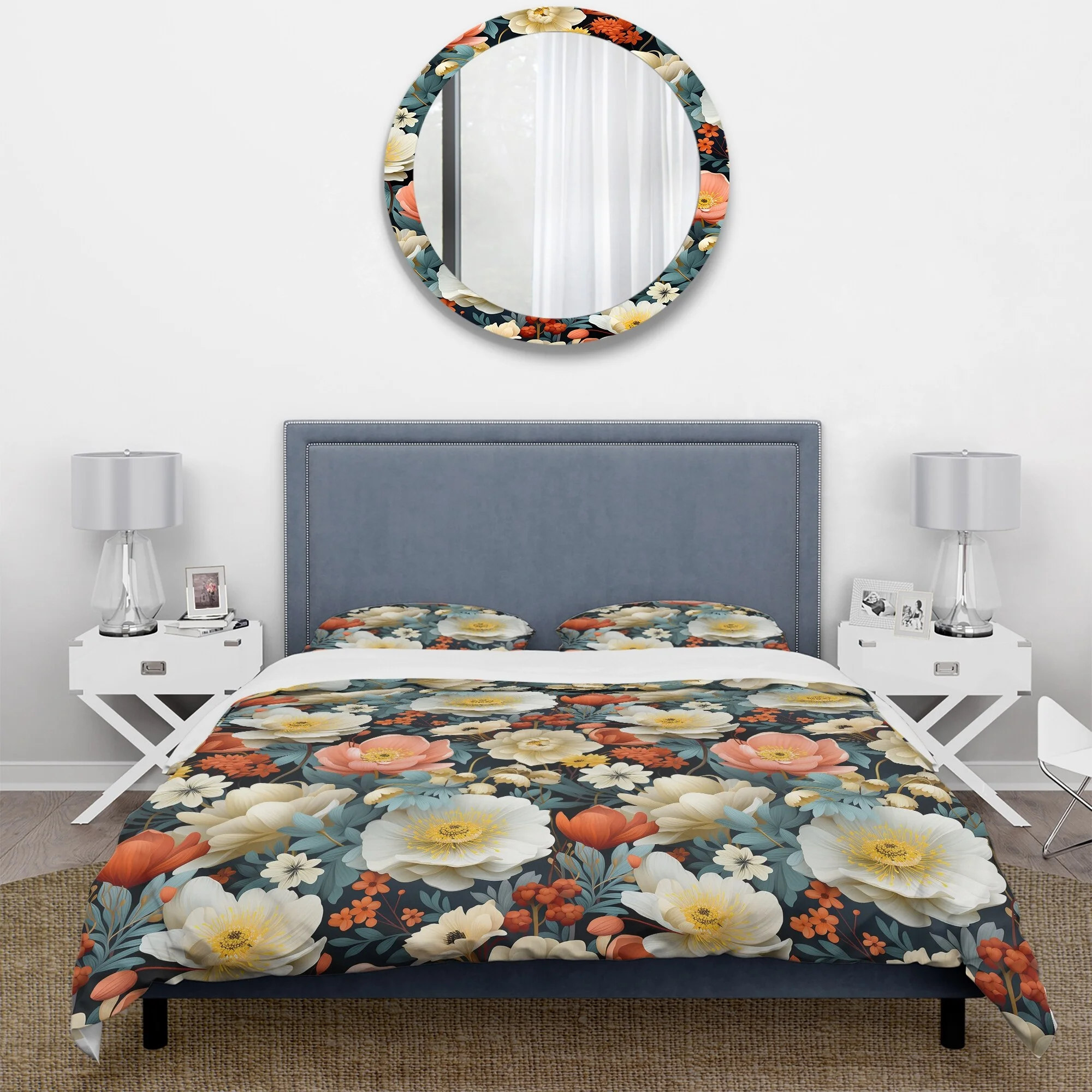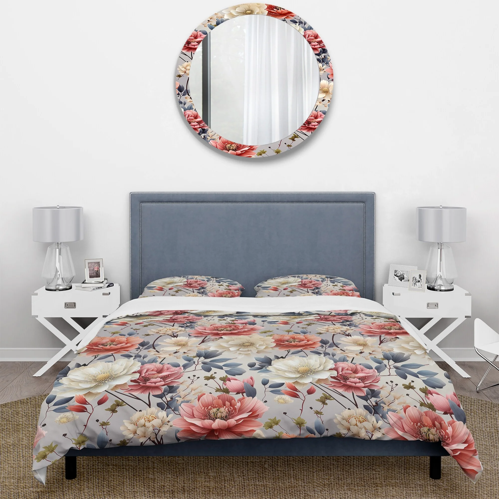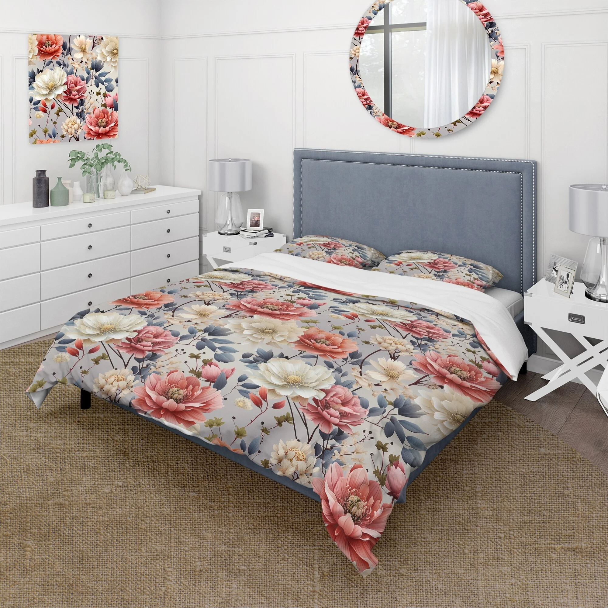 Designart "Ikebana Artistry From Japan I" White Floral Bedding Covert Set - Cottage Bed Set With 2 Shams