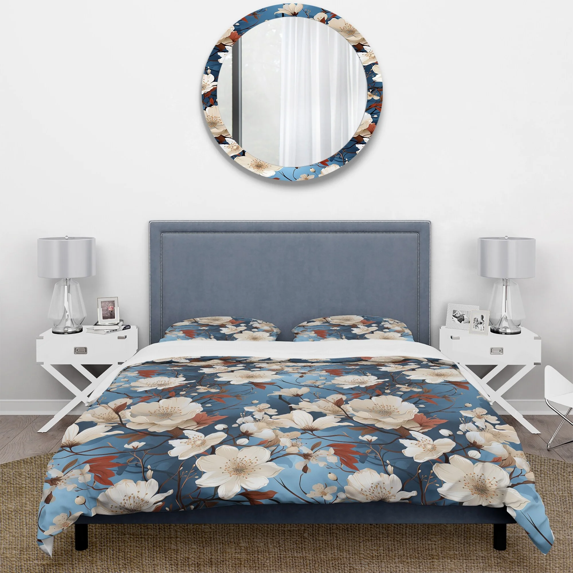 DESIGN ART Designart "Beige And Blue Tranquility Japan Pattern I" Blue Cottage Bed Cover Set With 2 Shams Twin