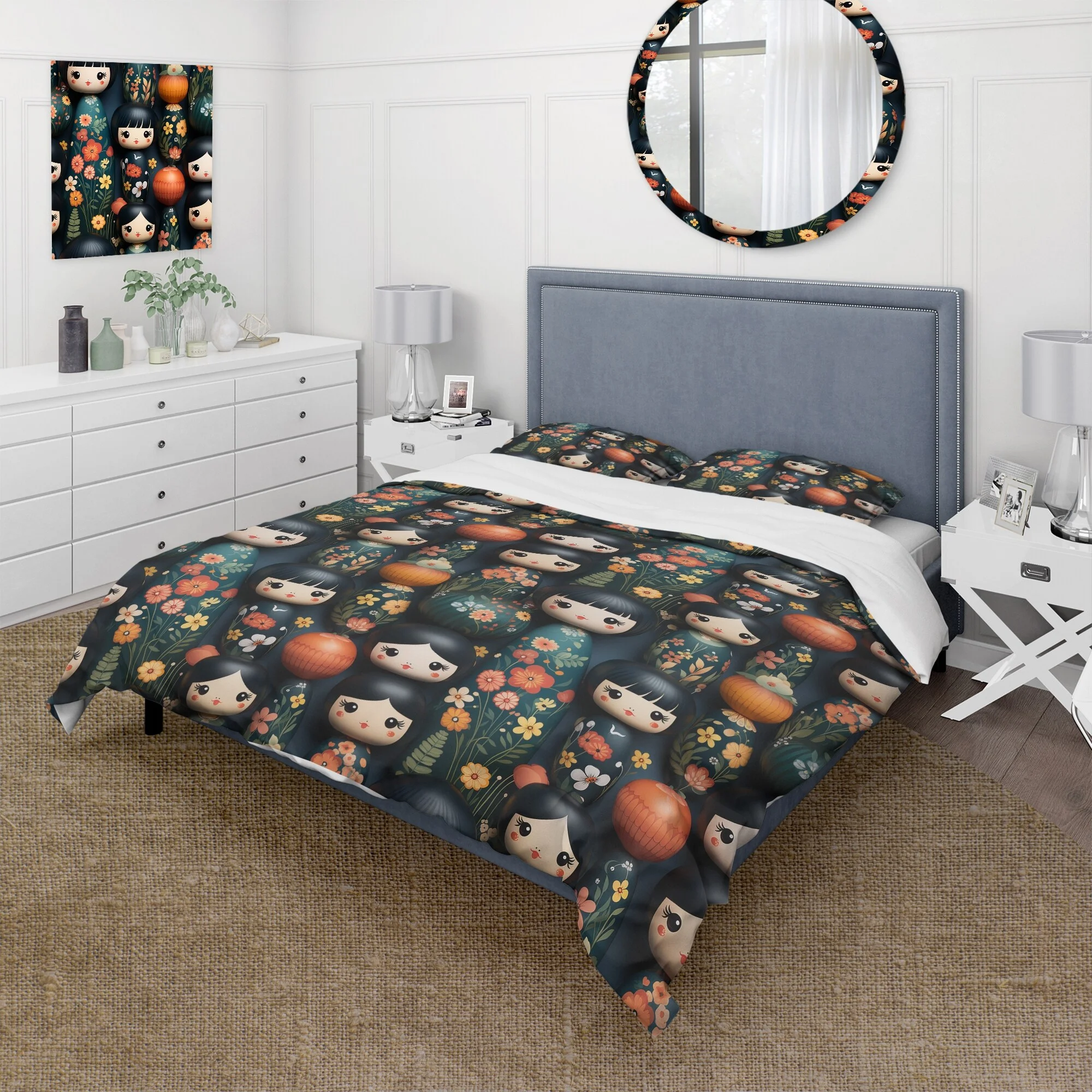 Designart "Japanese Ikebana Floral Craft" White Floral Bedding Covert Set - Cottage Bed Set With 2 Shams