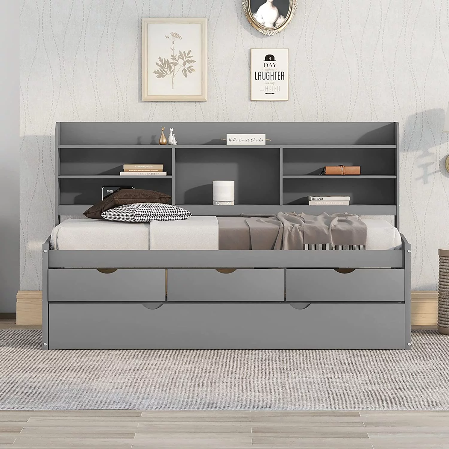 Size Daybed Frame, Wooden Daybed For Kids Teens Guests. No Box Spring Needed, Bedroom Living Room Furniture (Espresso)