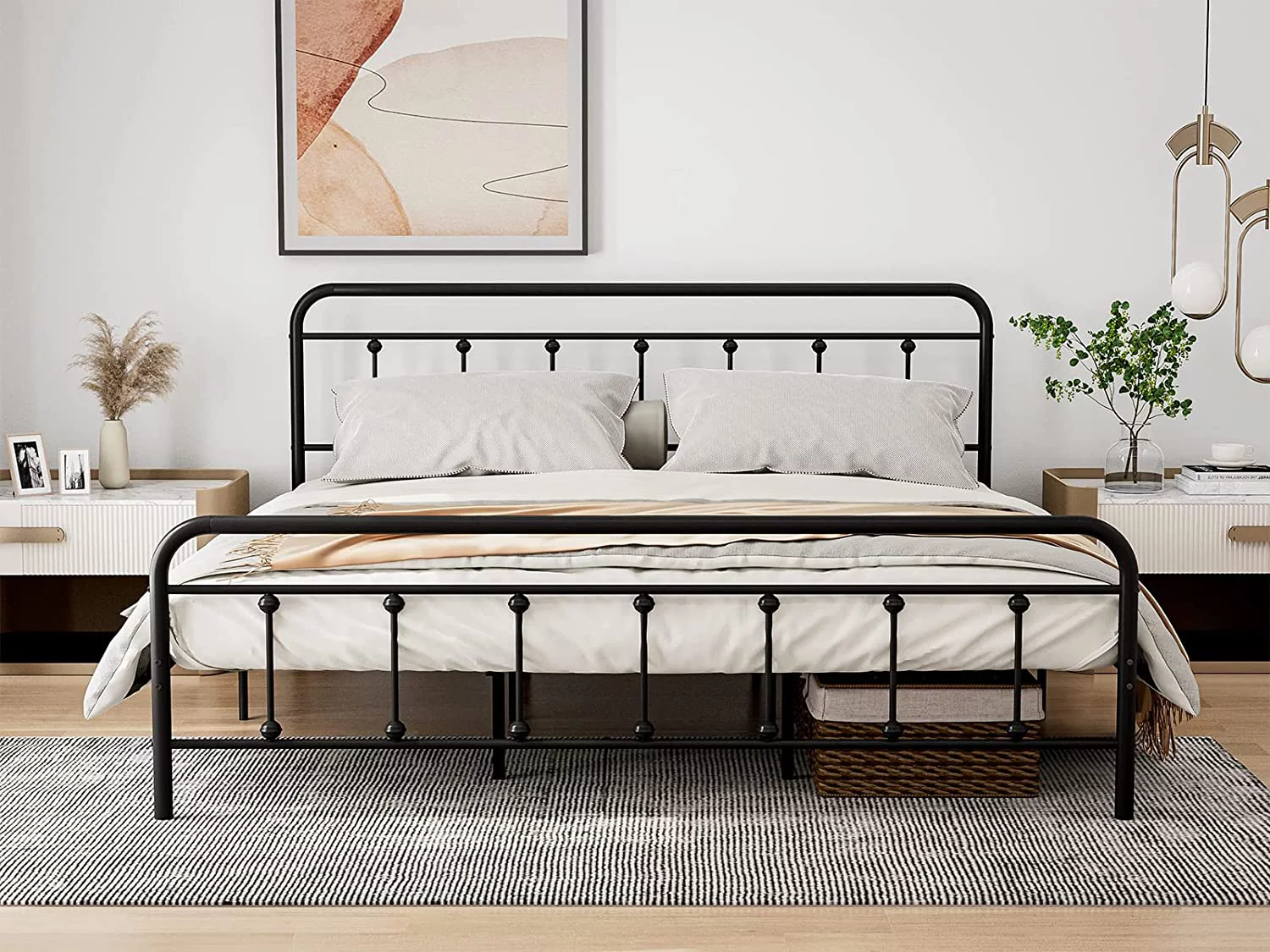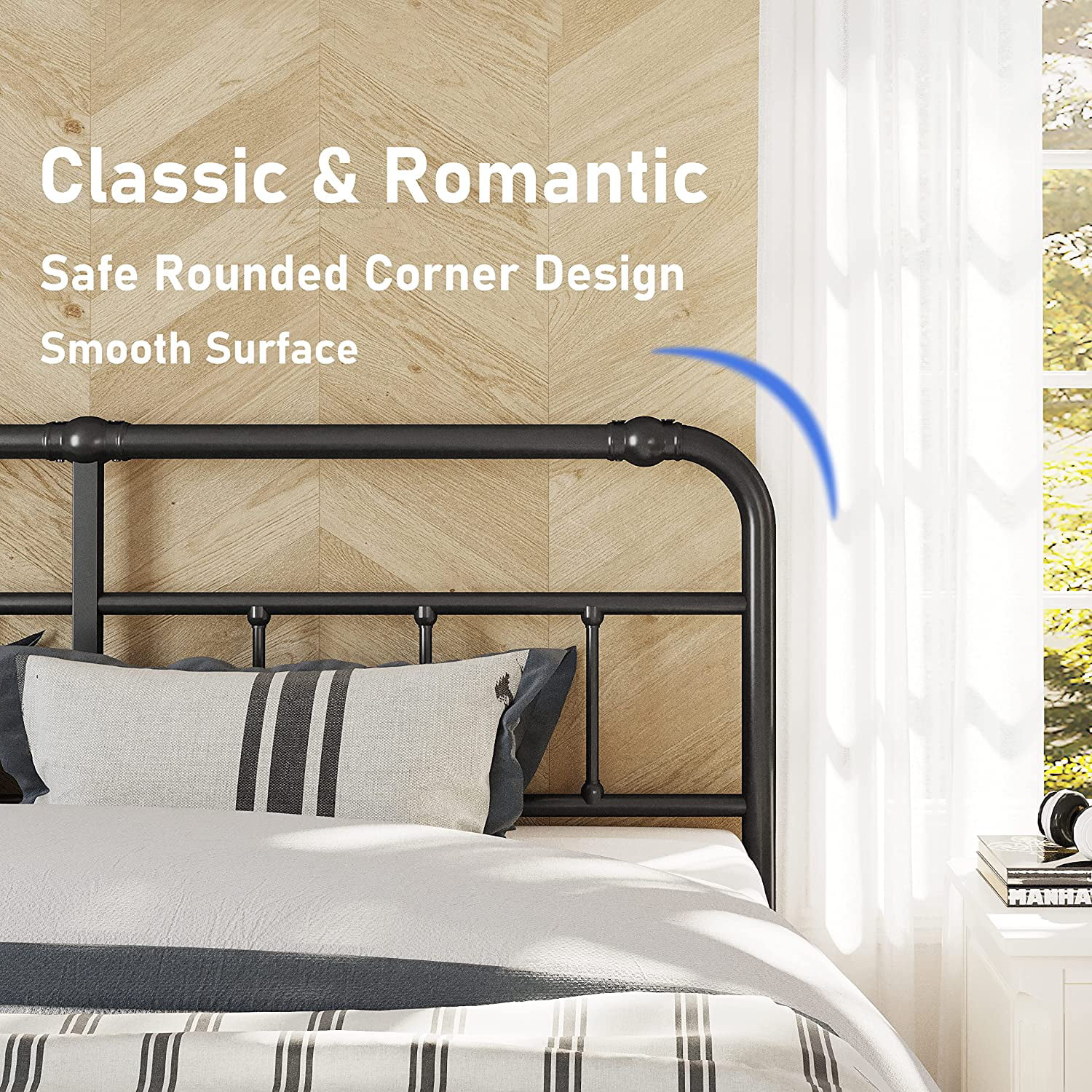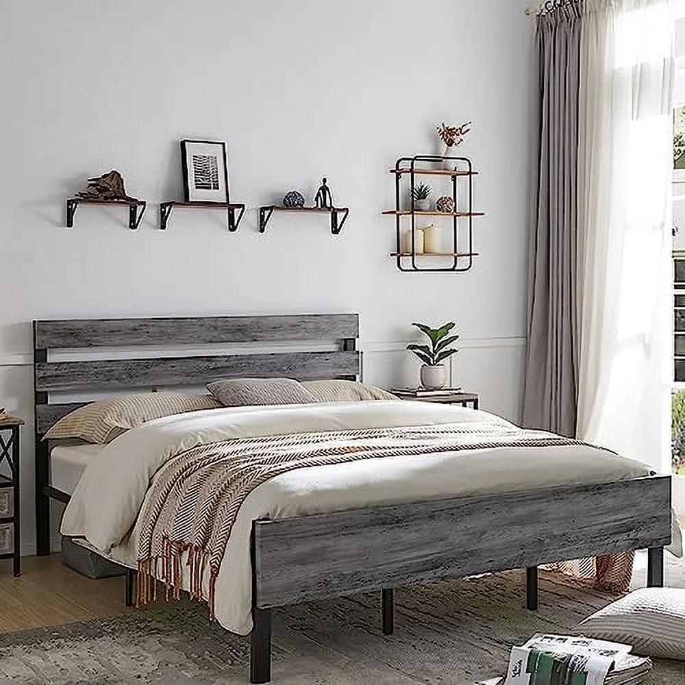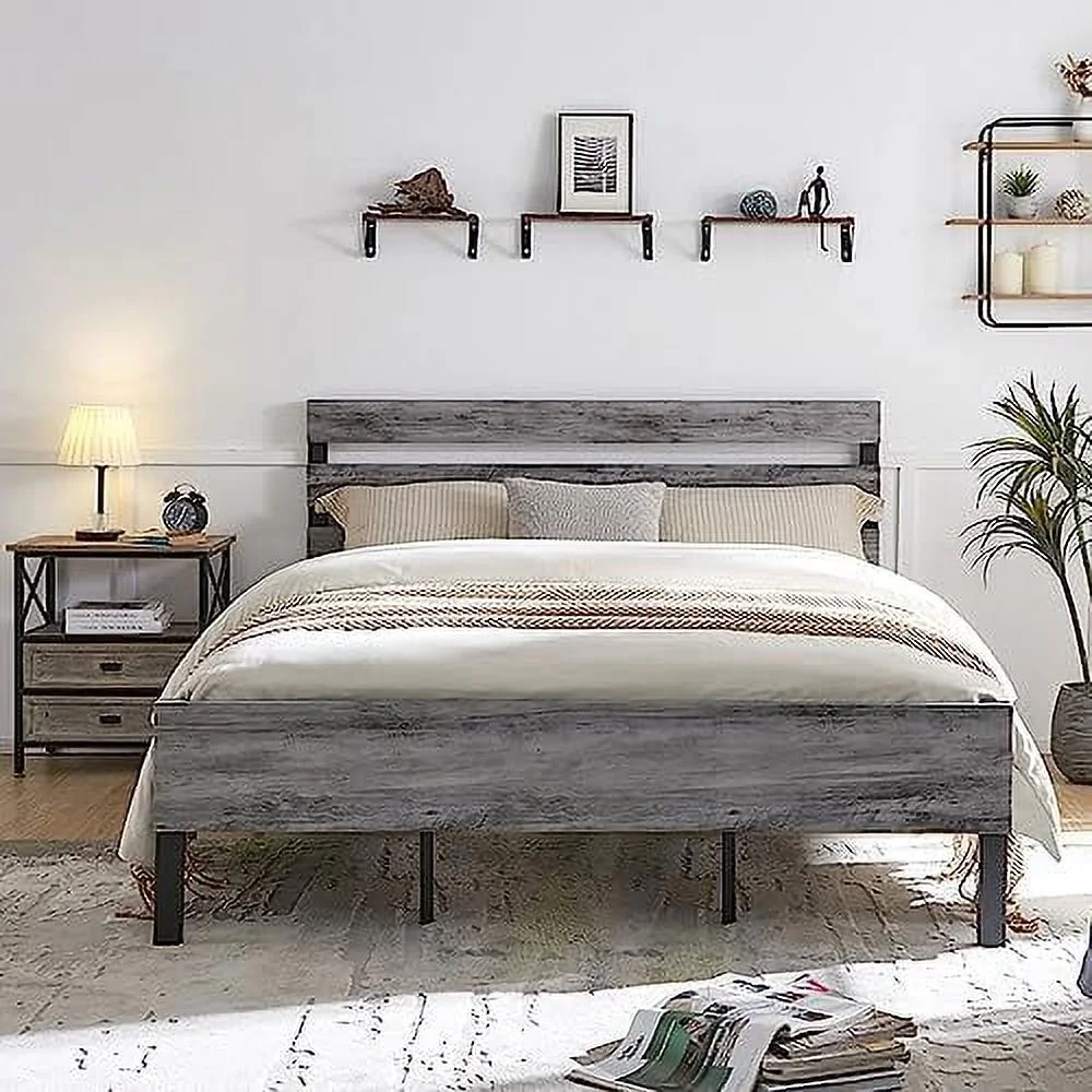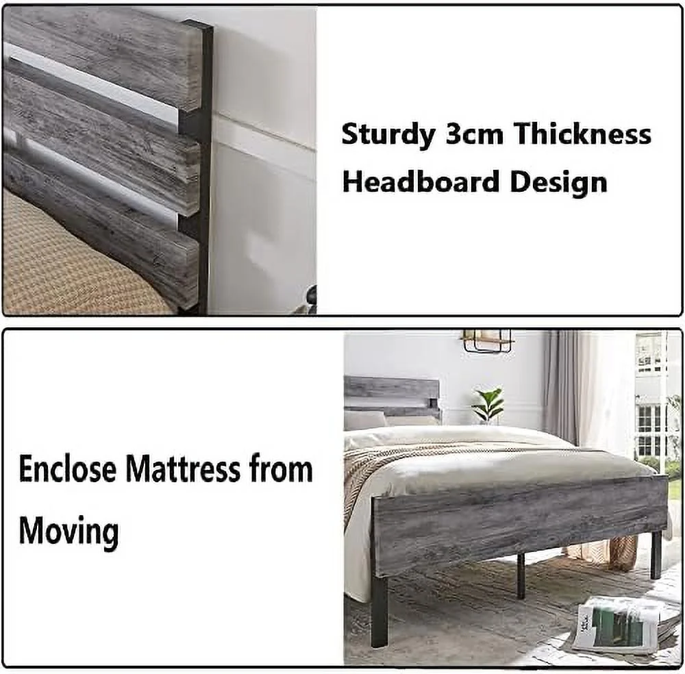 xrboomlife King Metal Platform Bed Frame with Wood Headboard and Footboard No Box Spring Needed Easy Assembly Gray