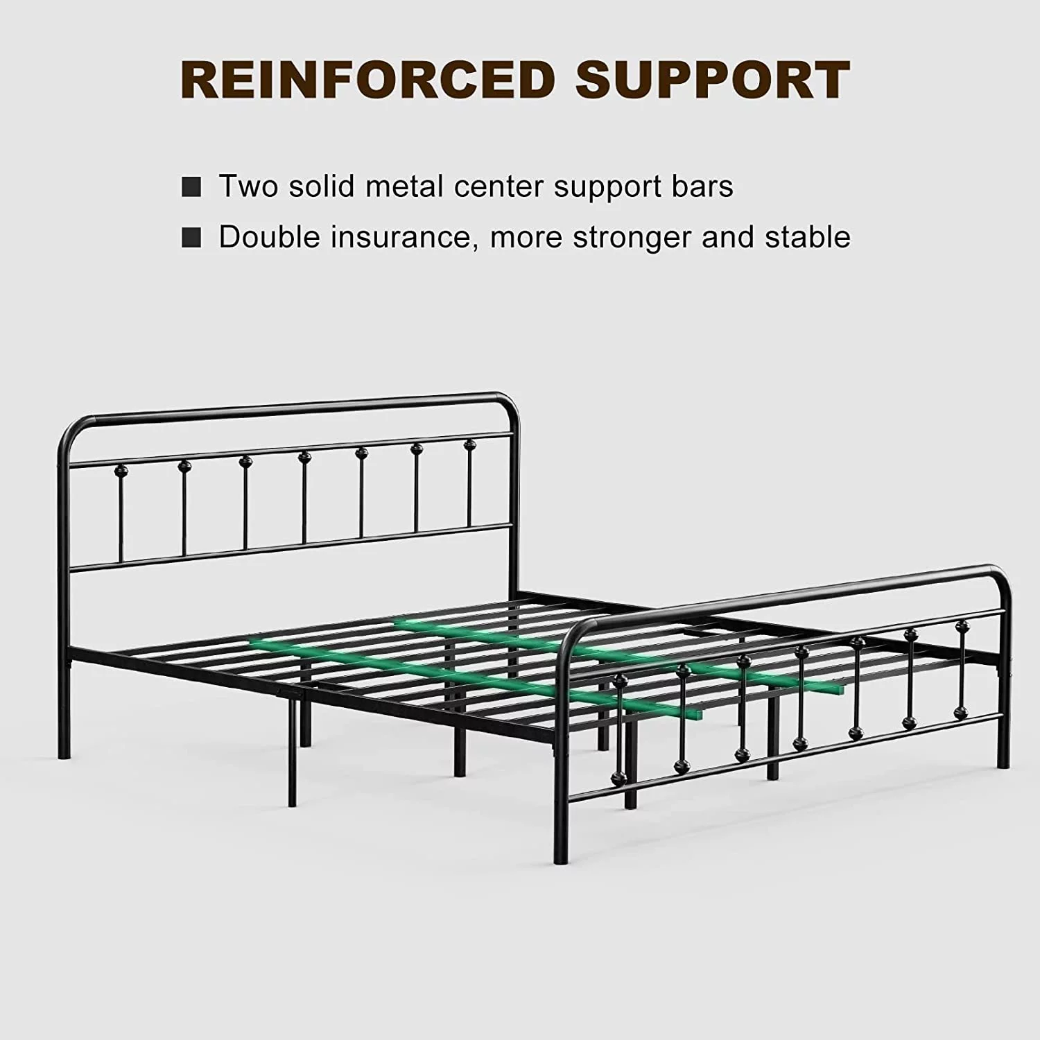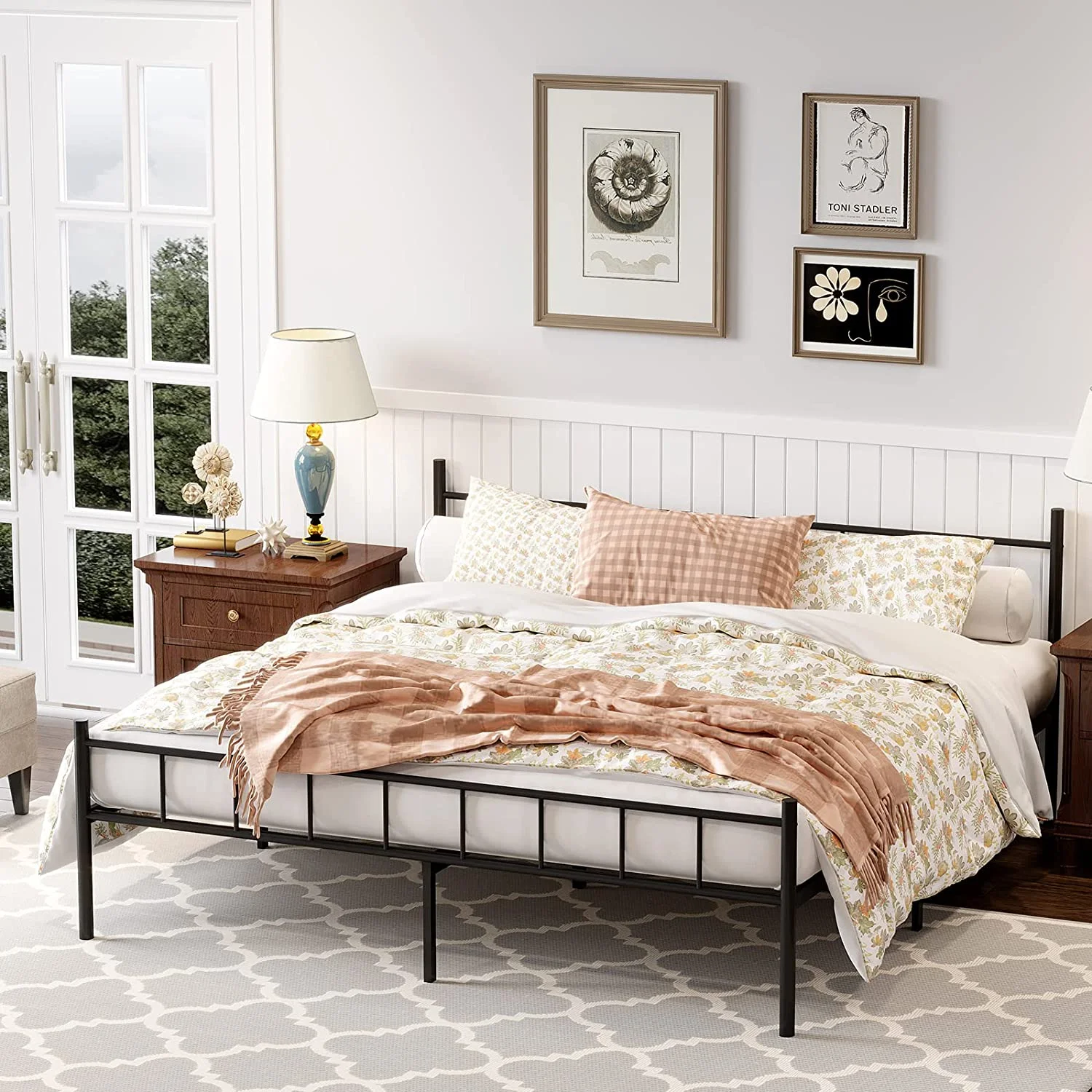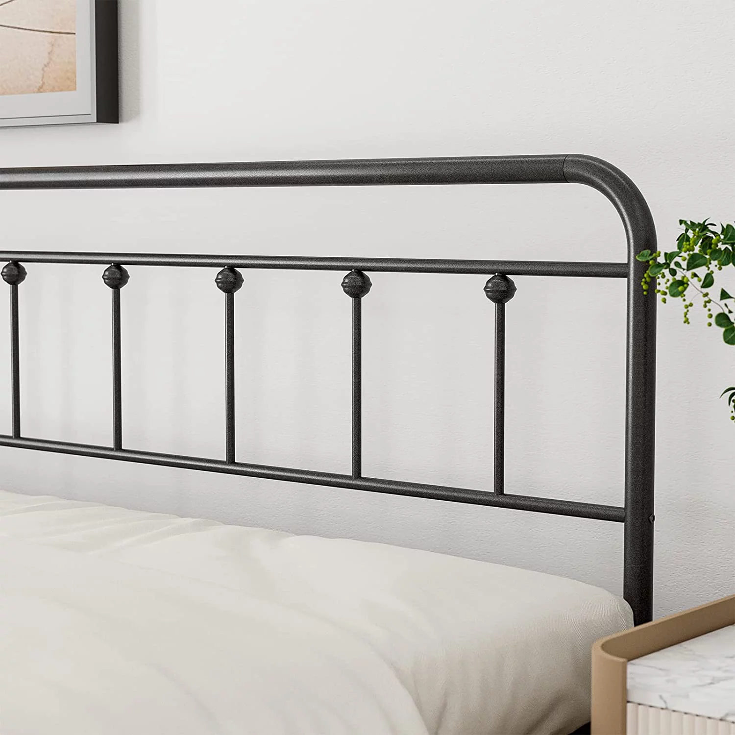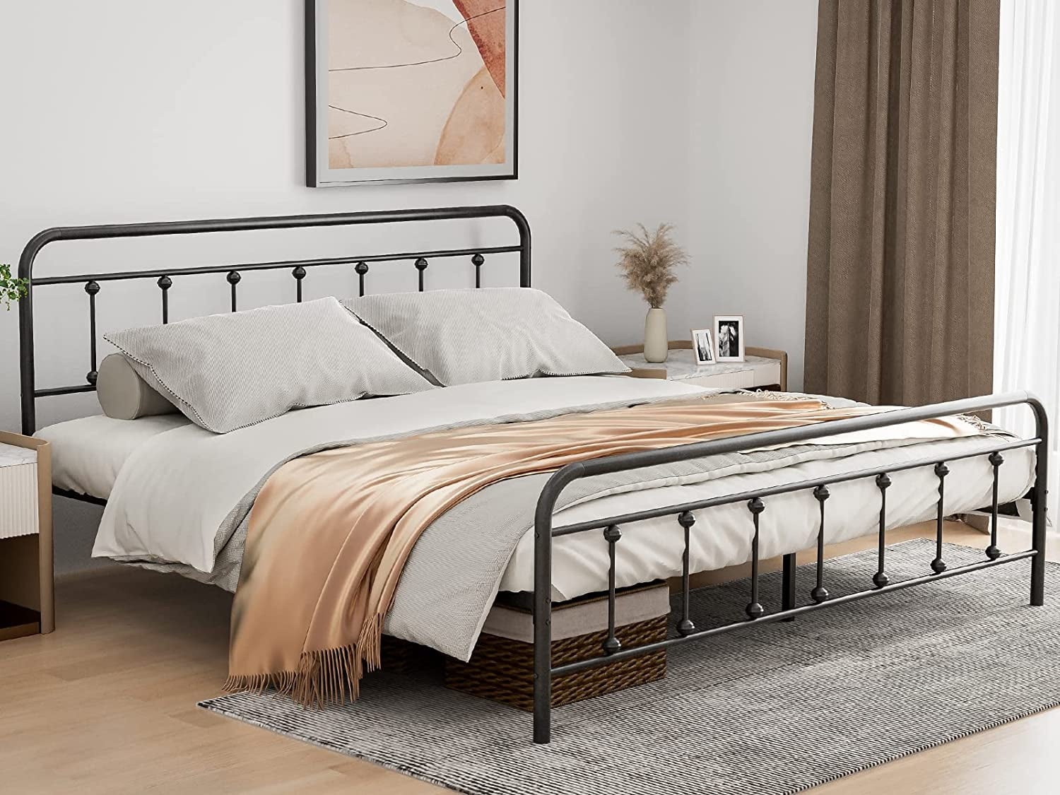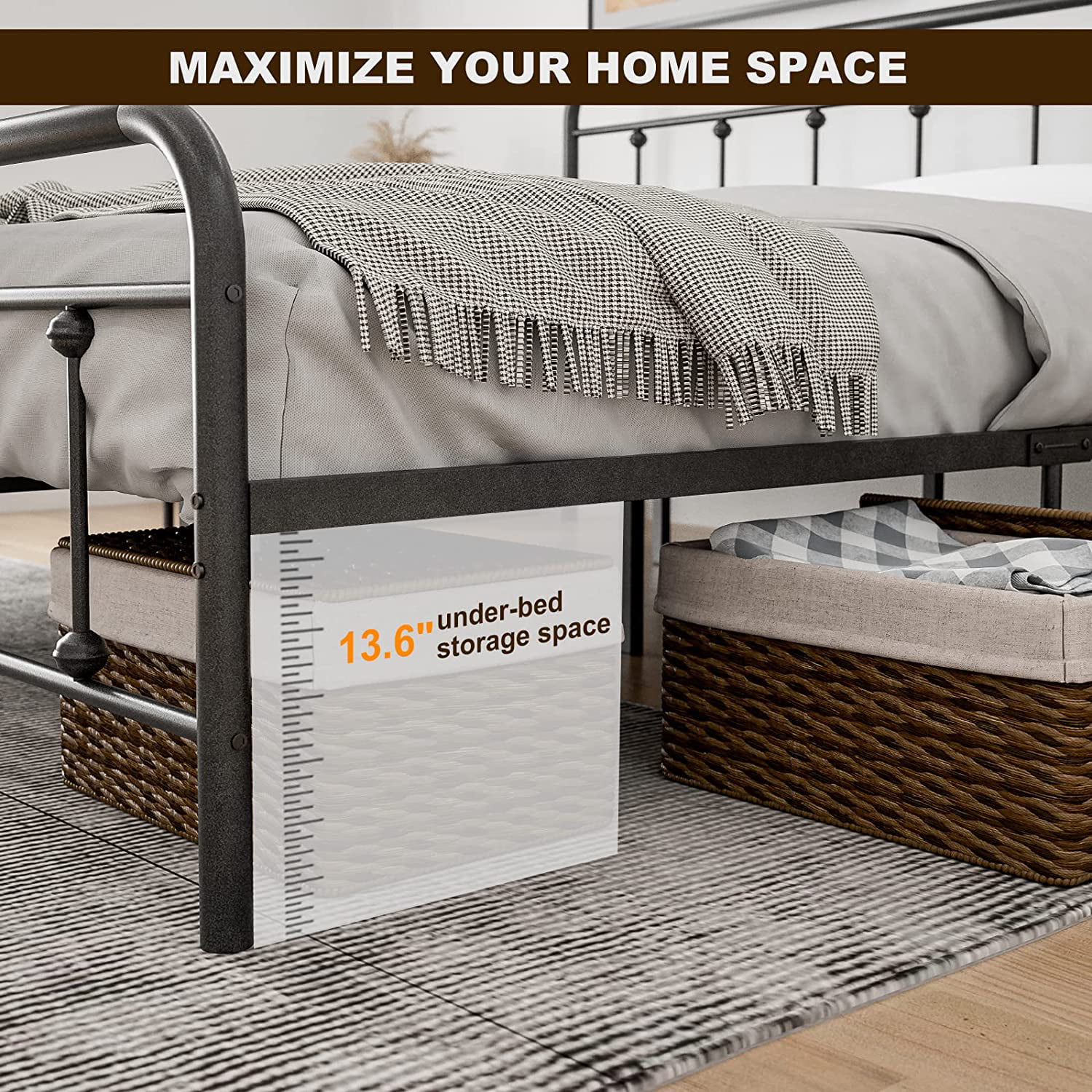 xrboomlife King Metal Platform Bed Frame with Wood Headboard and Footboard No Box Spring Needed Easy Assembly Gray
