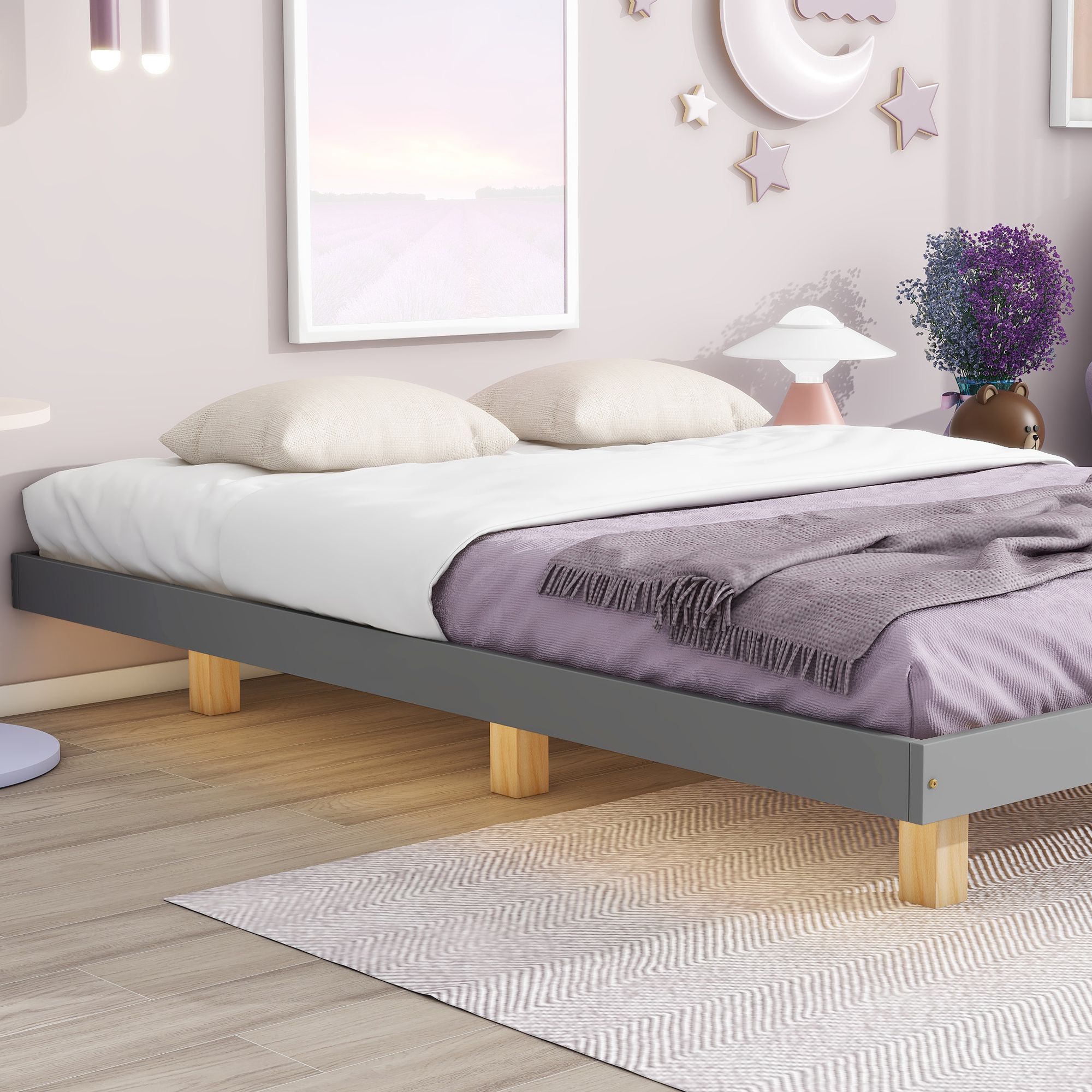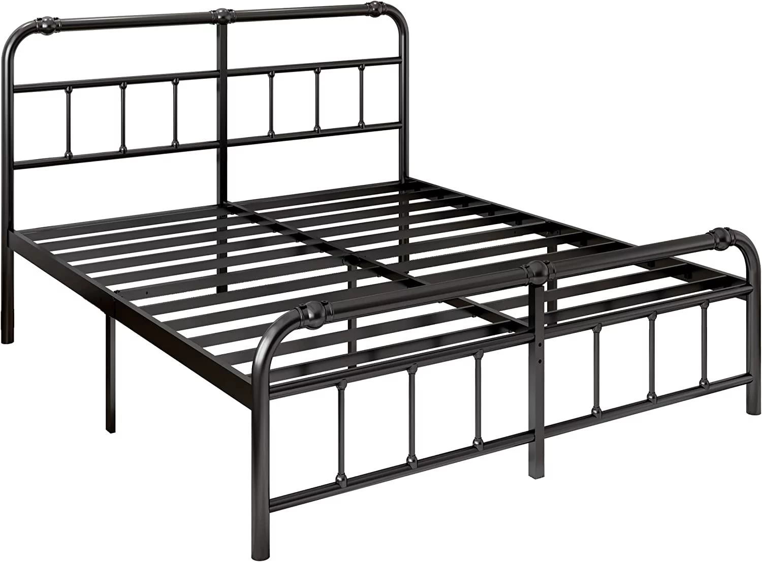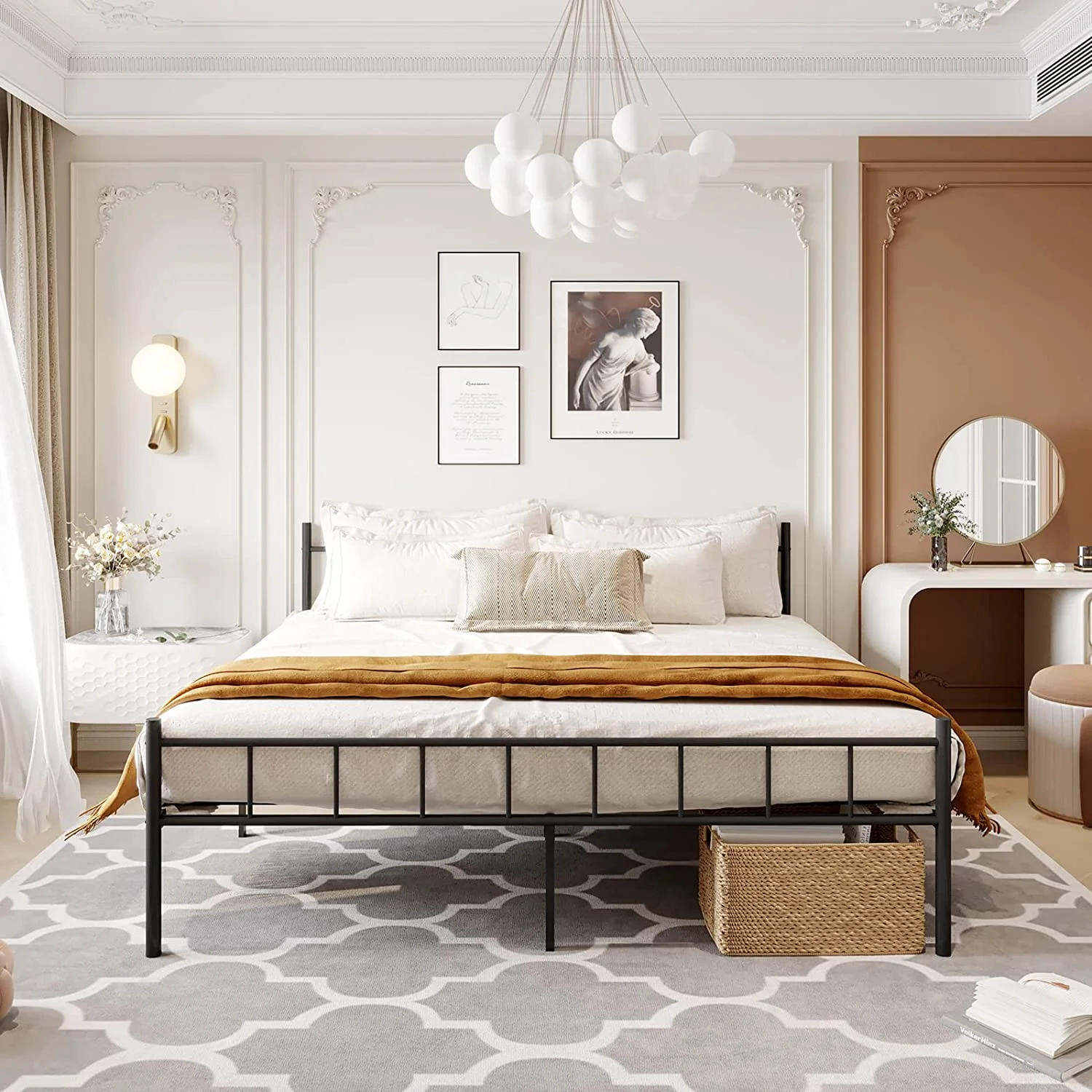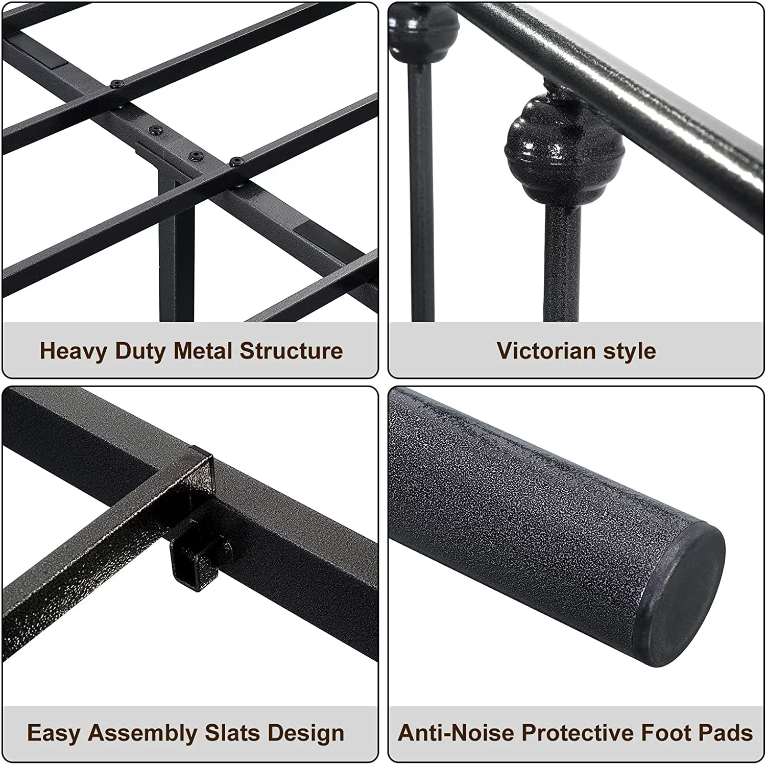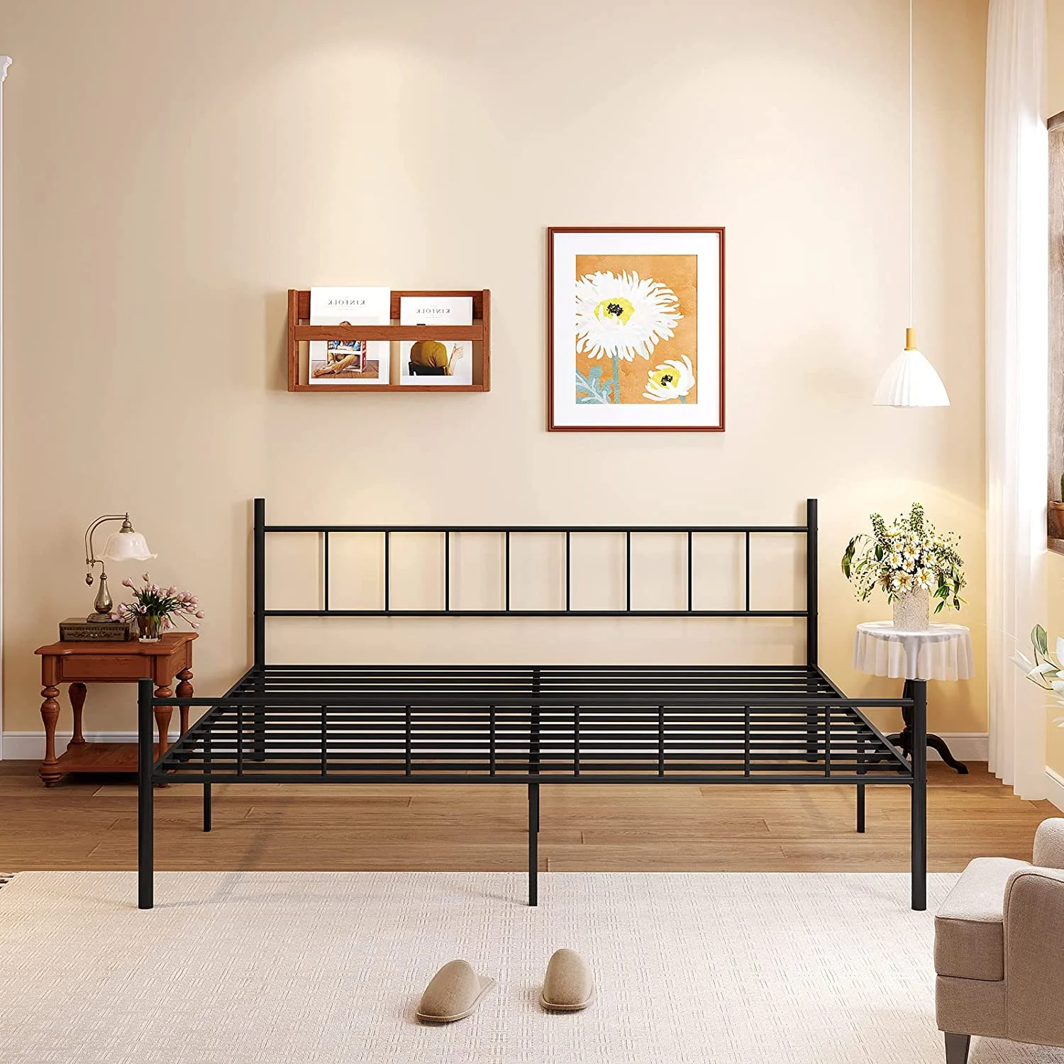 xrboomlife King Metal Platform Bed Frame with Wood Headboard and Footboard No Box Spring Needed Easy Assembly Gray