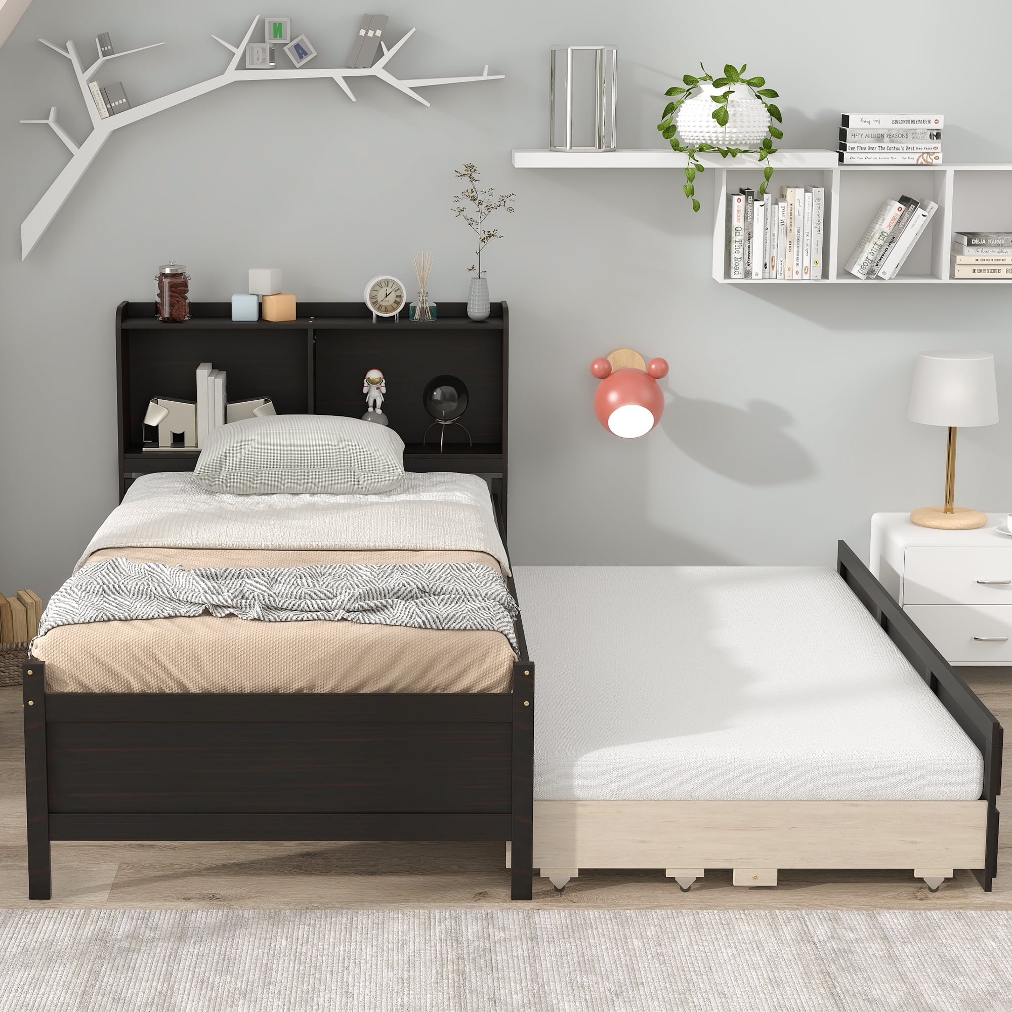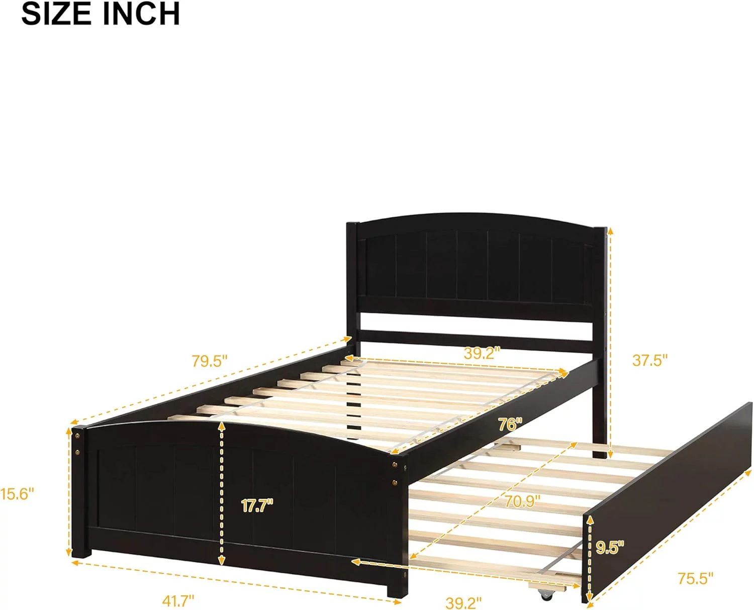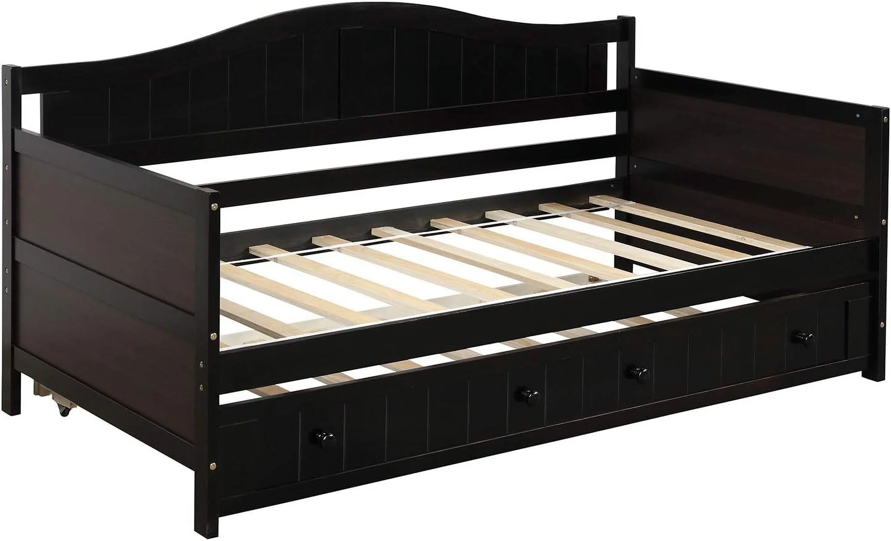 Daybed With Trudle Bed, Wood Bed Sofa Bed Frame For Bedroom, Guest Room, Livig Room (, Espresso)