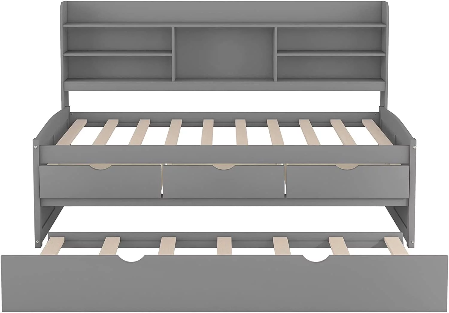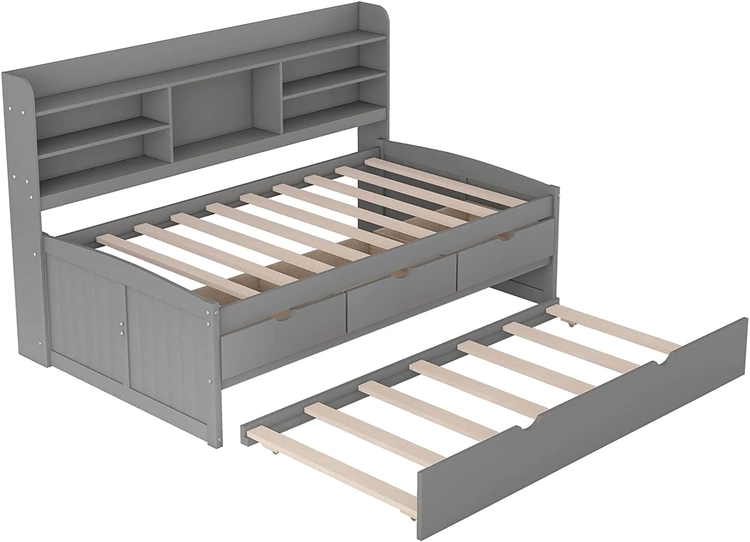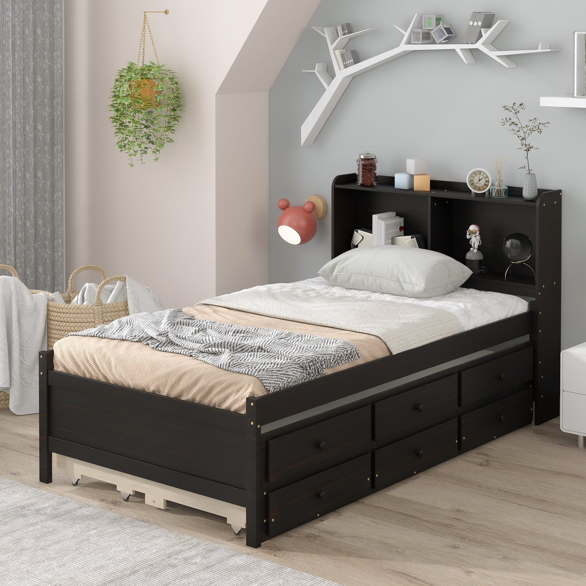 Daybed With Trudle Bed, Wood Bed Sofa Bed Frame For Bedroom, Guest Room, Livig Room (, Espresso)