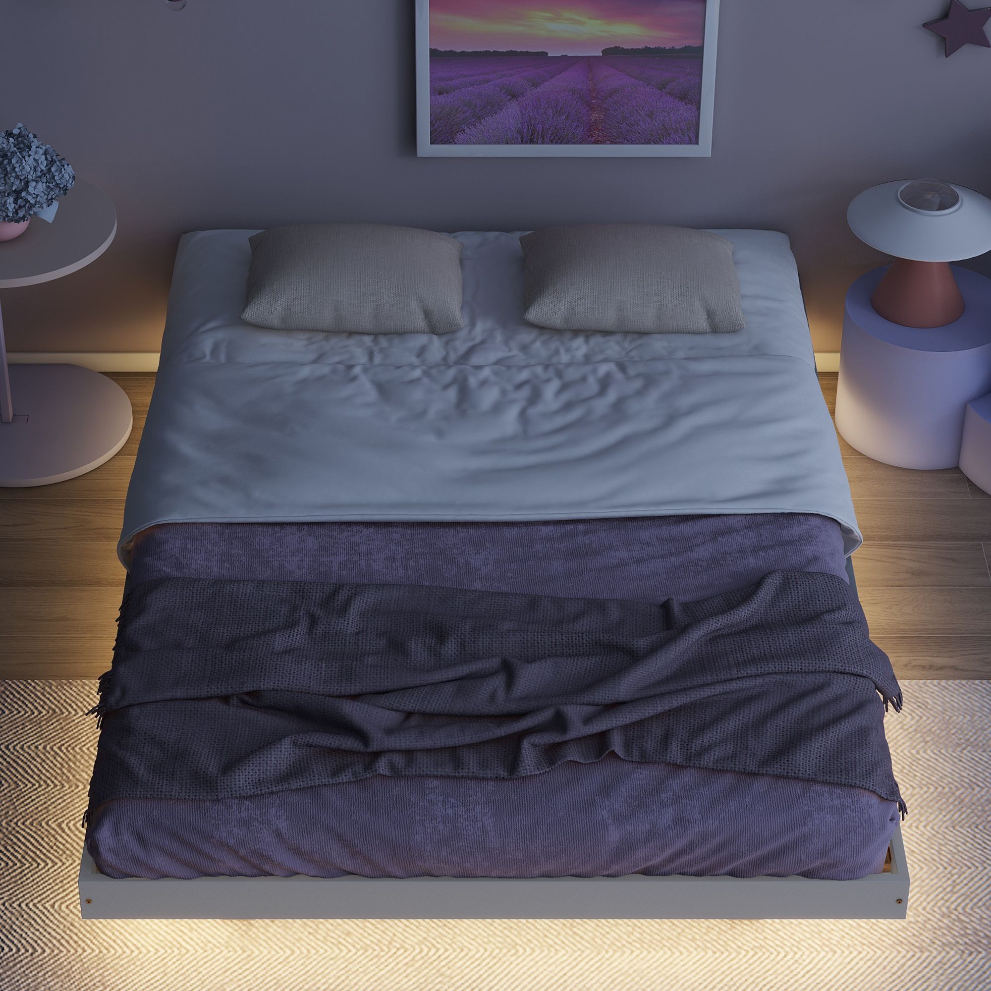 Bowery Hill Modern Faux Leather Upholstered Queen Platform Bed in White