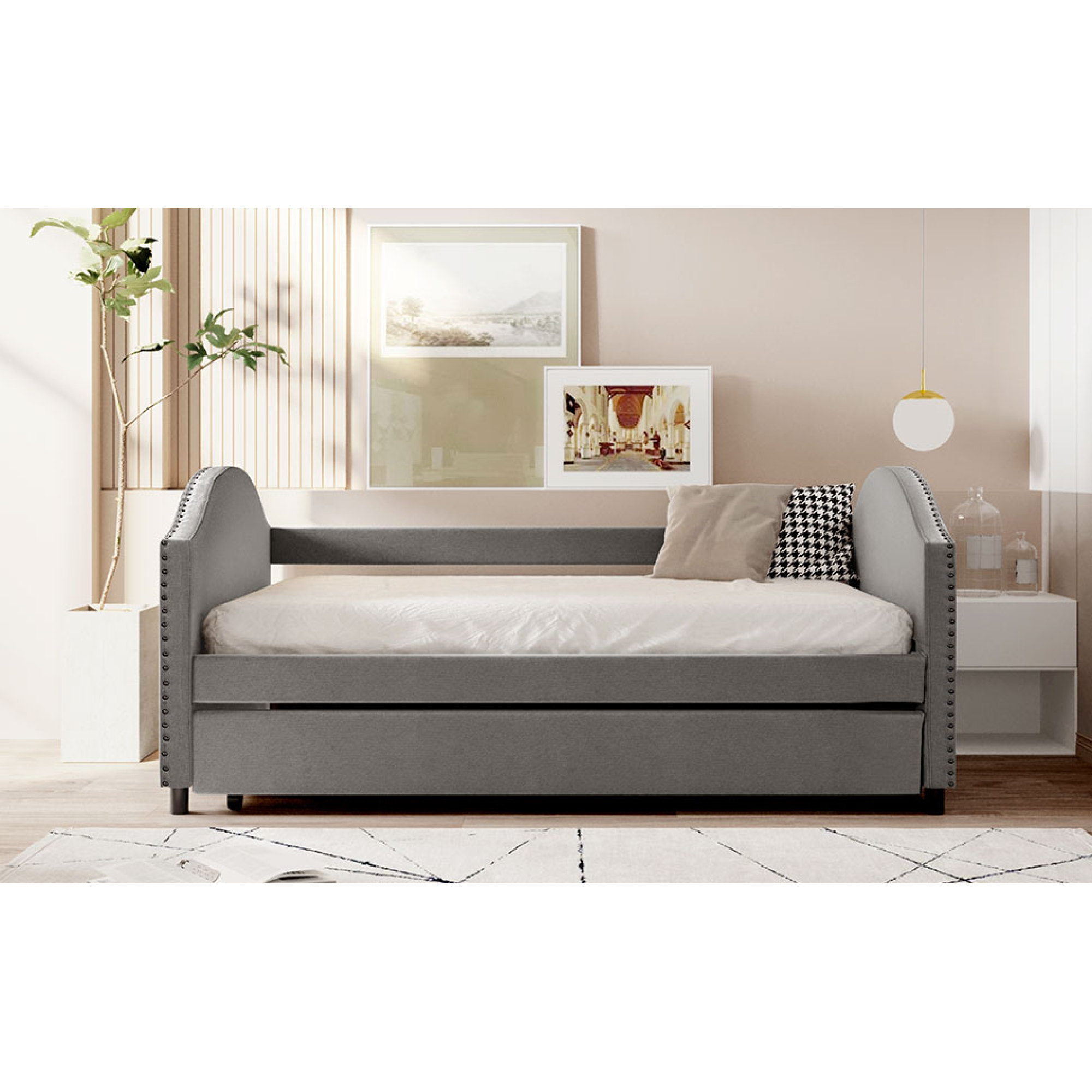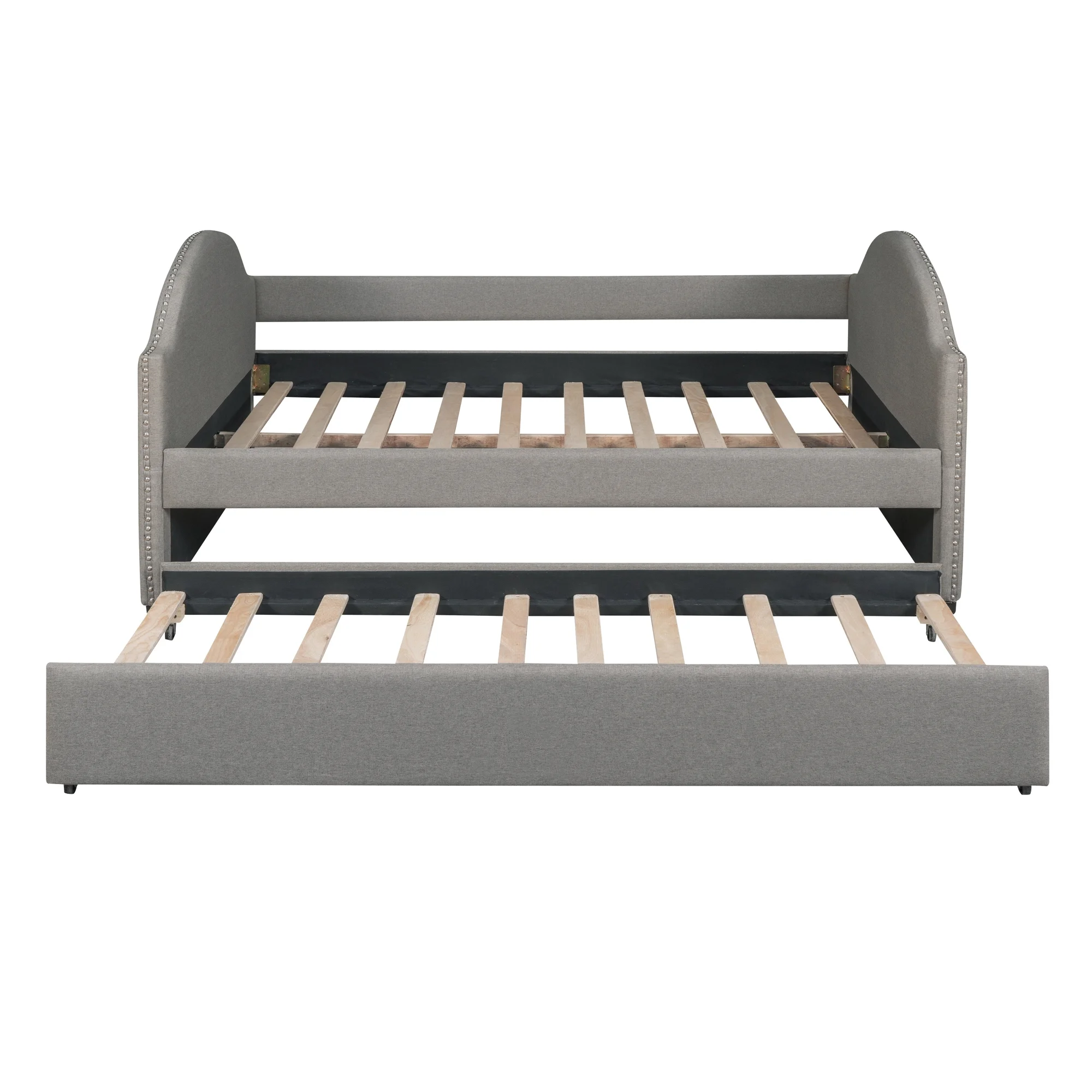 Dawn Whisper Full size Upholstered Daybed with Twin Size Trundle, Wood Slat Support, Gray