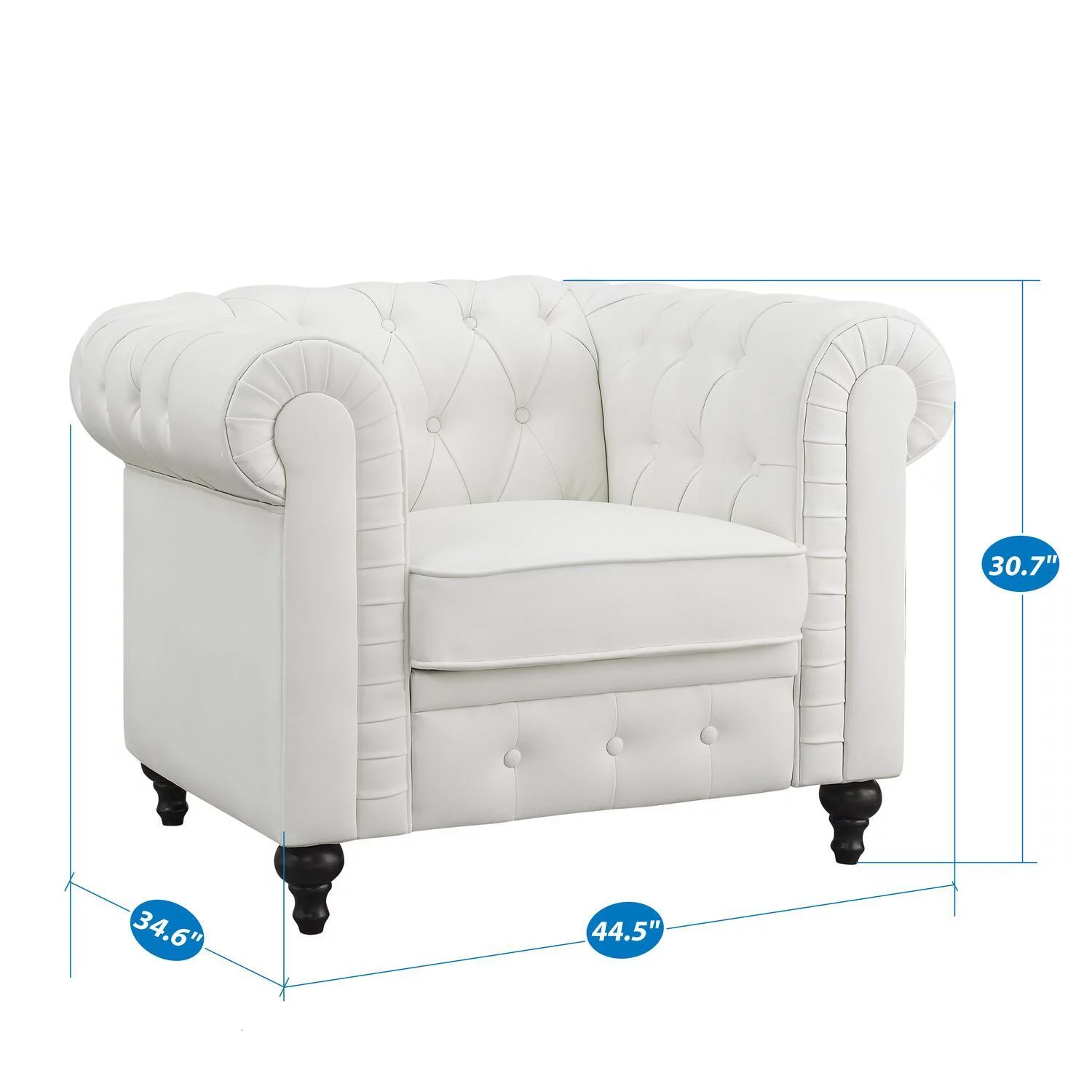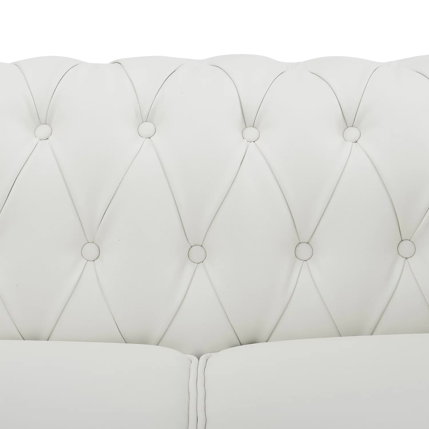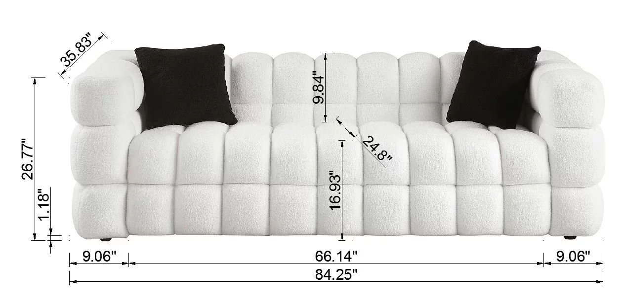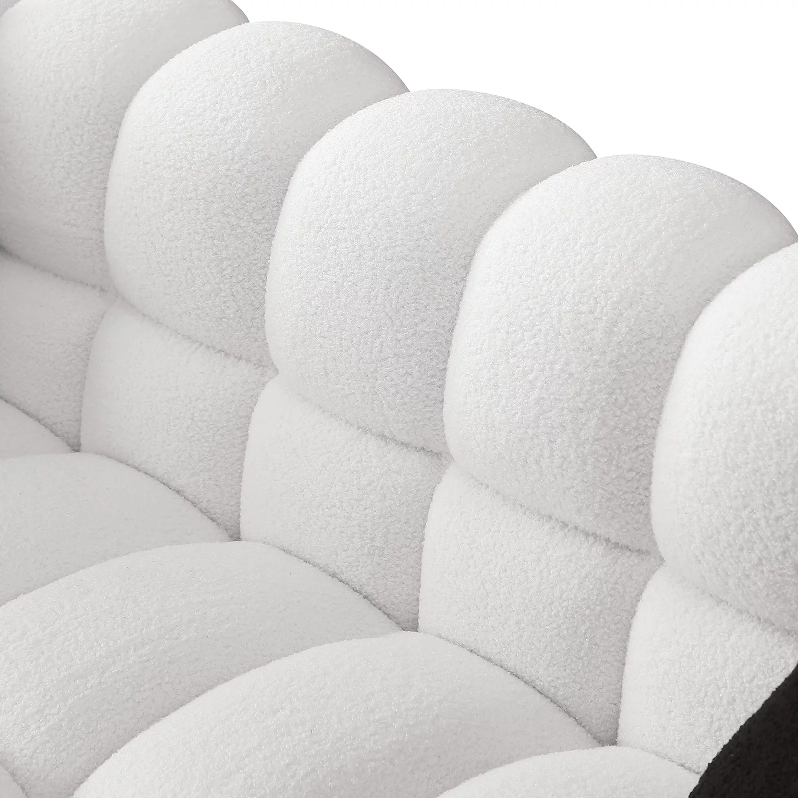 Holaki 3 Seater Sofa, 84.3" Modern Large Marshmallow Sofa with Boucle Arm, White