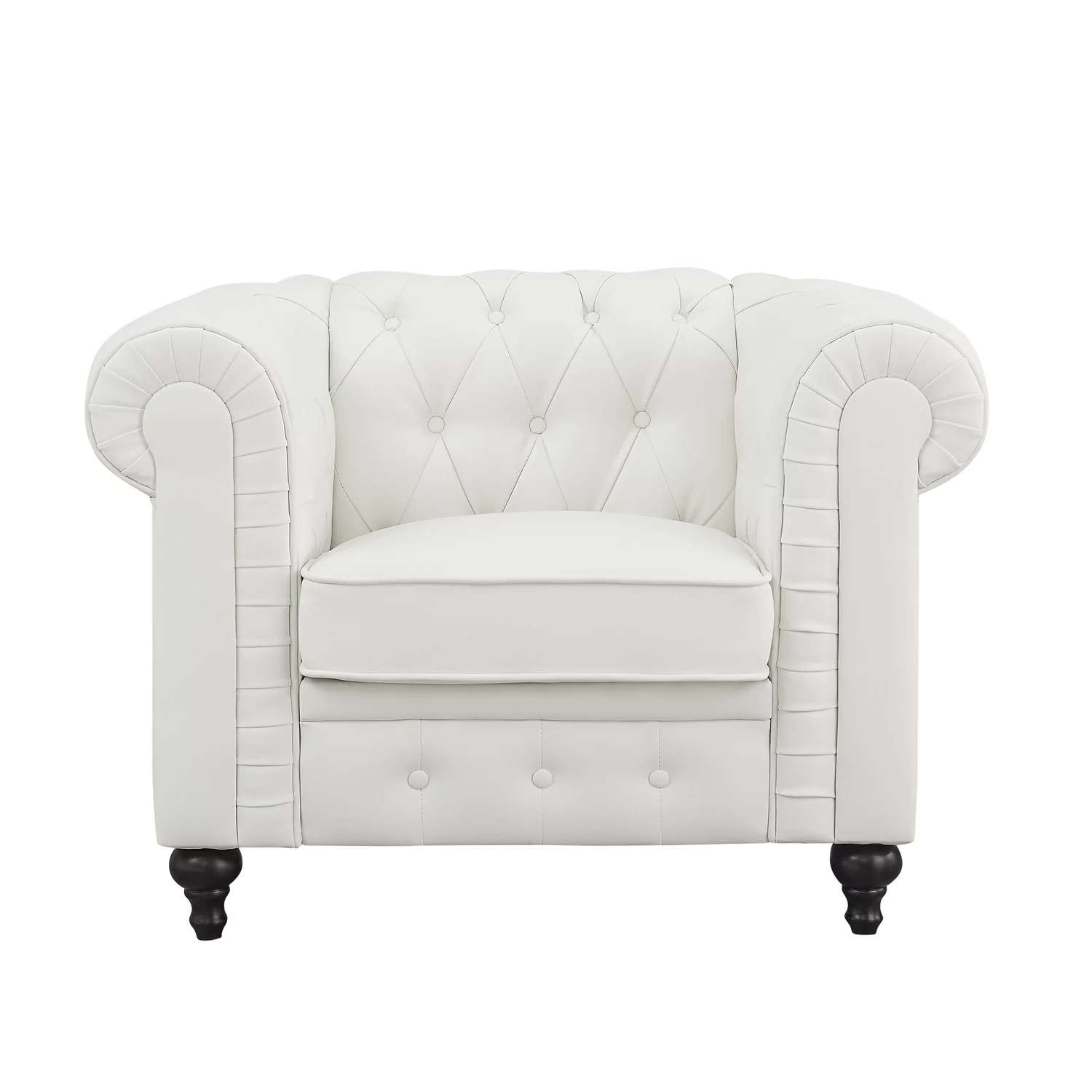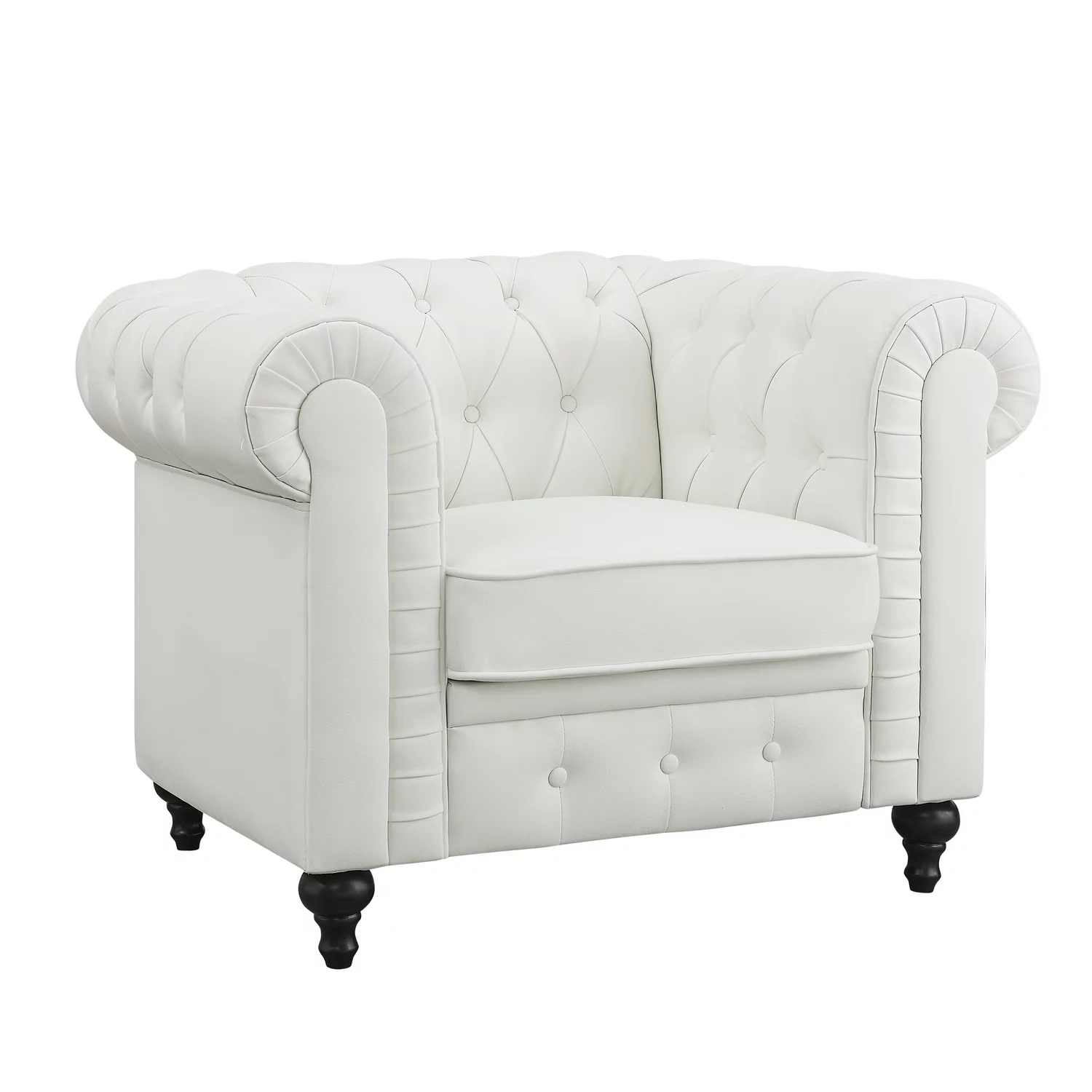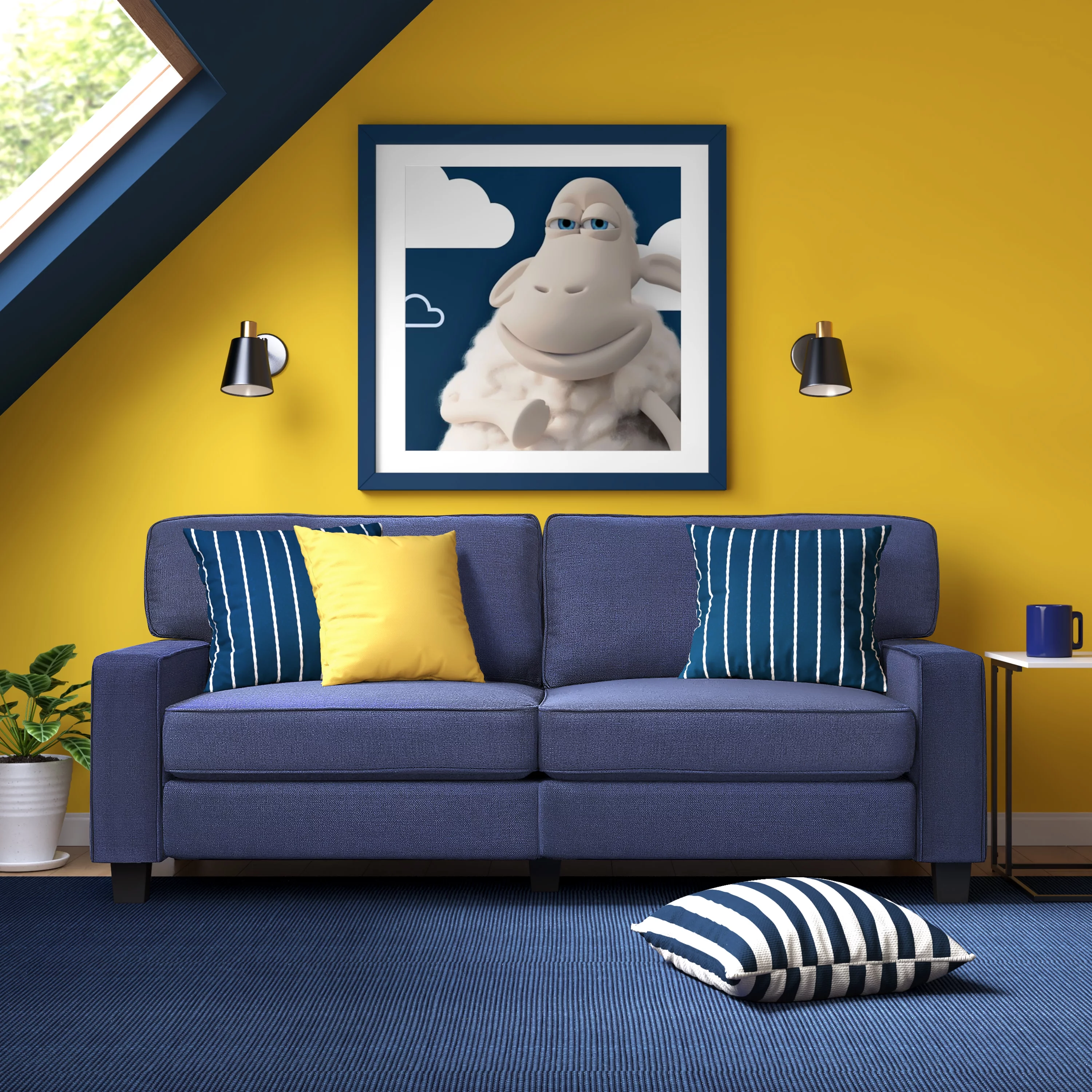Holaki 3 Seater Sofa, 84.3" Modern Large Marshmallow Sofa with Boucle Arm, White