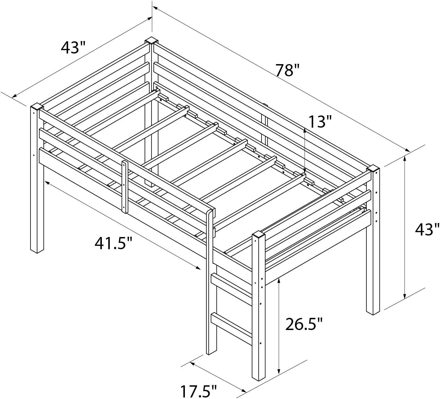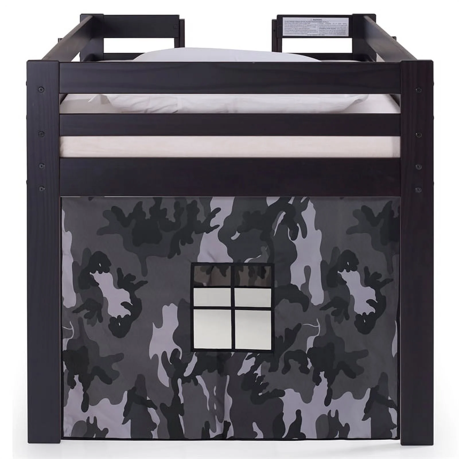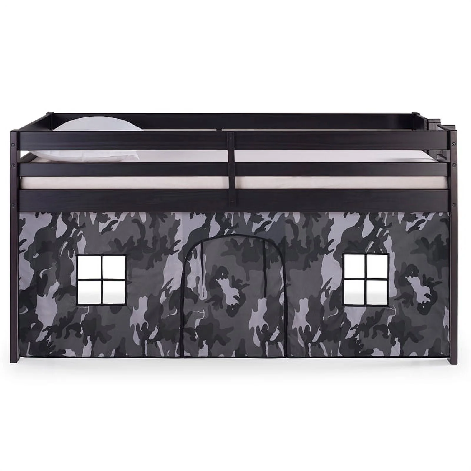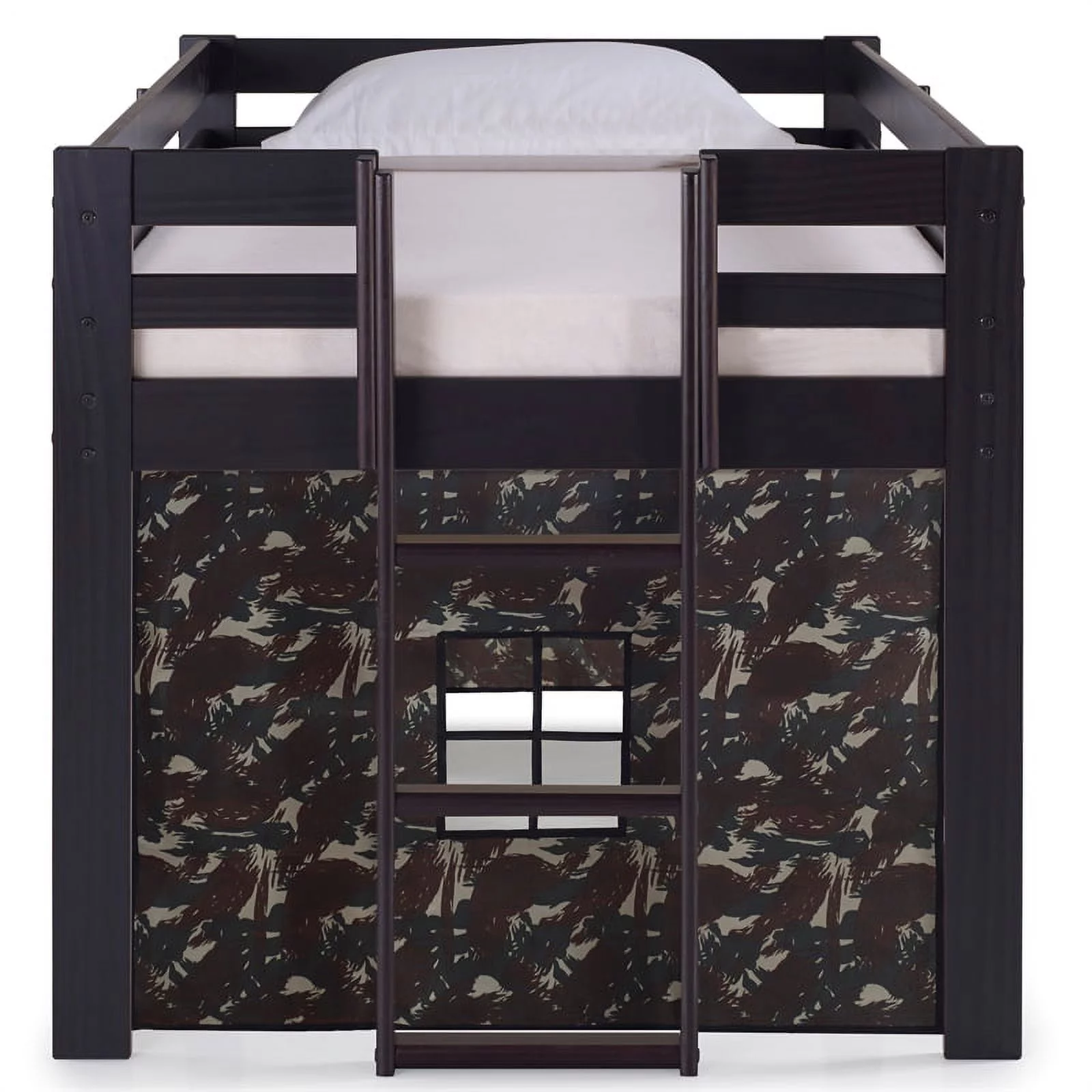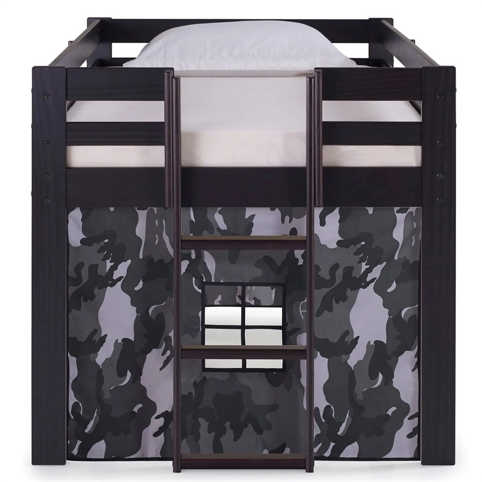 Roseberry Kids Twin Junior Loft Bed Espresso/Camouflage Bottom Playhouse Tent