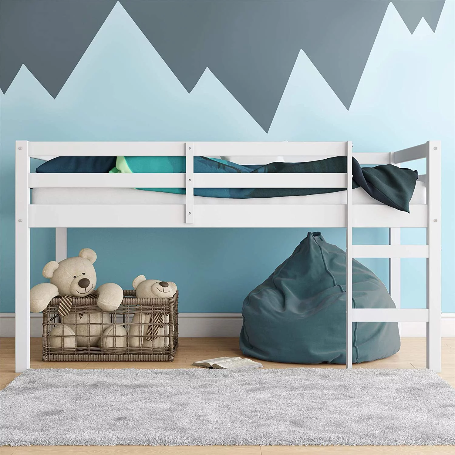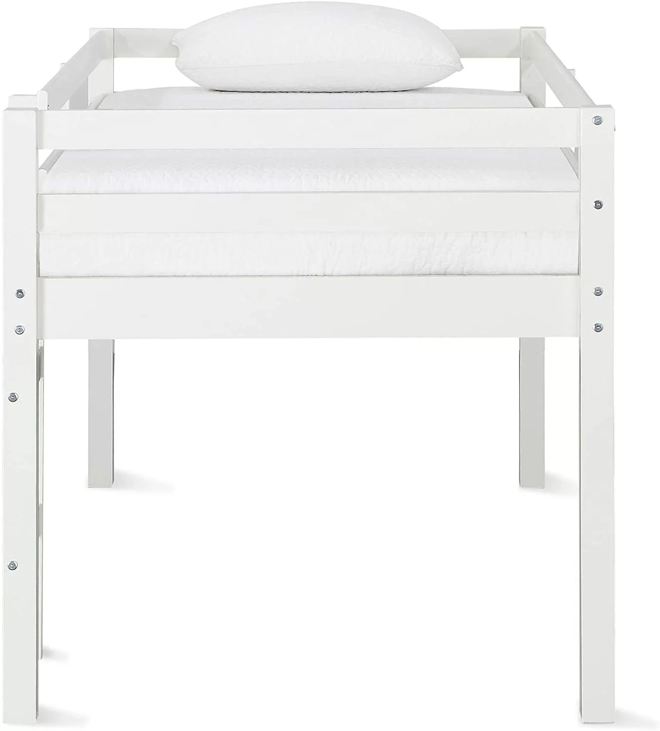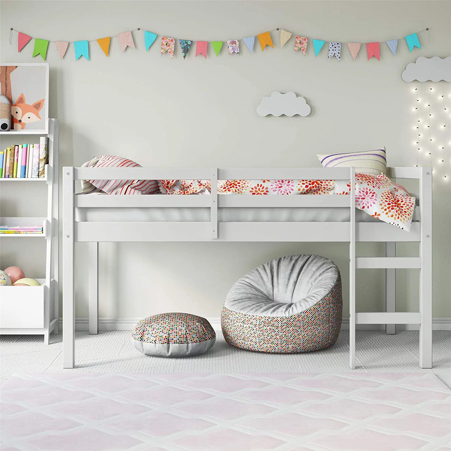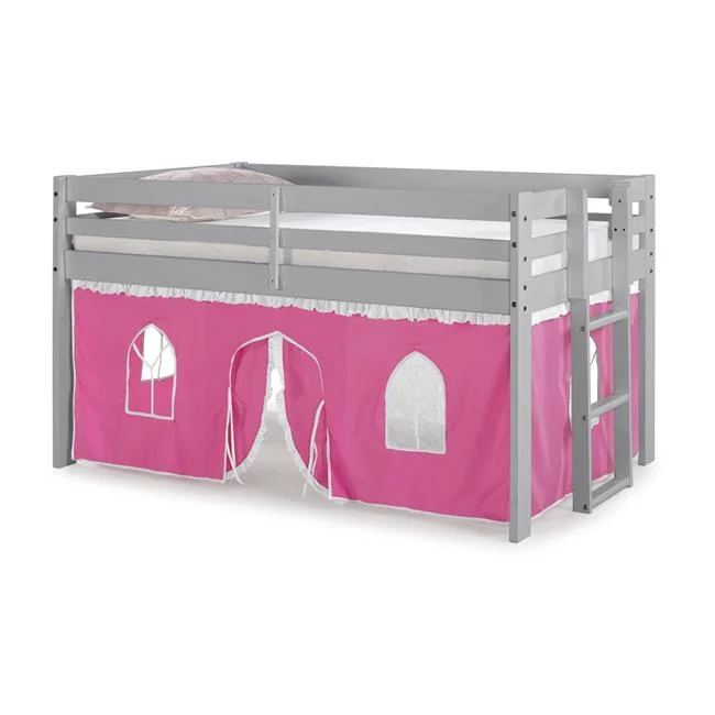 Jasper Twin Junior Loft Bed, Dove Gray Frame & Pink & White Bottom Playhouse Tent