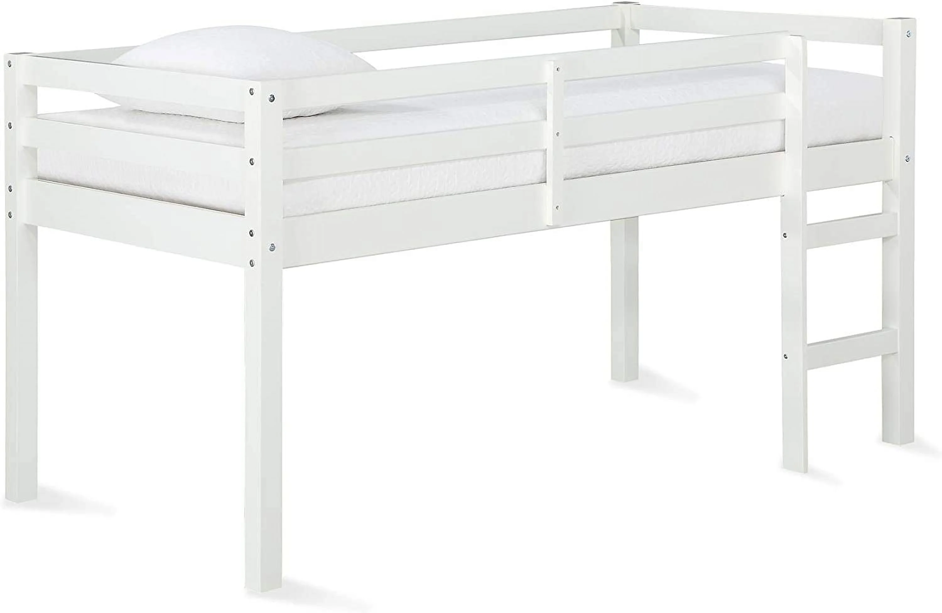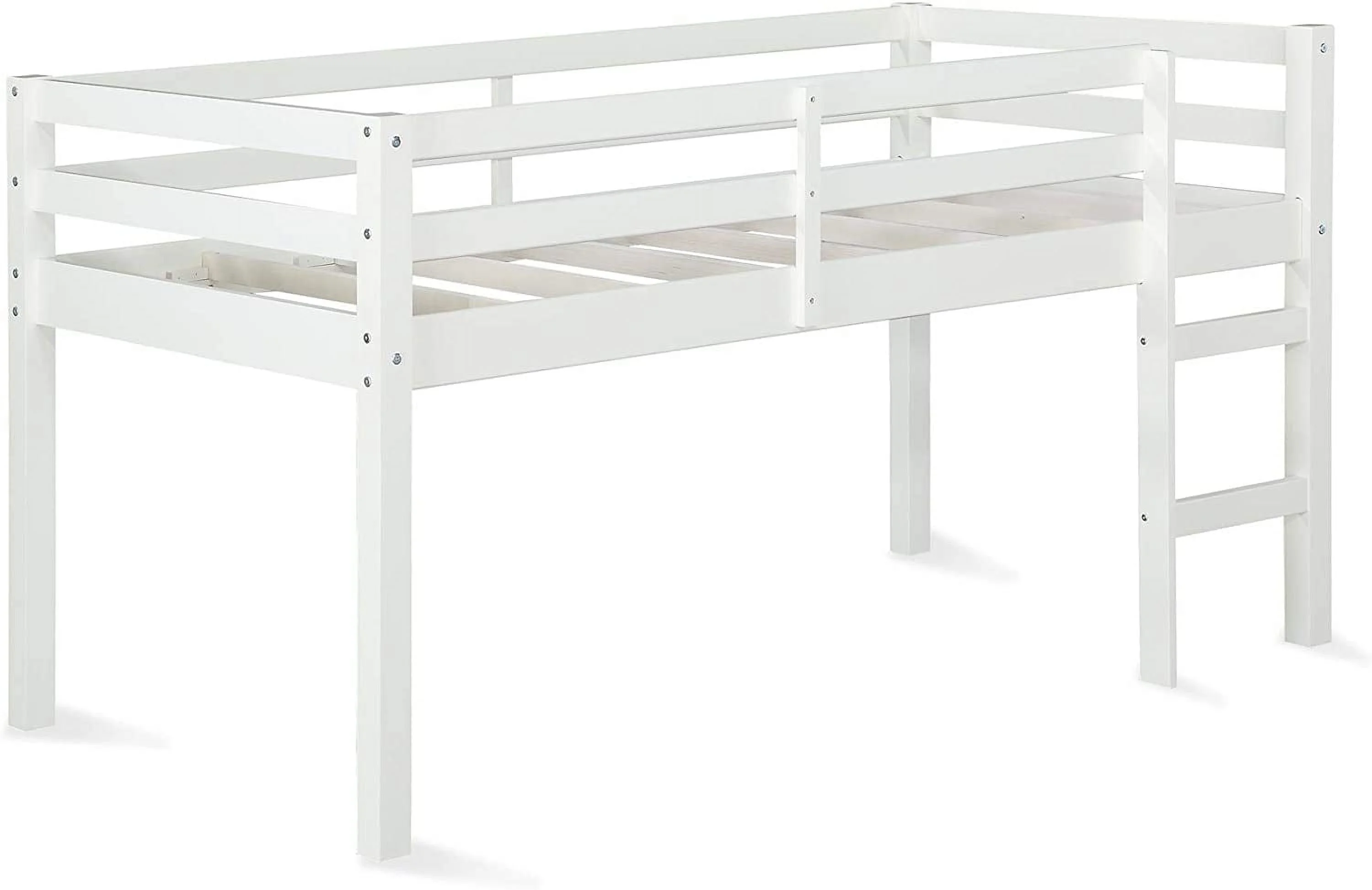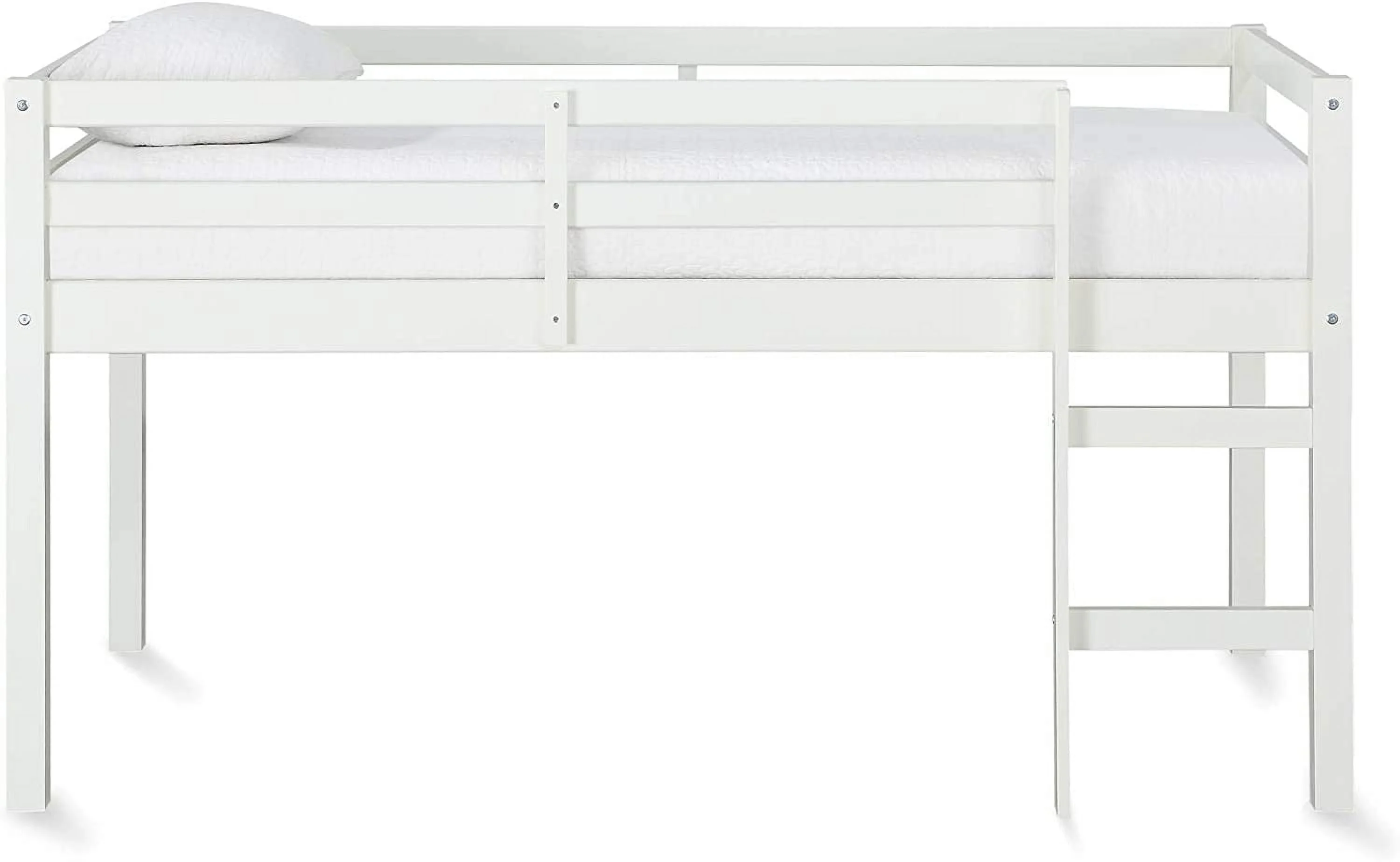 Jasper Twin Junior Loft Bed, Dove Gray Frame & Pink & White Bottom Playhouse Tent