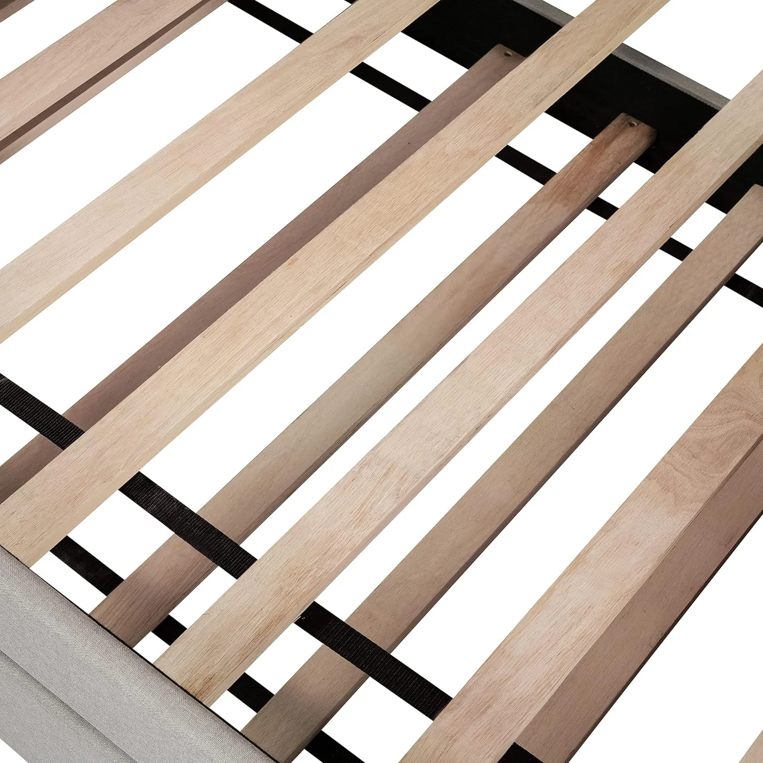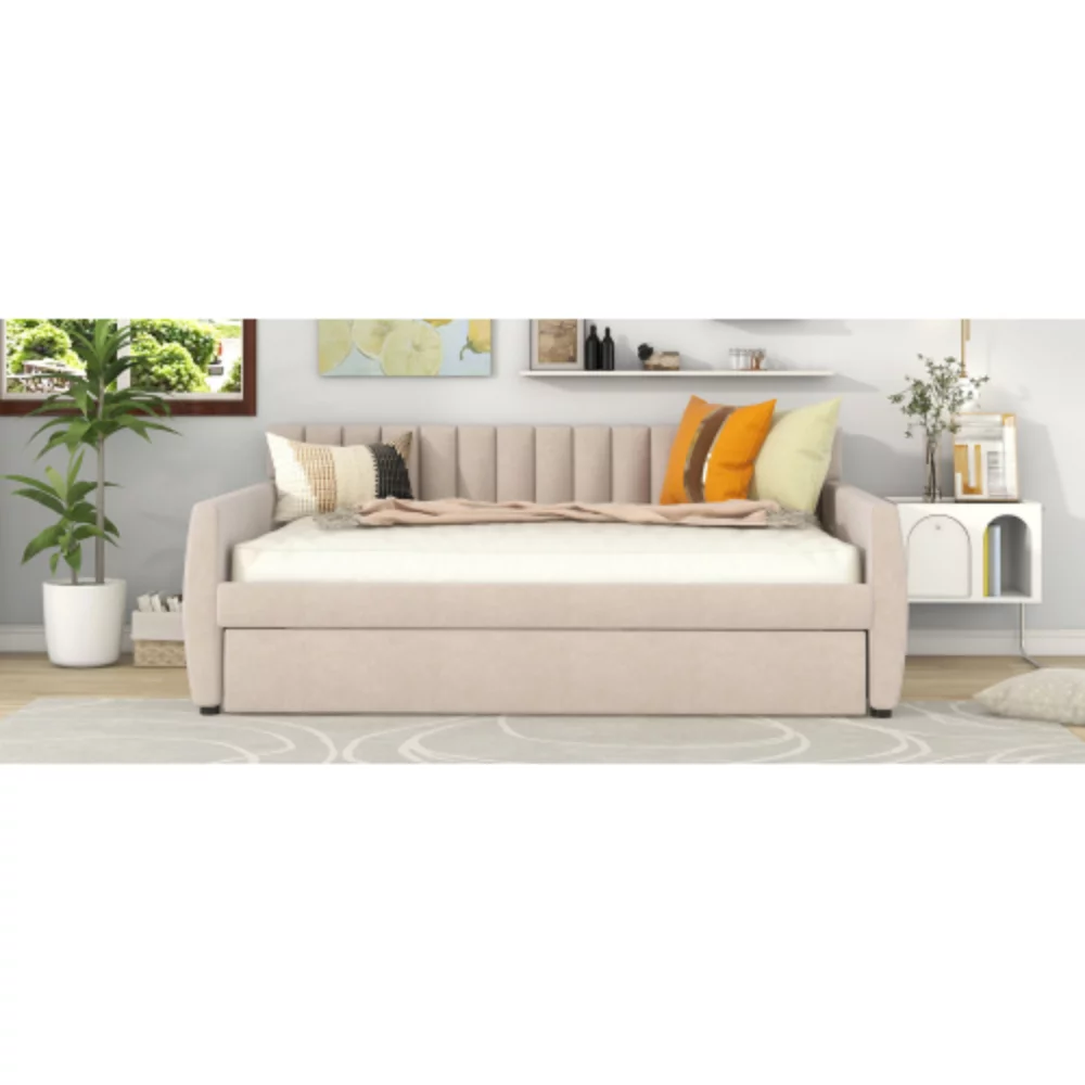 Full Size Upholstered daybed with Trundle and Wood Slat Support, Beige