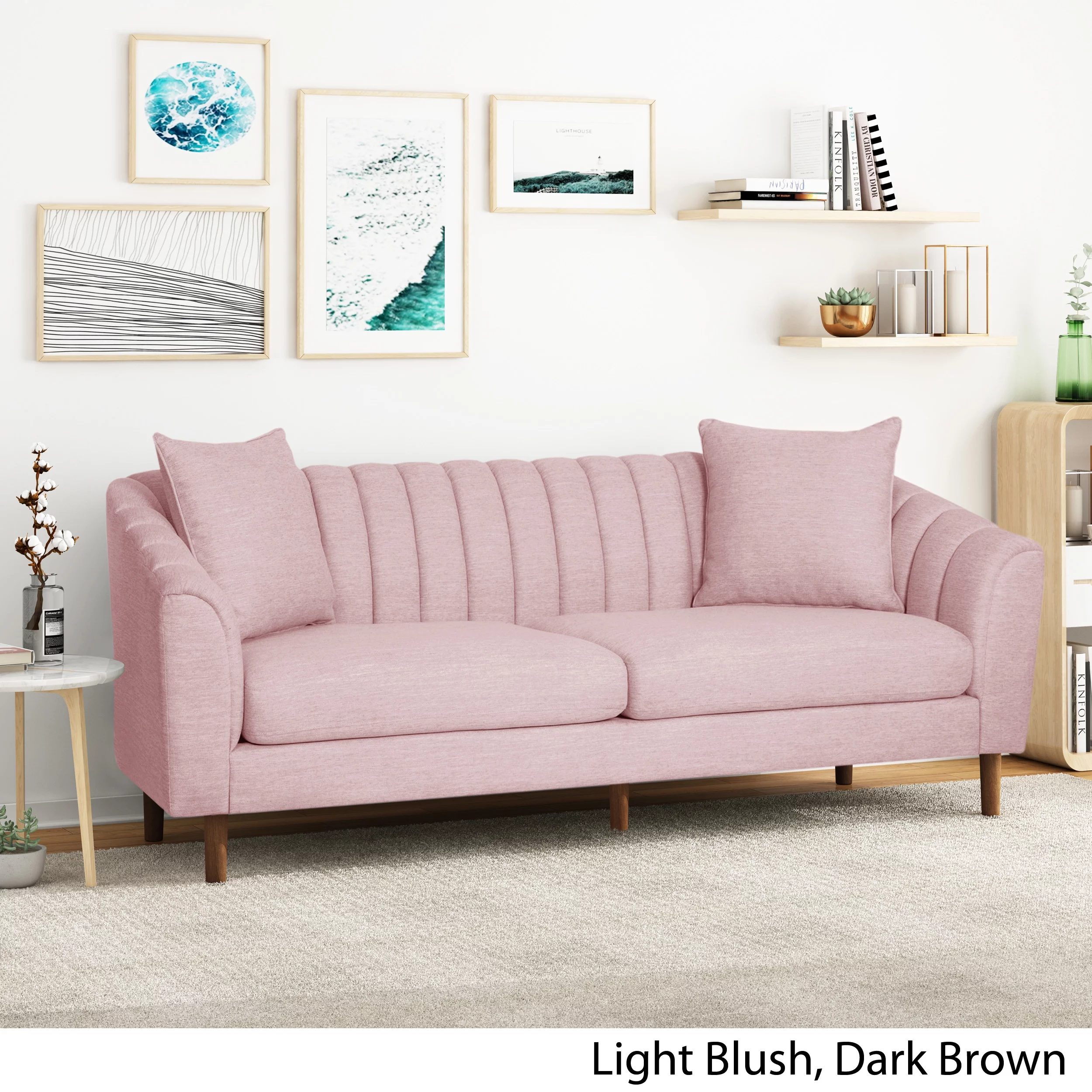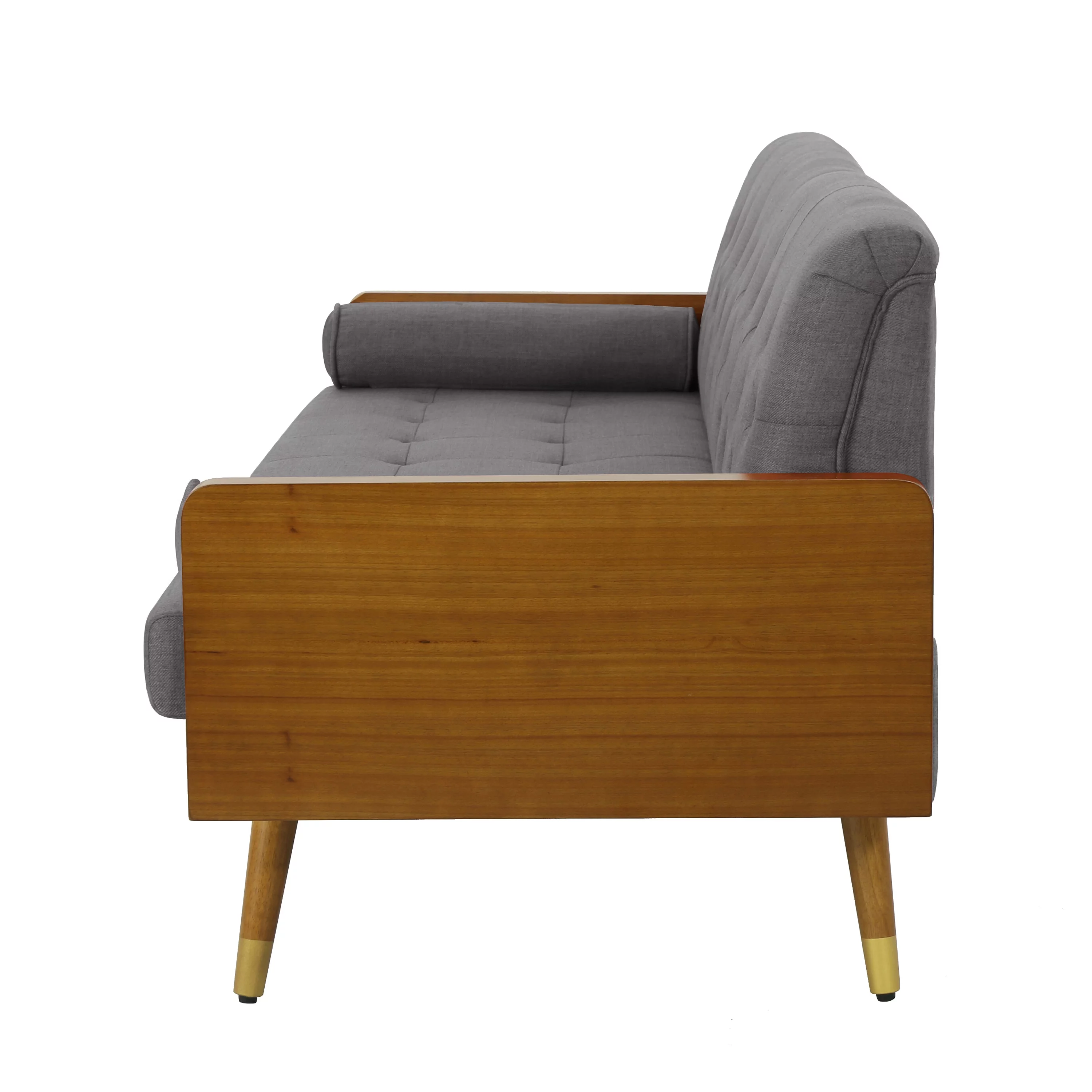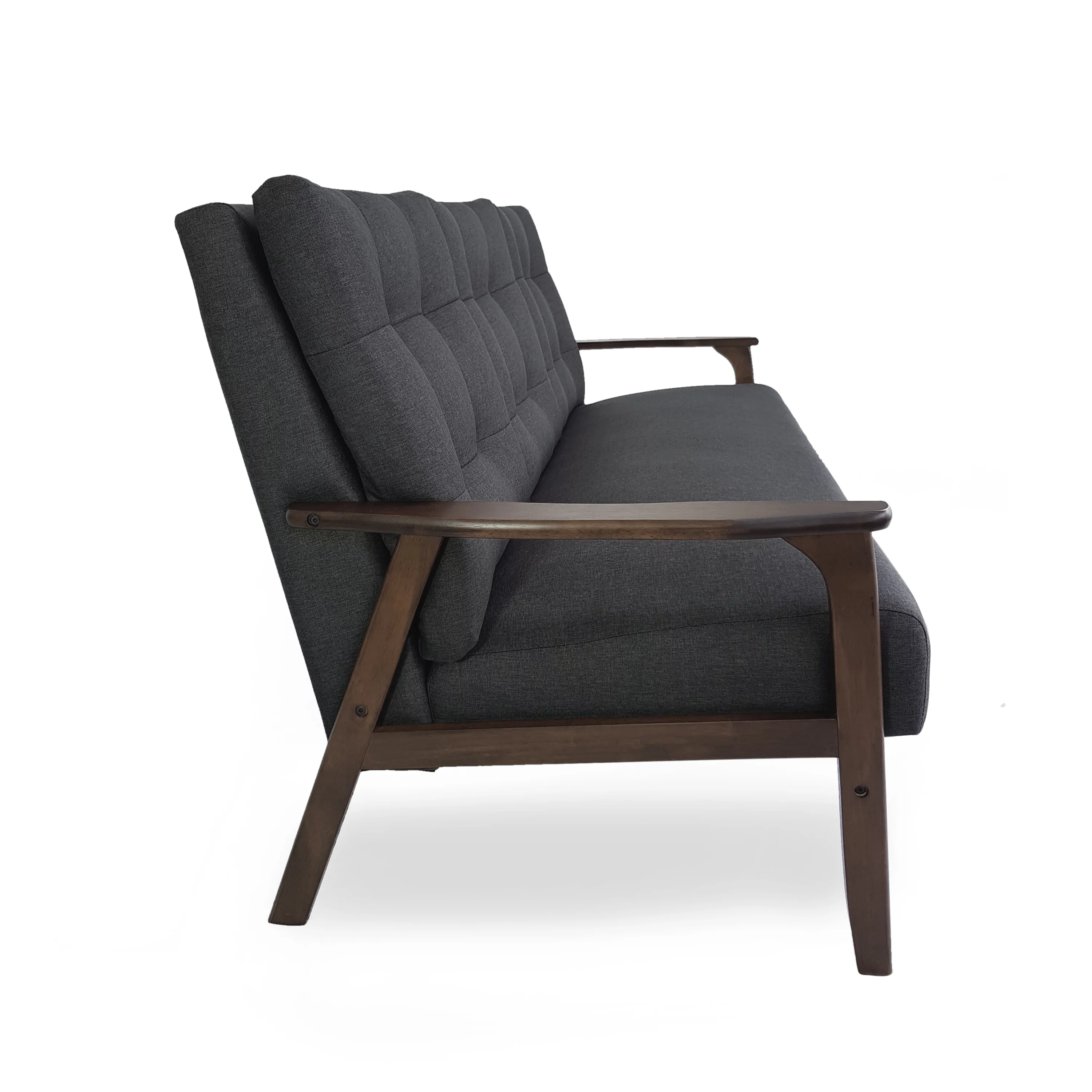 GDF Studio Norwood Mid Century Modern Fabric Tufted 3 Seater Sofa, Charcoal Gray and Walnut