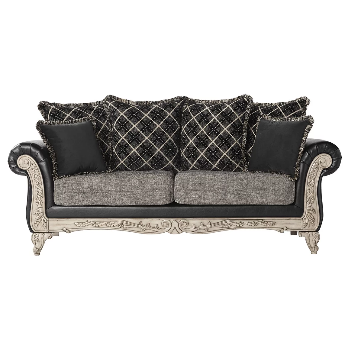 Roundhill Furniture San Marino 2-Tone Fabric Wooden Frame Sofa, Ebony