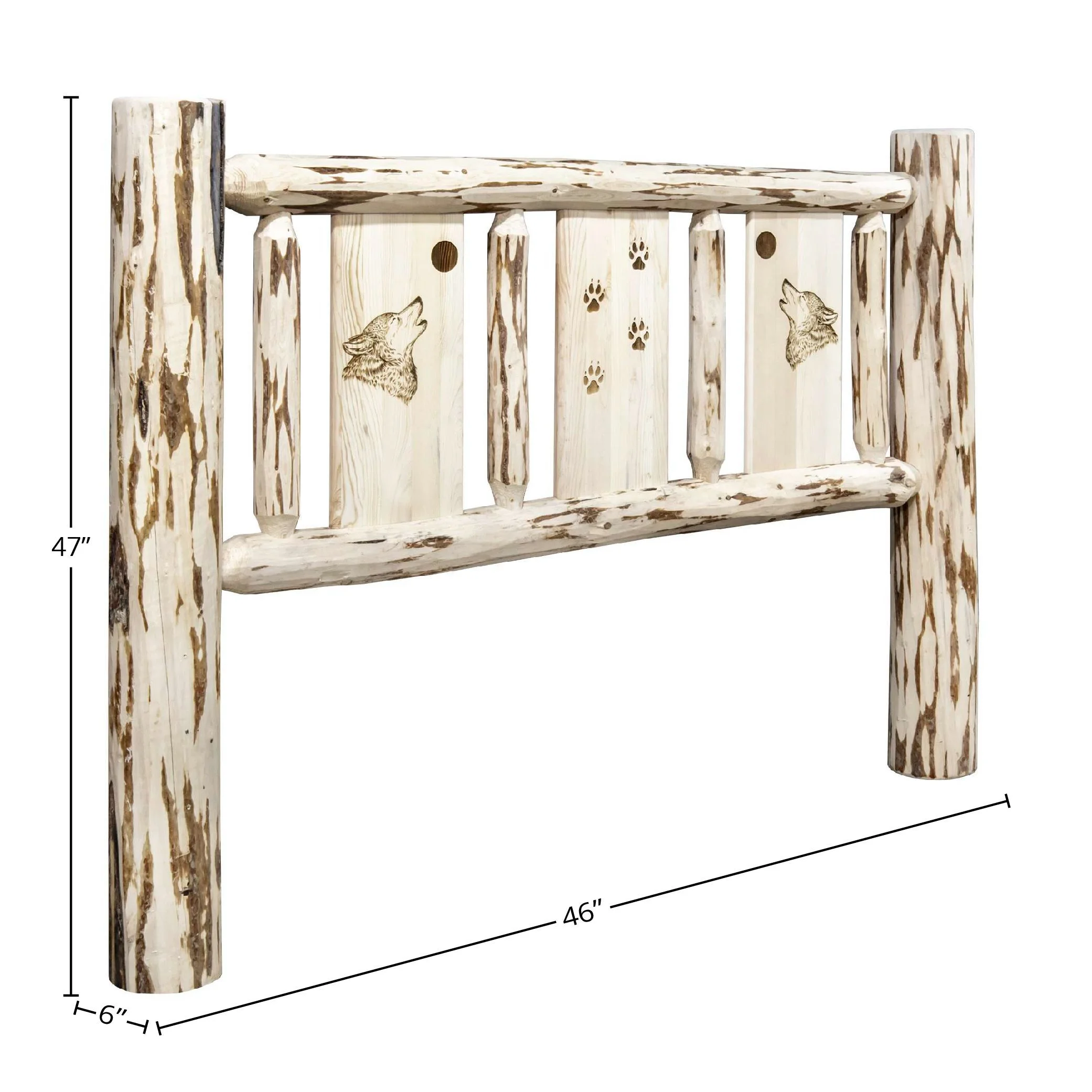 Montana Collection Twin Headboard w/ Laser Engraved Wolf Design, Clear Lacquer Finish