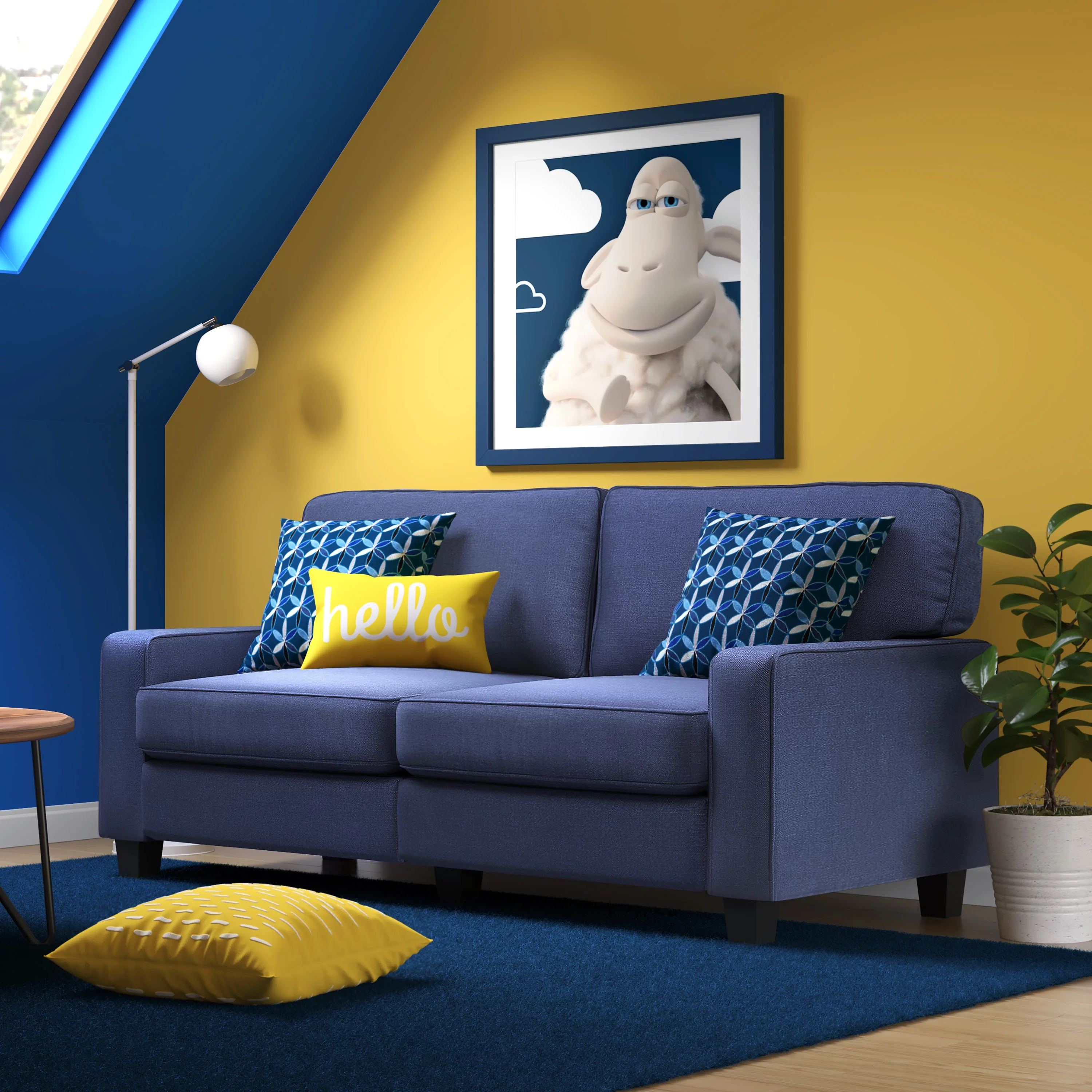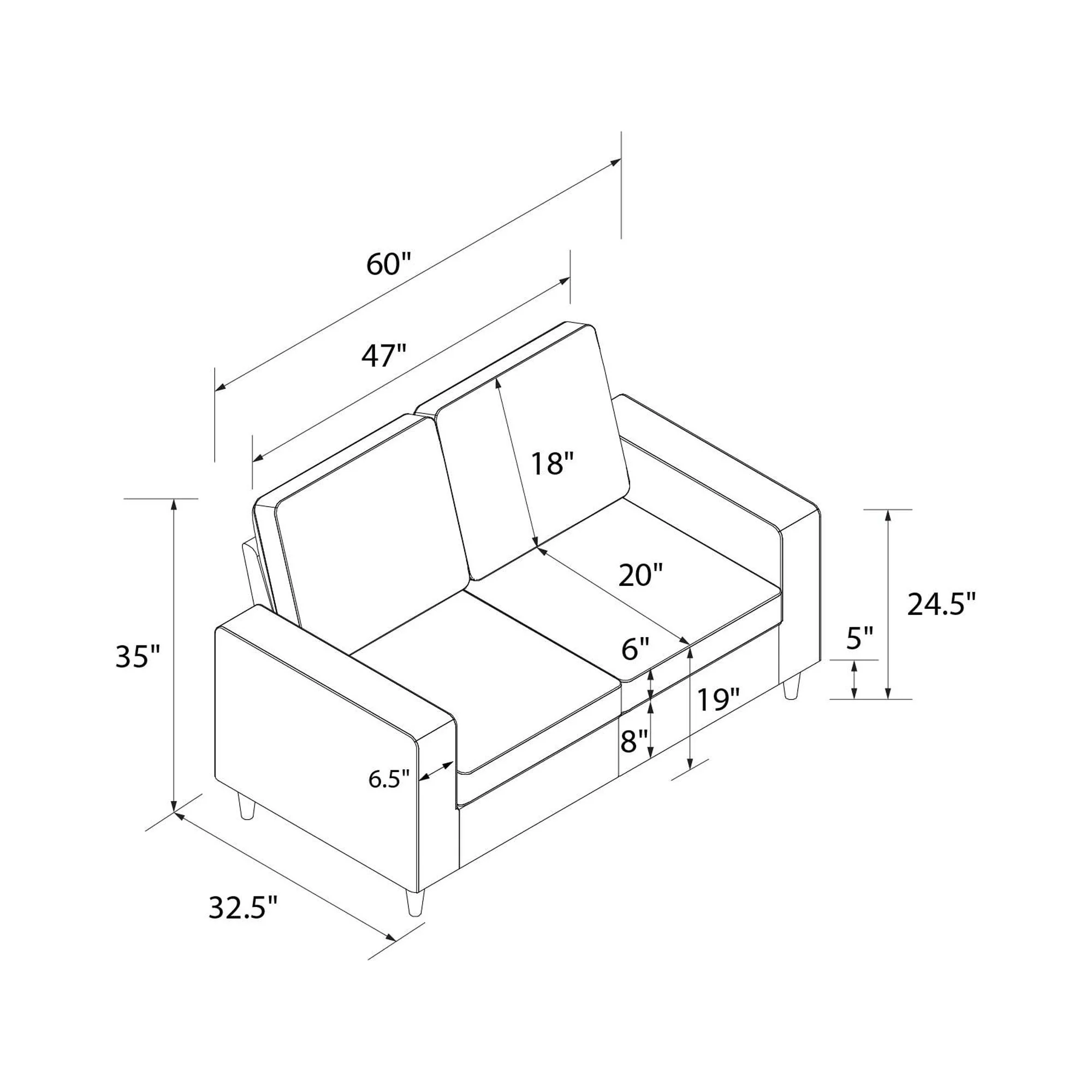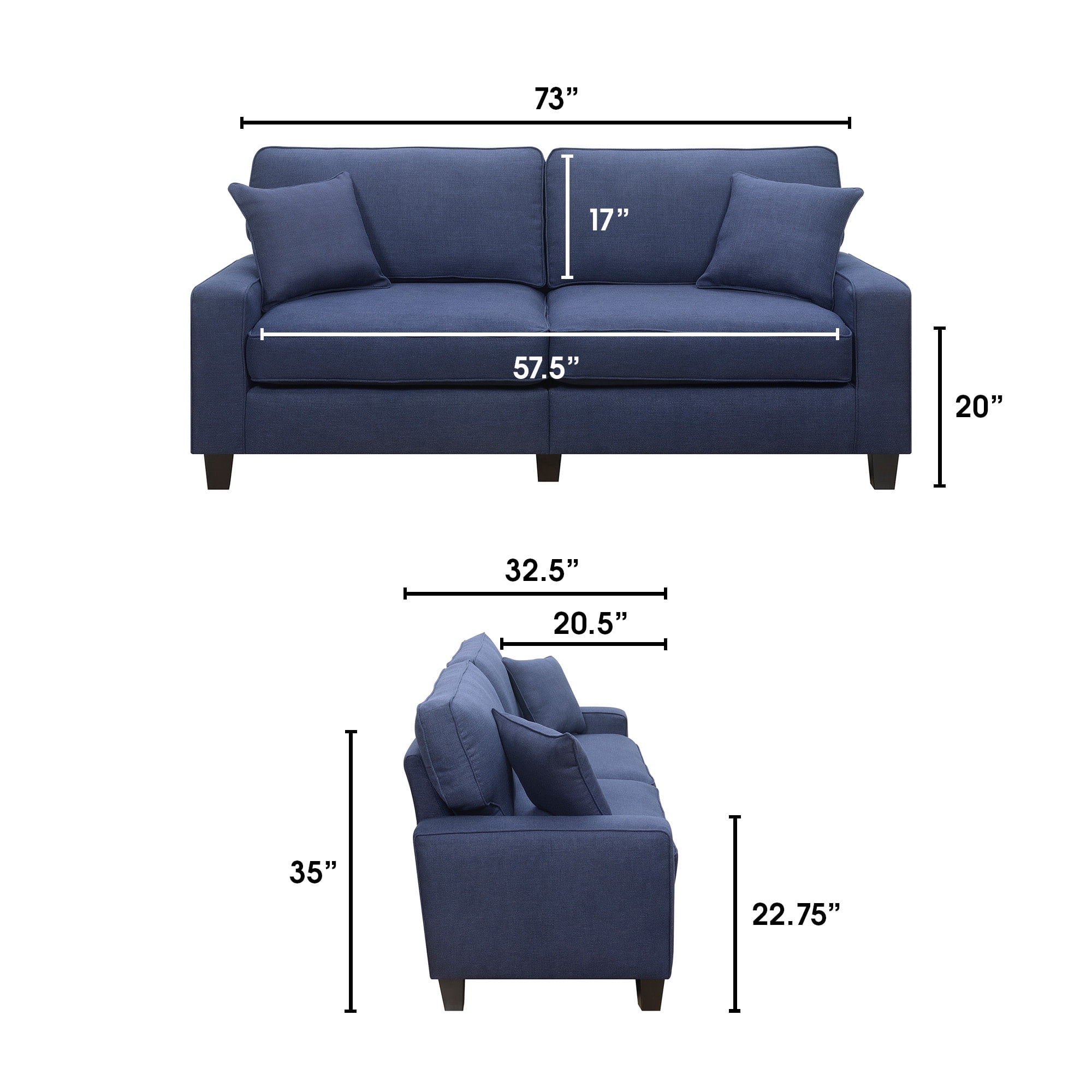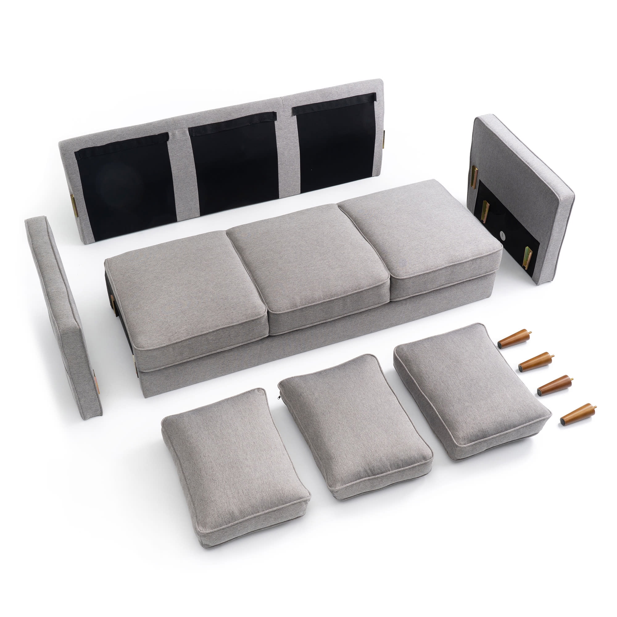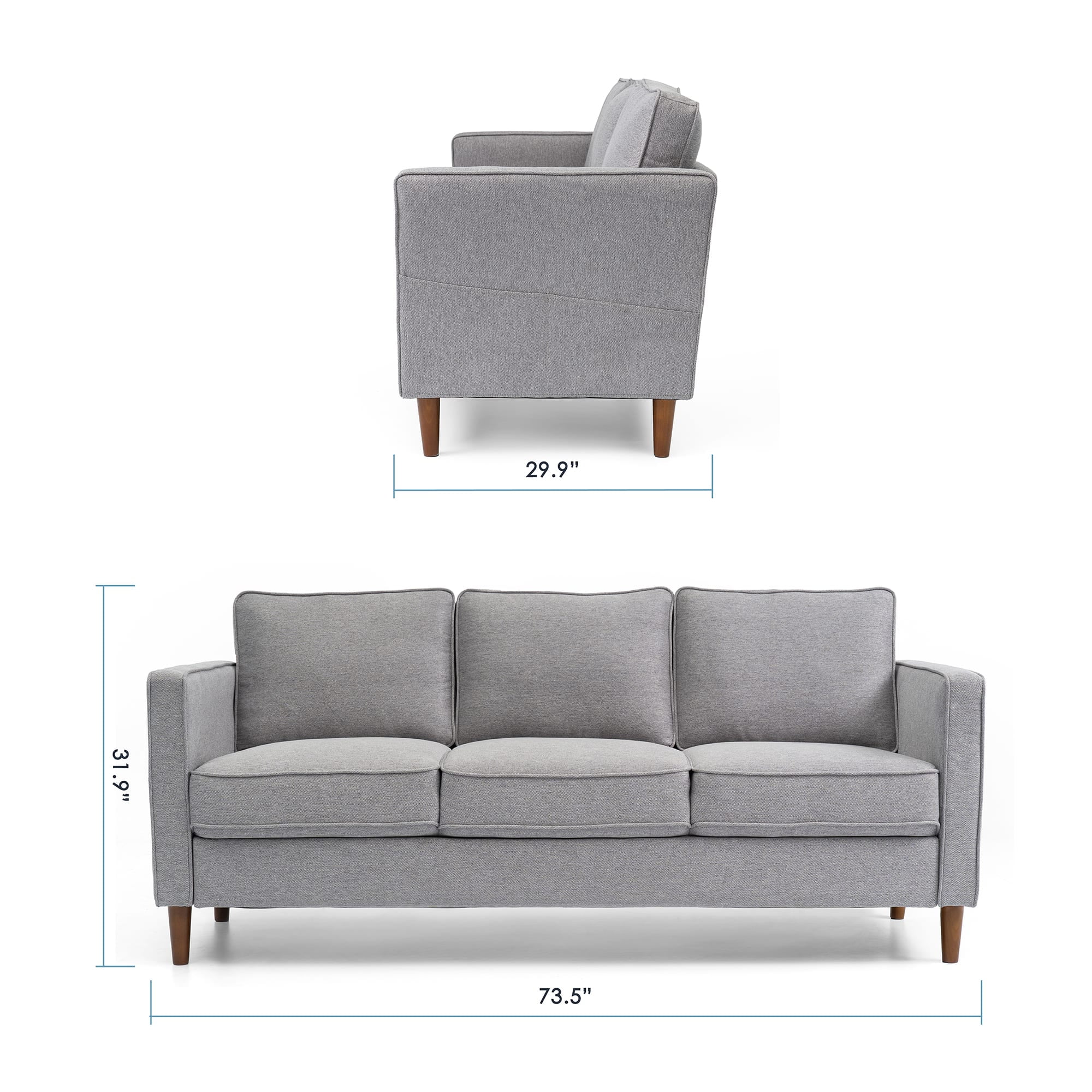 Mellow Hana Modern Upholstered Linen Fabric Sofa with Armrest Pockets, Heather Grey