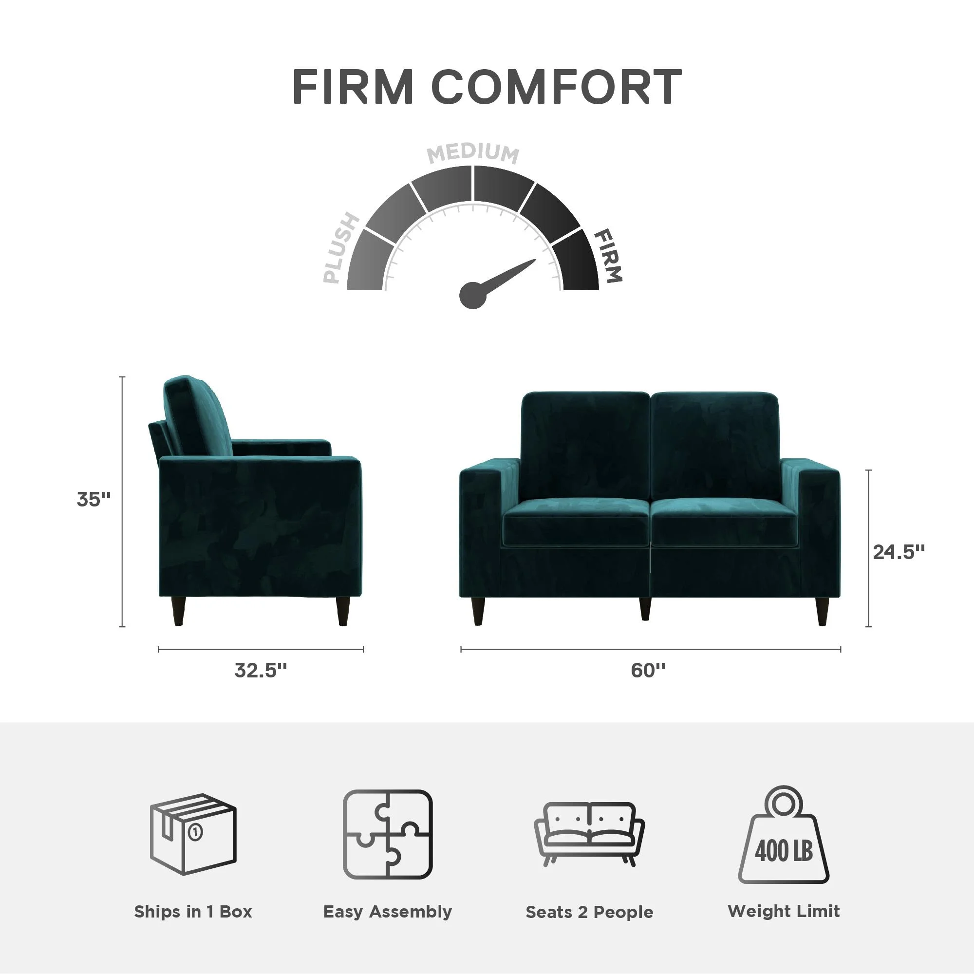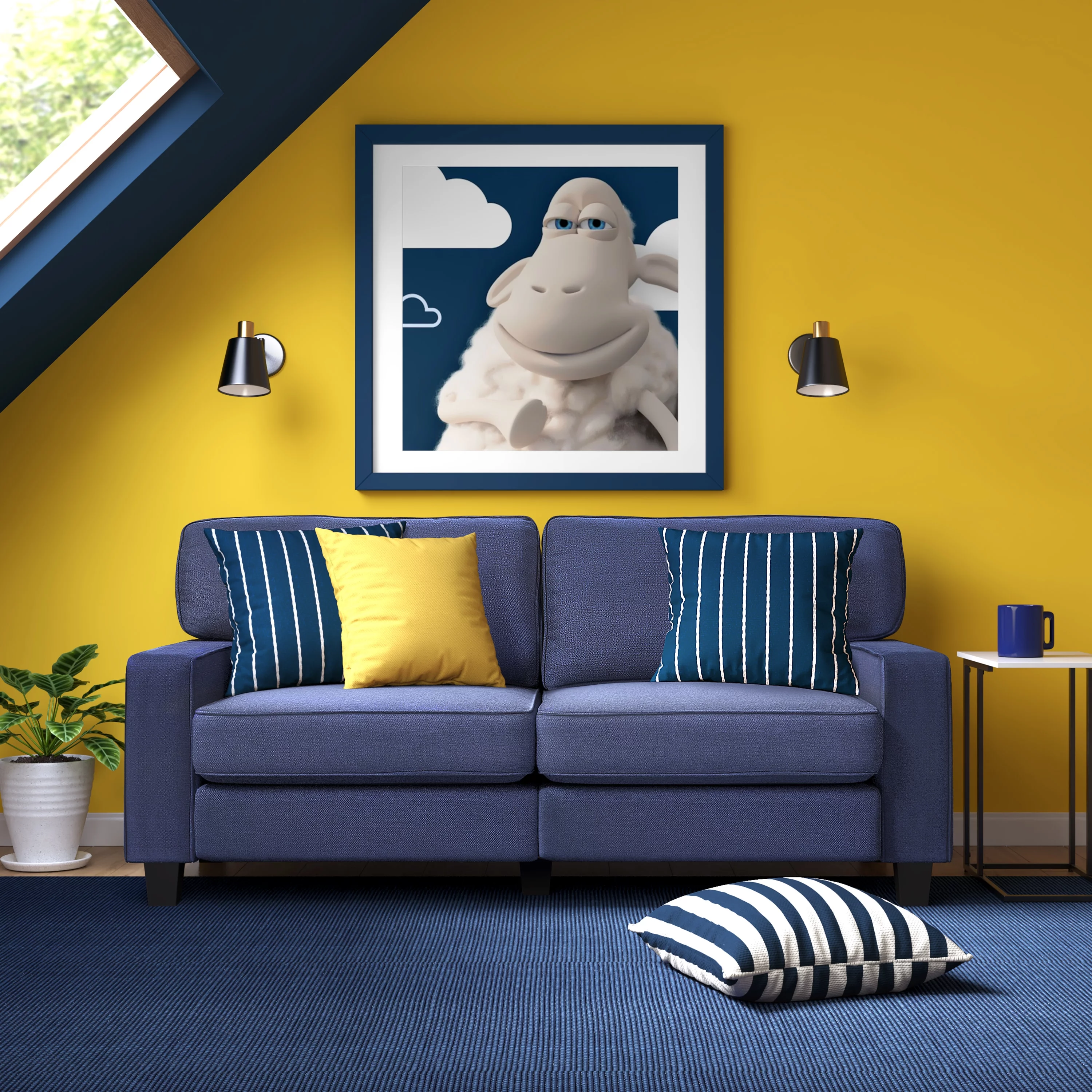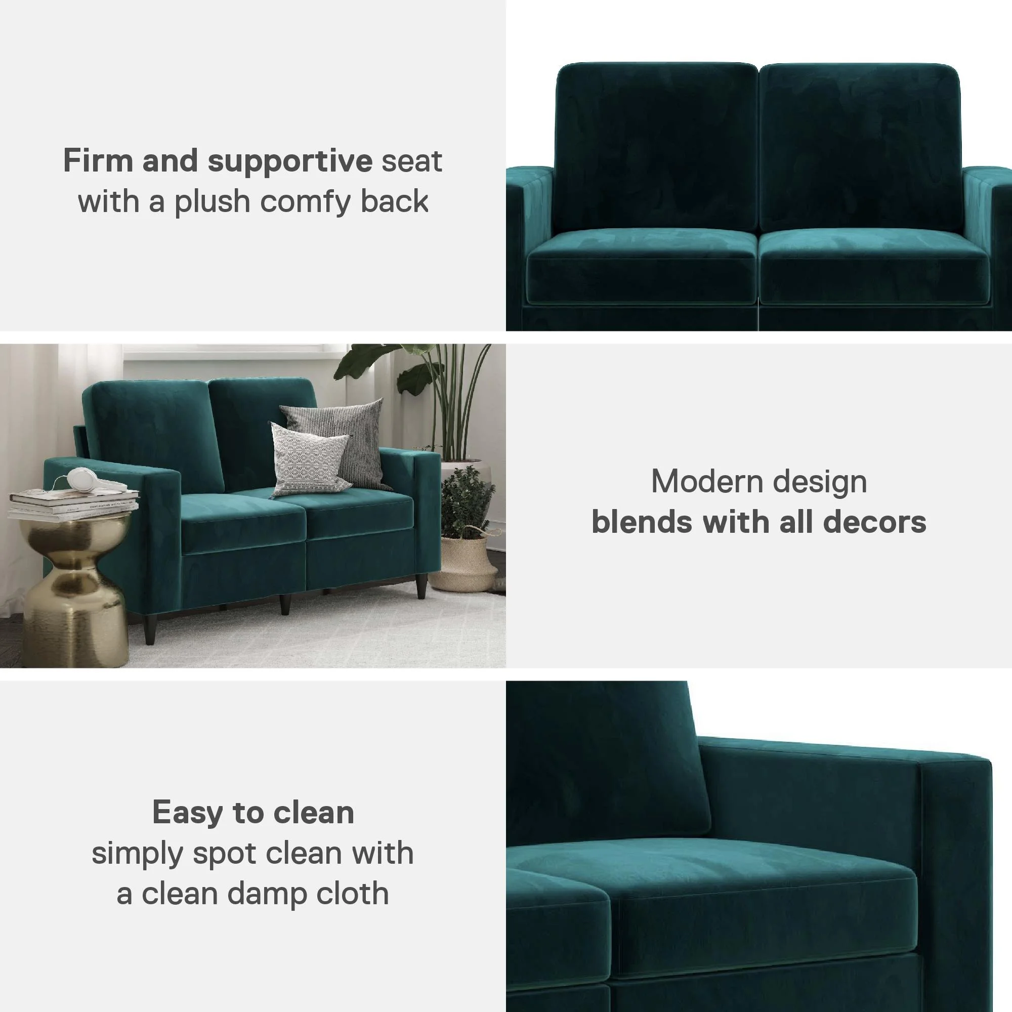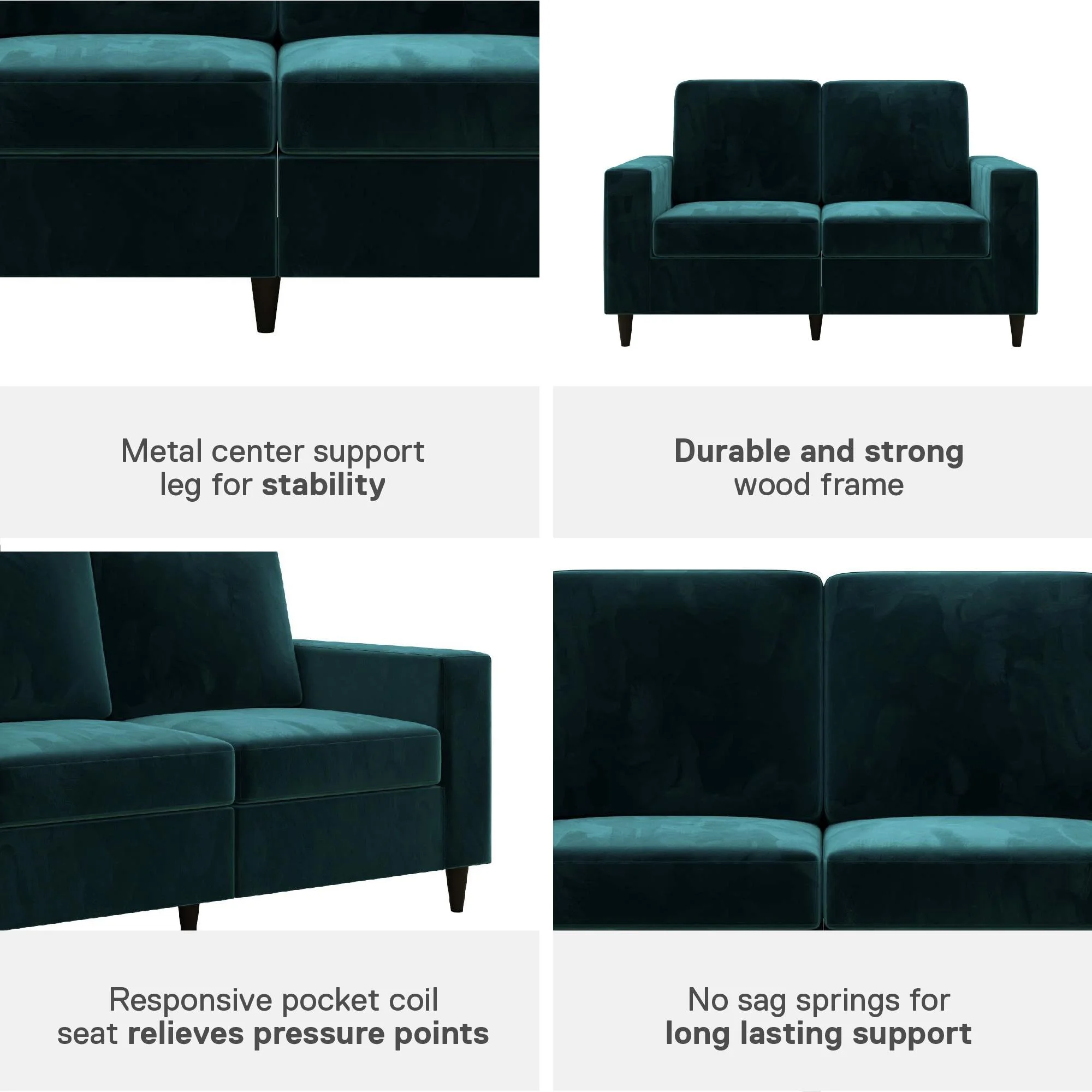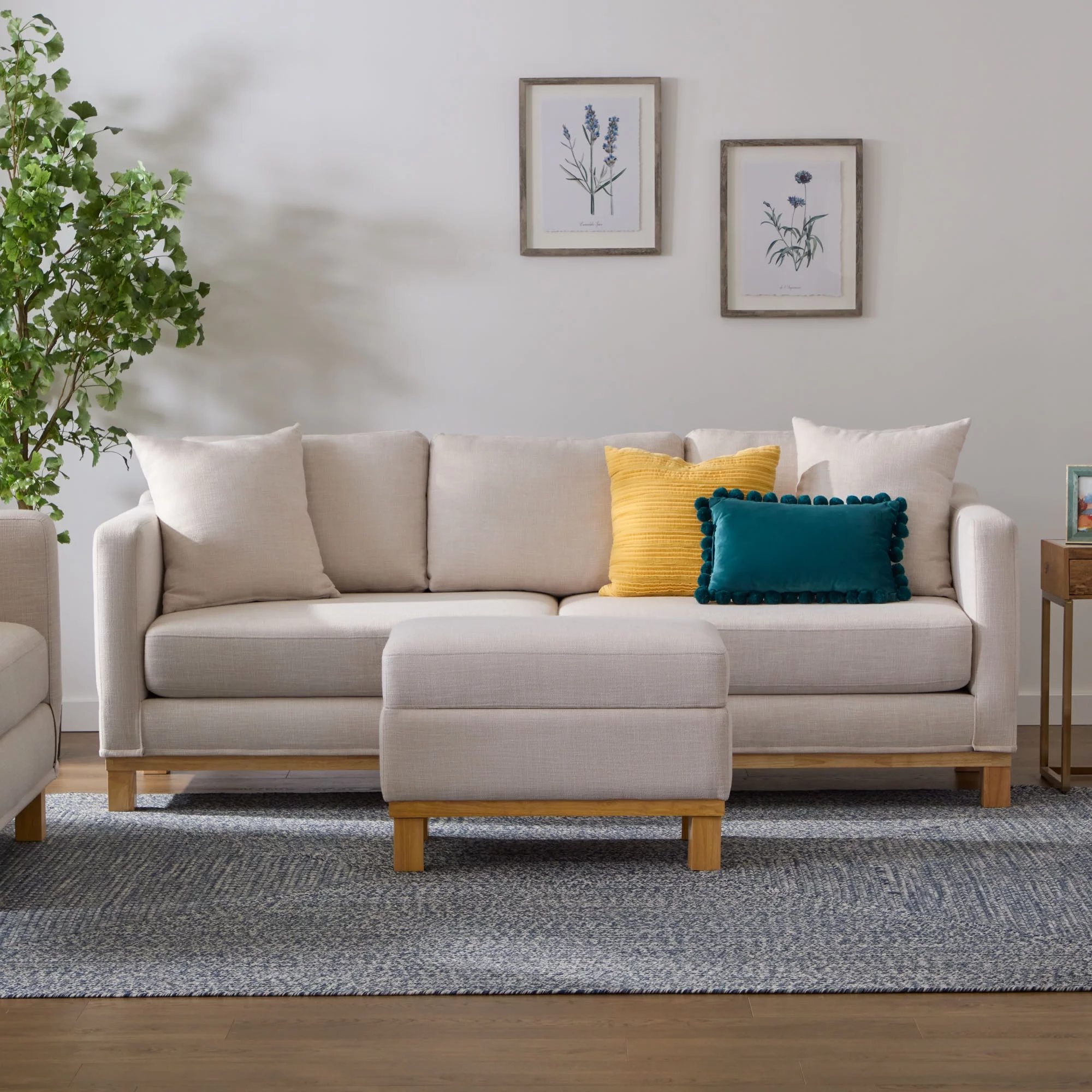Mellow Hana Modern Upholstered Linen Fabric Sofa with Armrest Pockets, Heather Grey
