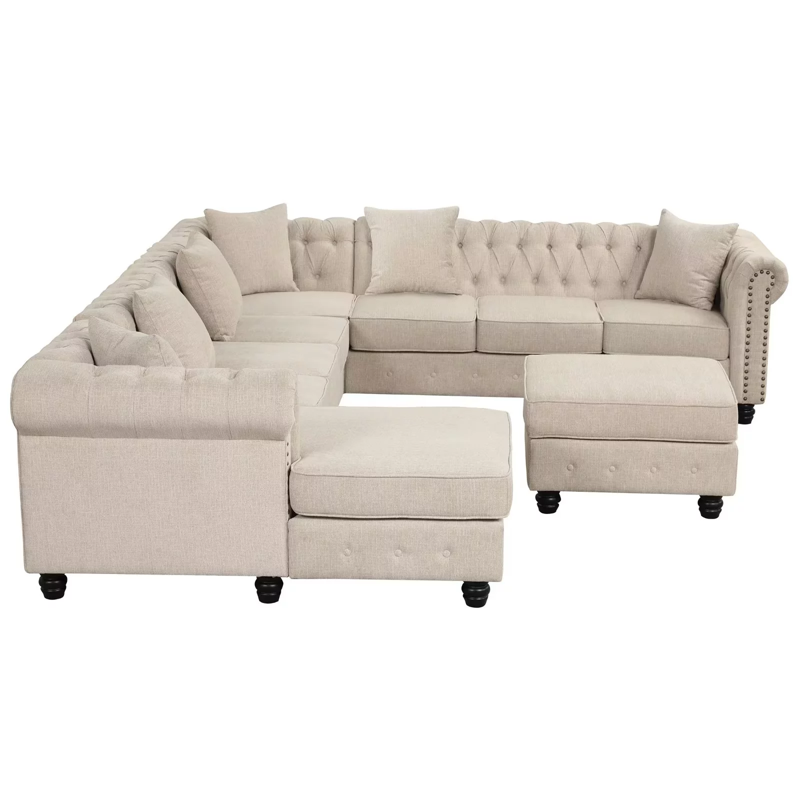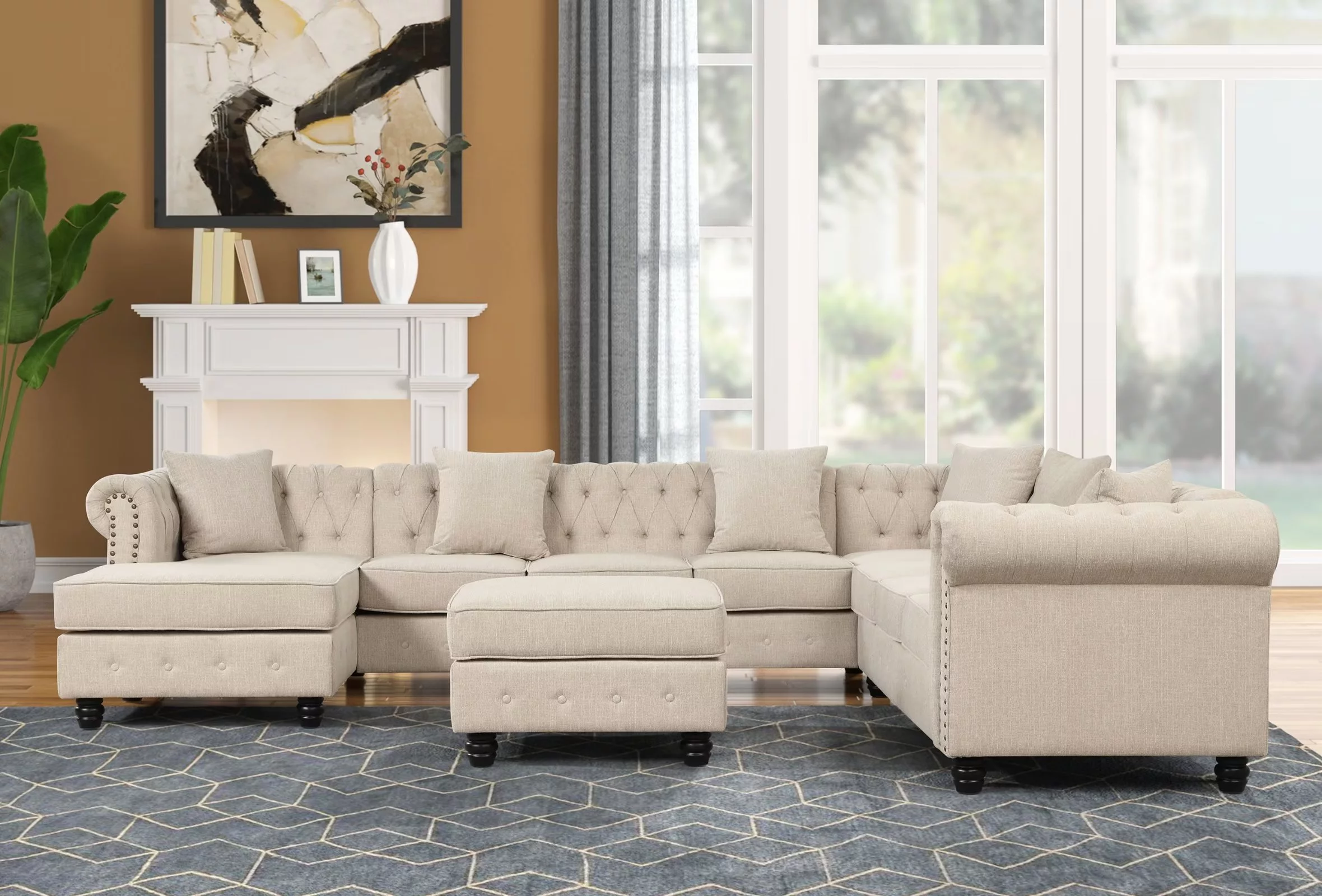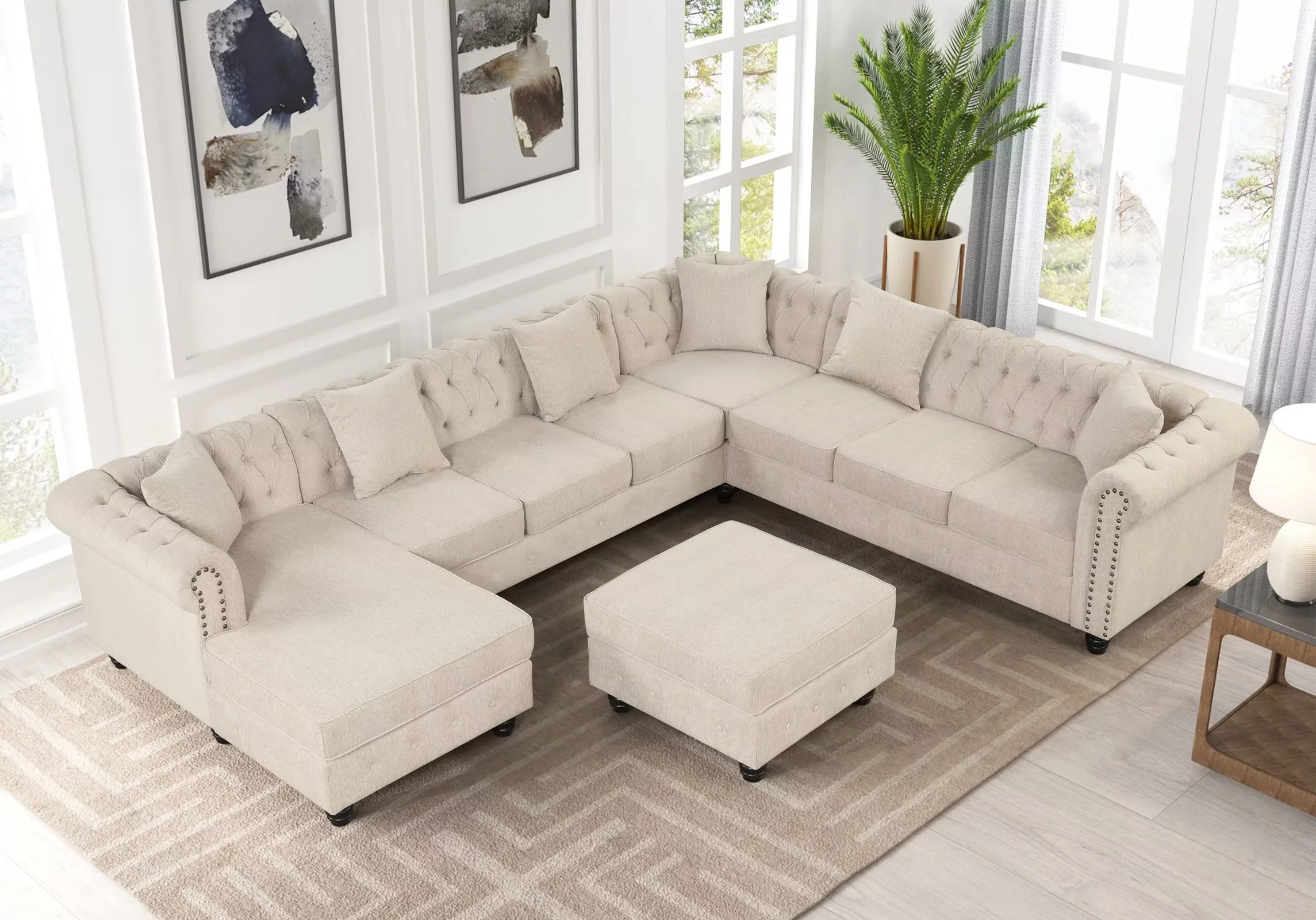 Morden Fort U Shape Modular Oversized Sectional Sofa Bed with Chaise Lounge and Ottman for Living Room Imitation chenille Beige