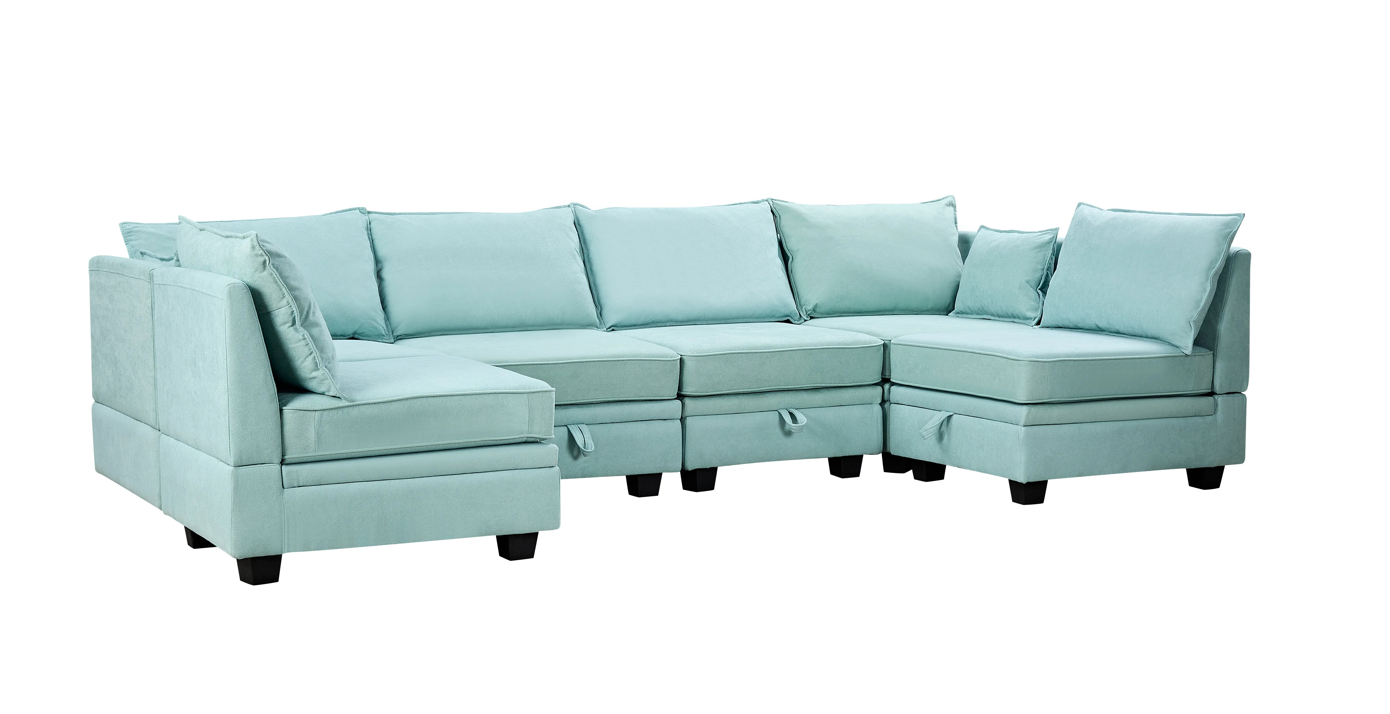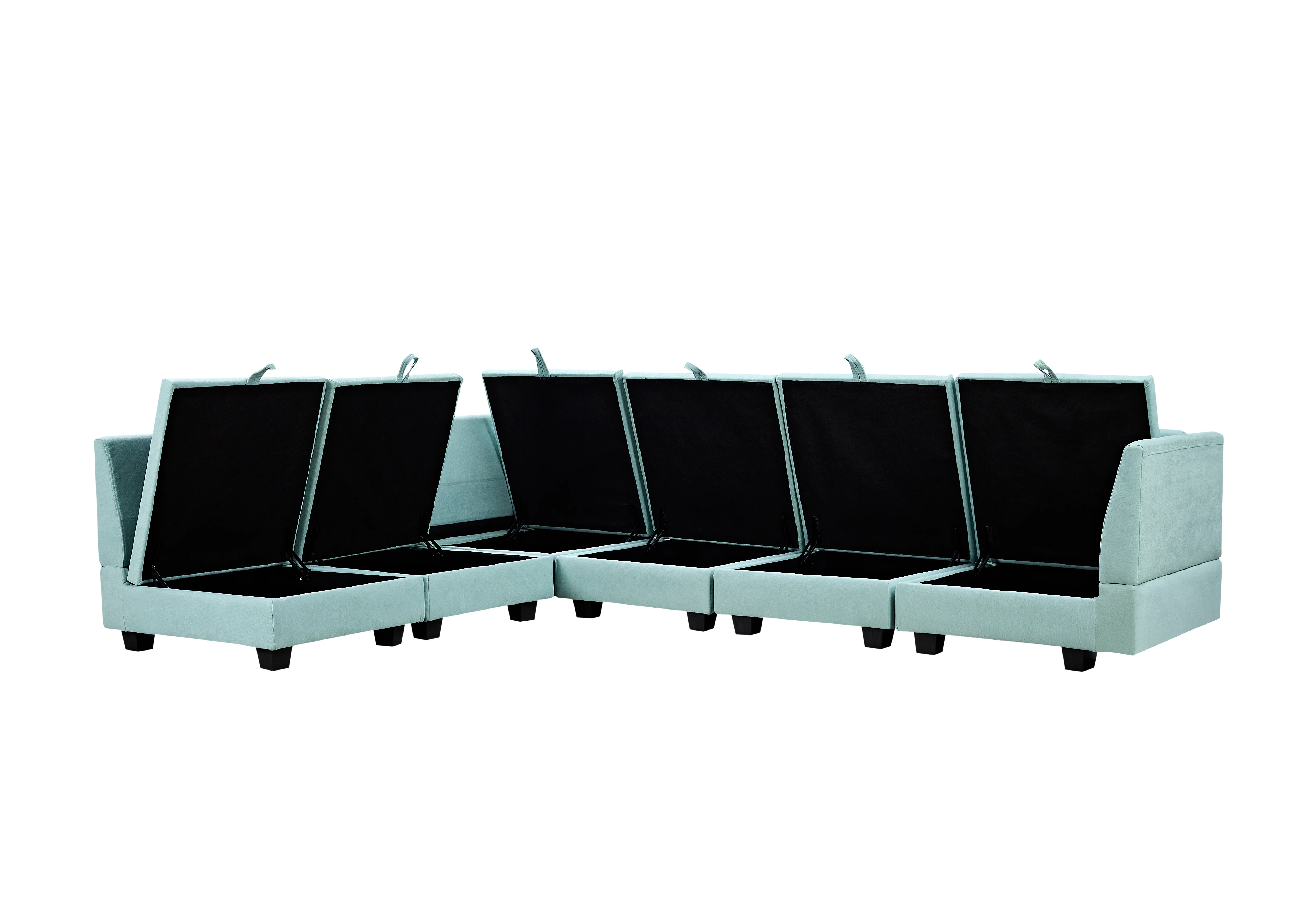 HONBAY Velvet Modular Sectional Sofa Couch Sets with Storage Ottoman with Tufted Design for Home Room, Bluish Grey