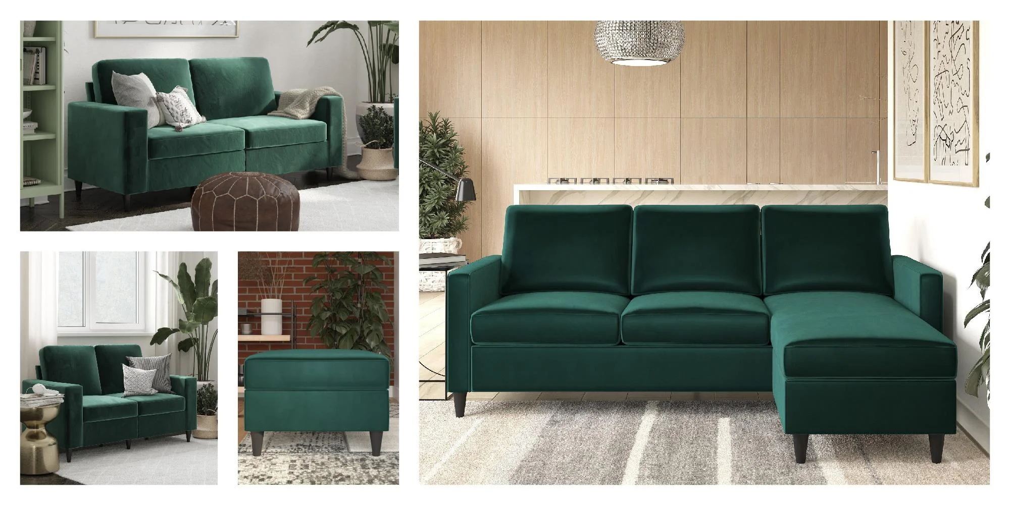 JOMEED Convertible Sectional Sofa Couch, Modern Oversized Velvet Fabric Couch Sofa Bed for Living Room, Apartment