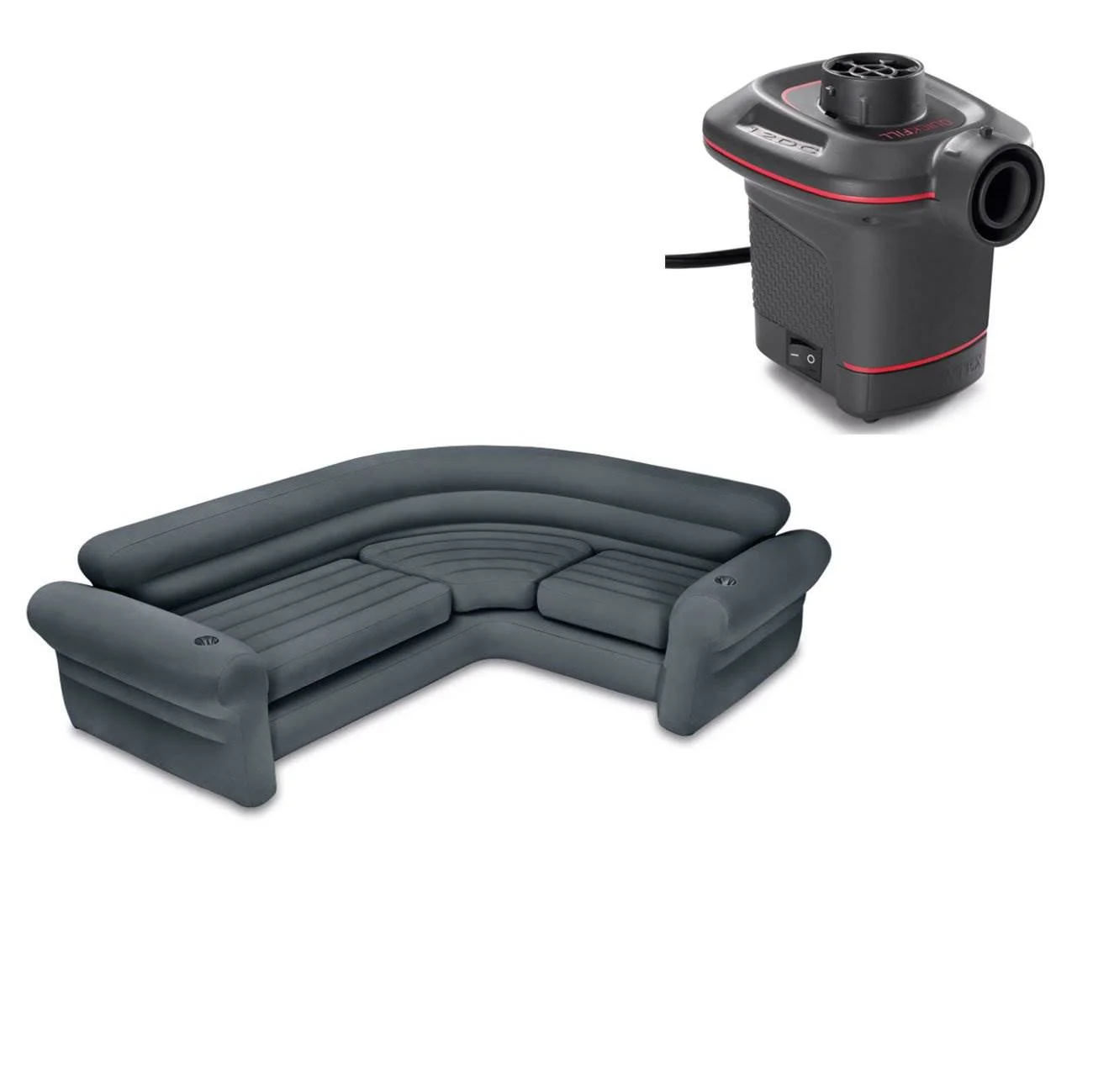 Intex Inflatable Corner Sectional Sofa w/ Cupholders & 12V Corded Electric Pump