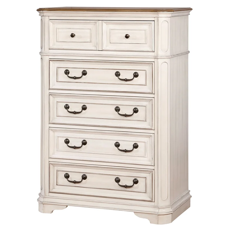Furniture of America Mayves Transitional Wood 5-Drawer Chest in Antique White
