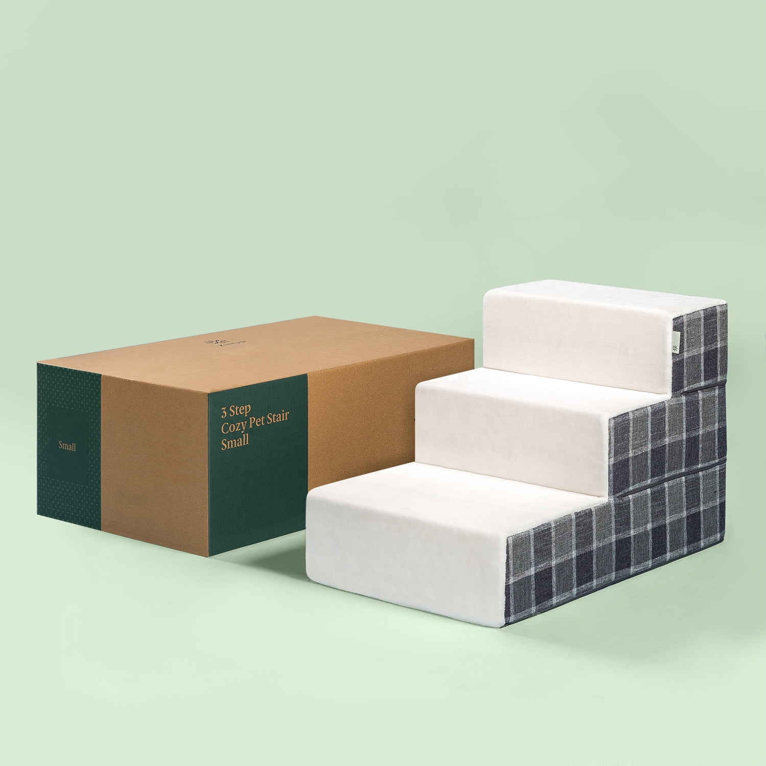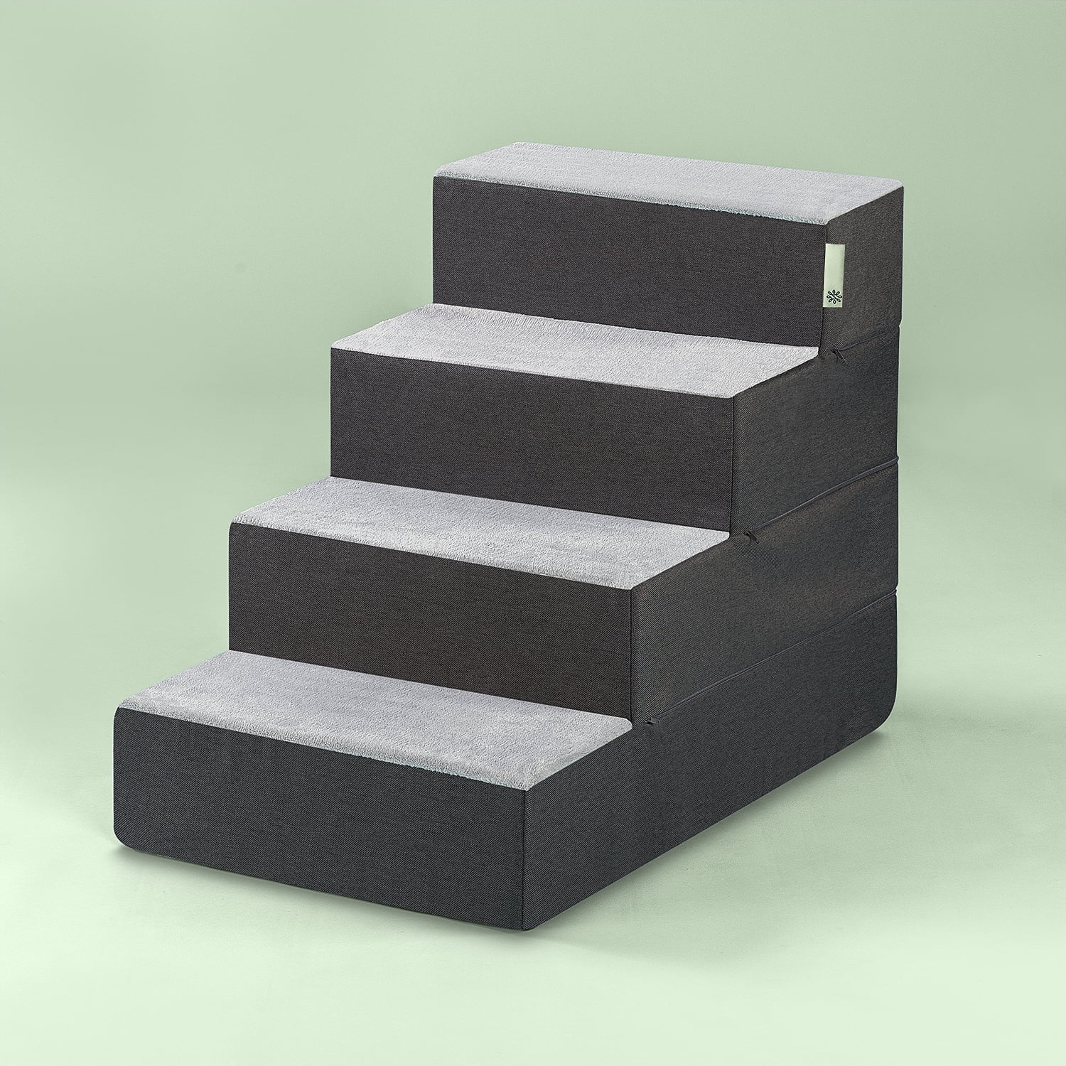PawHut 4-Step Wooden Pet Stair Pet Steps with Soft Short Plush Cushion