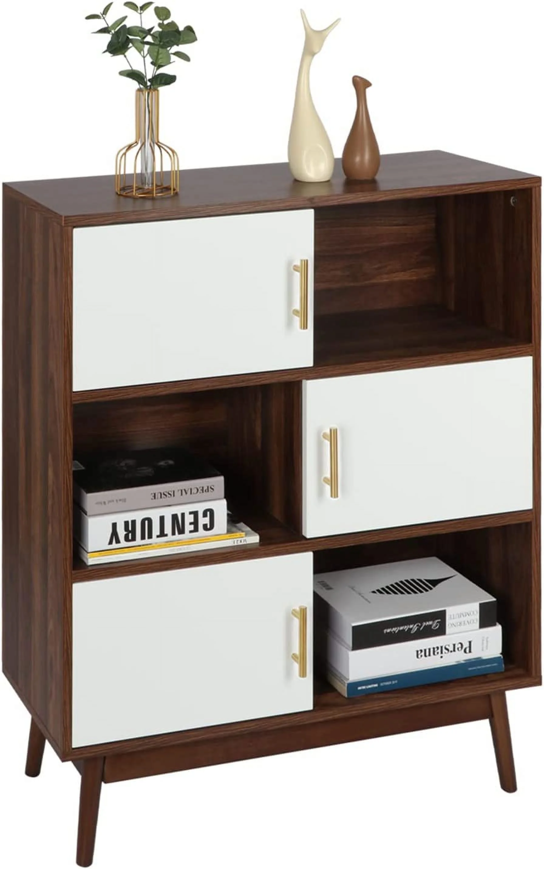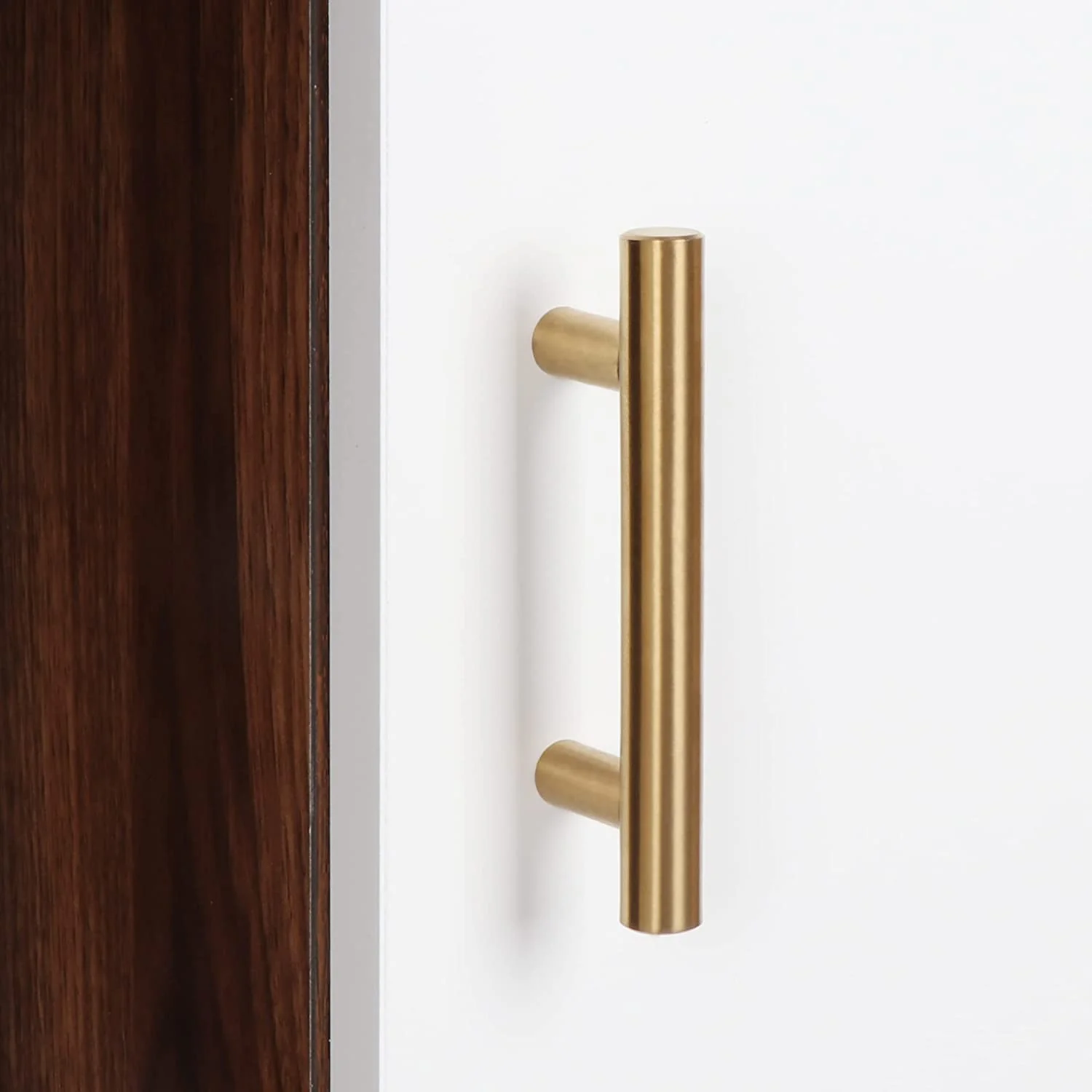 Modern 3 Drawer Chest Dresser Mid Century Natural Oak Organizer Bedroom Furniture with Gold Metal Legs H0037