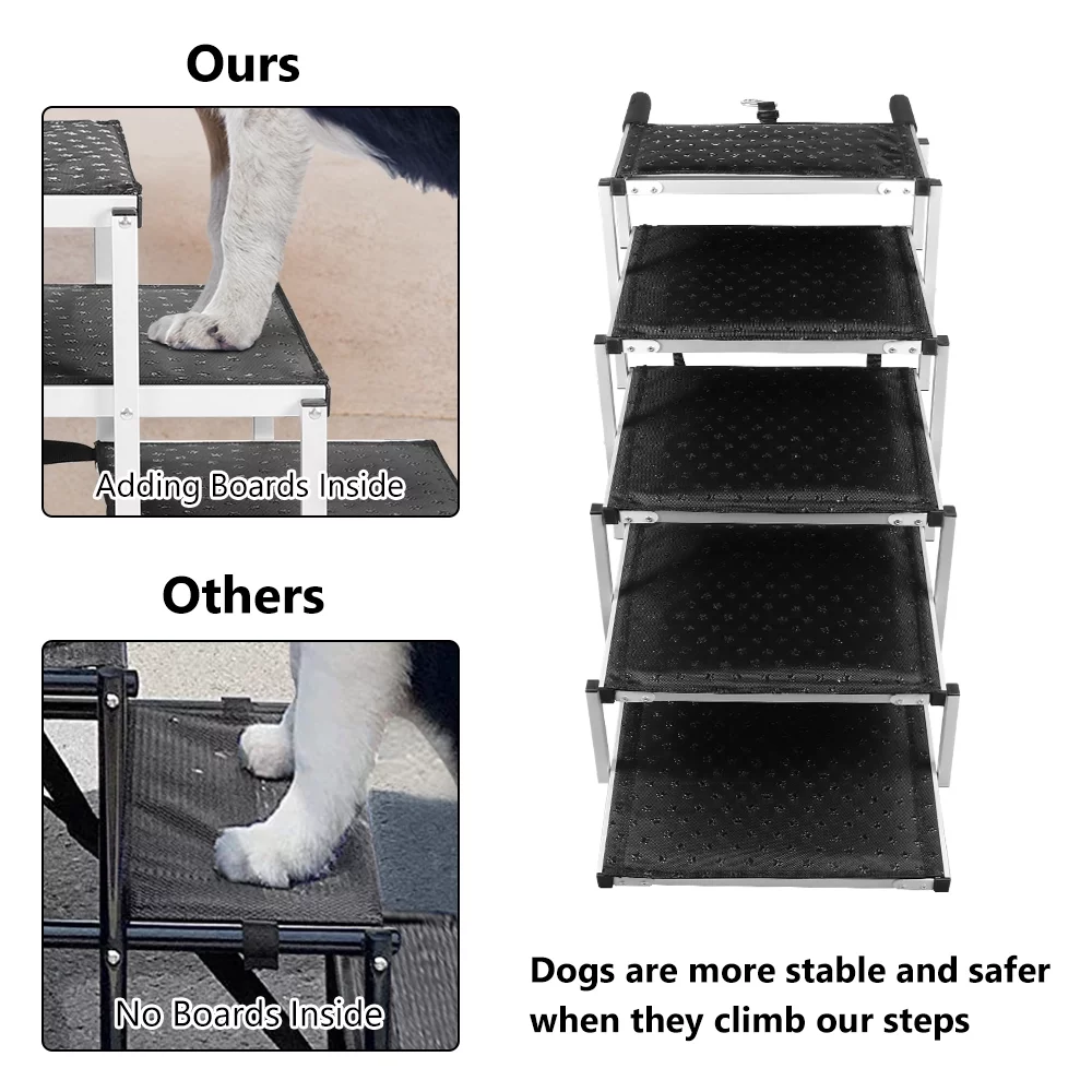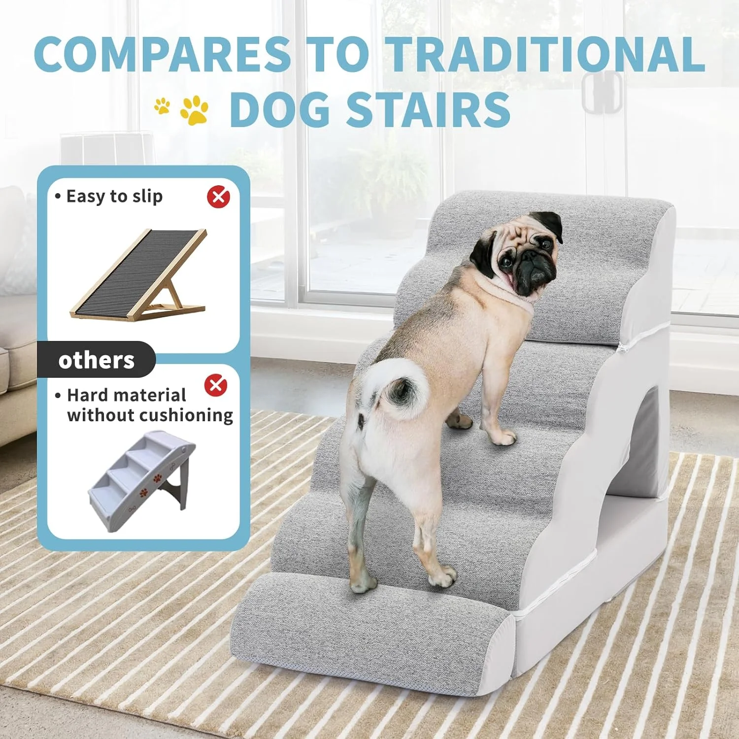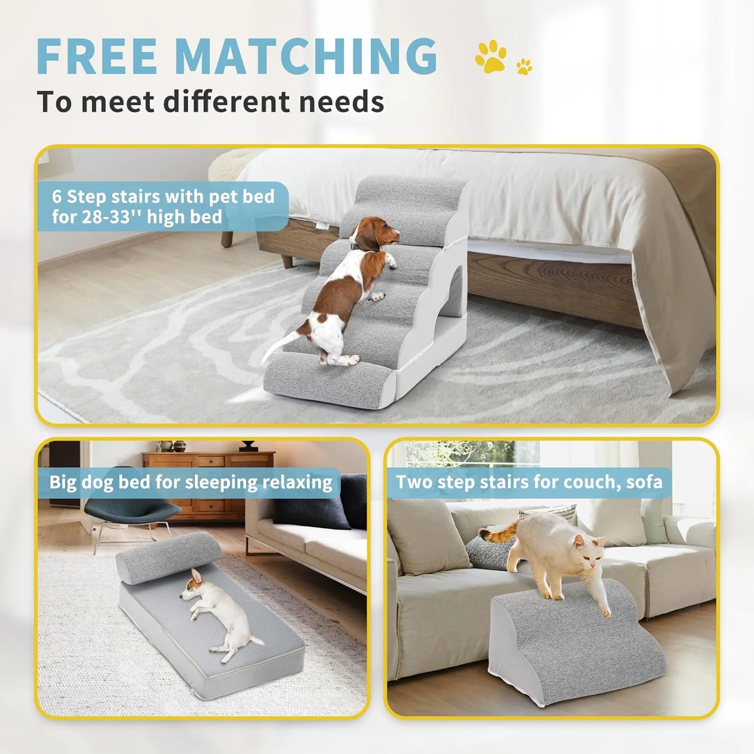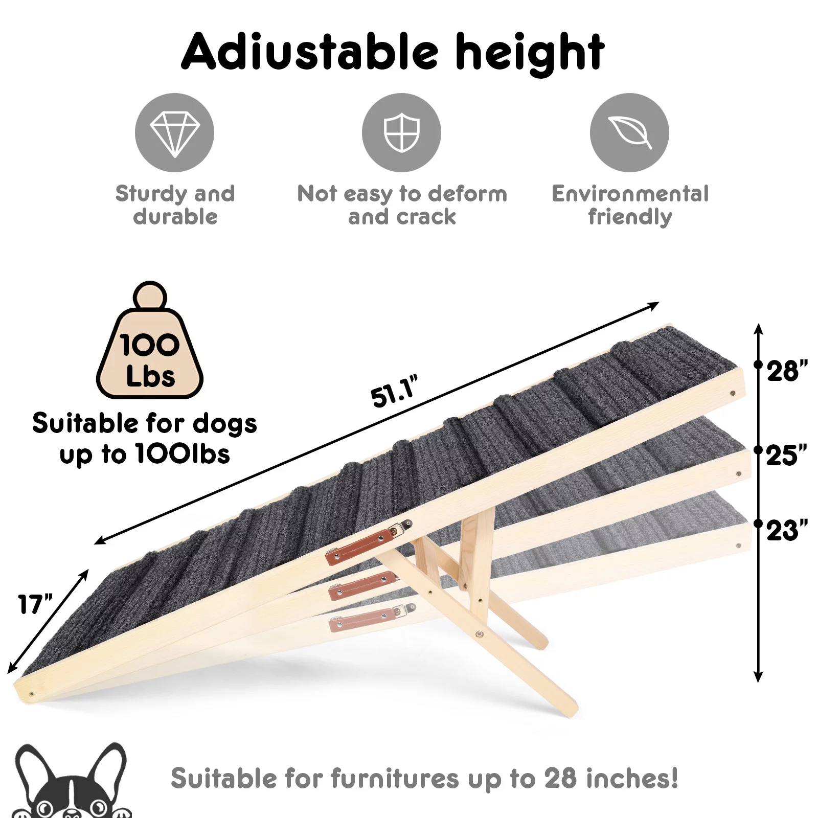 Arf Pets Wood Dog Stairs, High Beds Ramp Adjustment Wide Pet Steps, For Cat and Dogs
