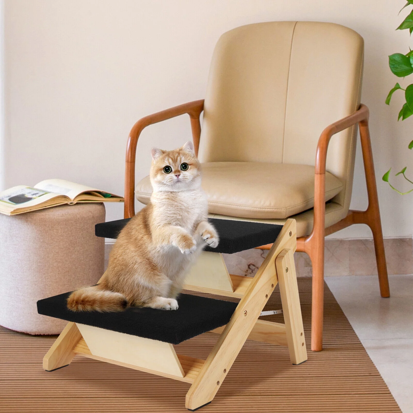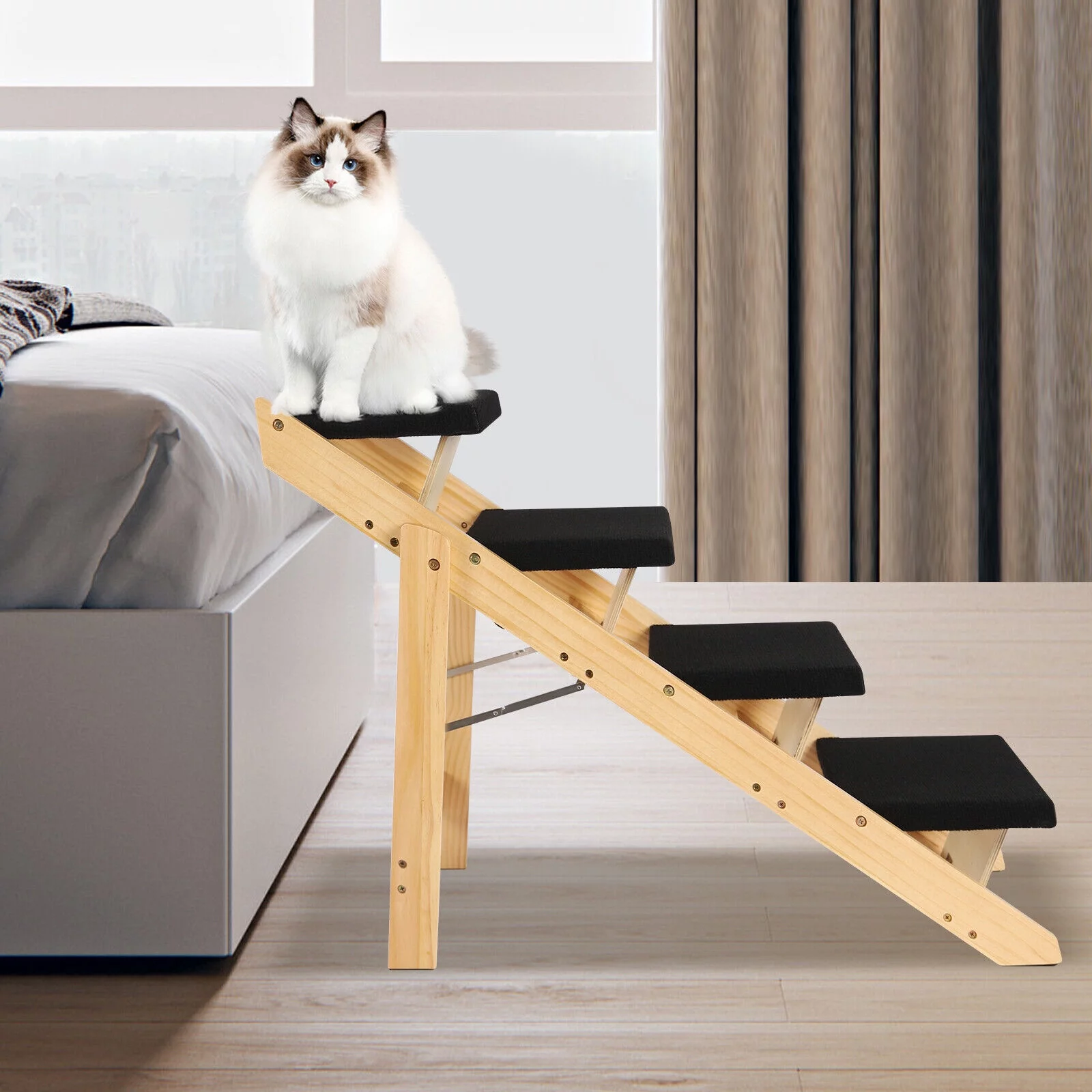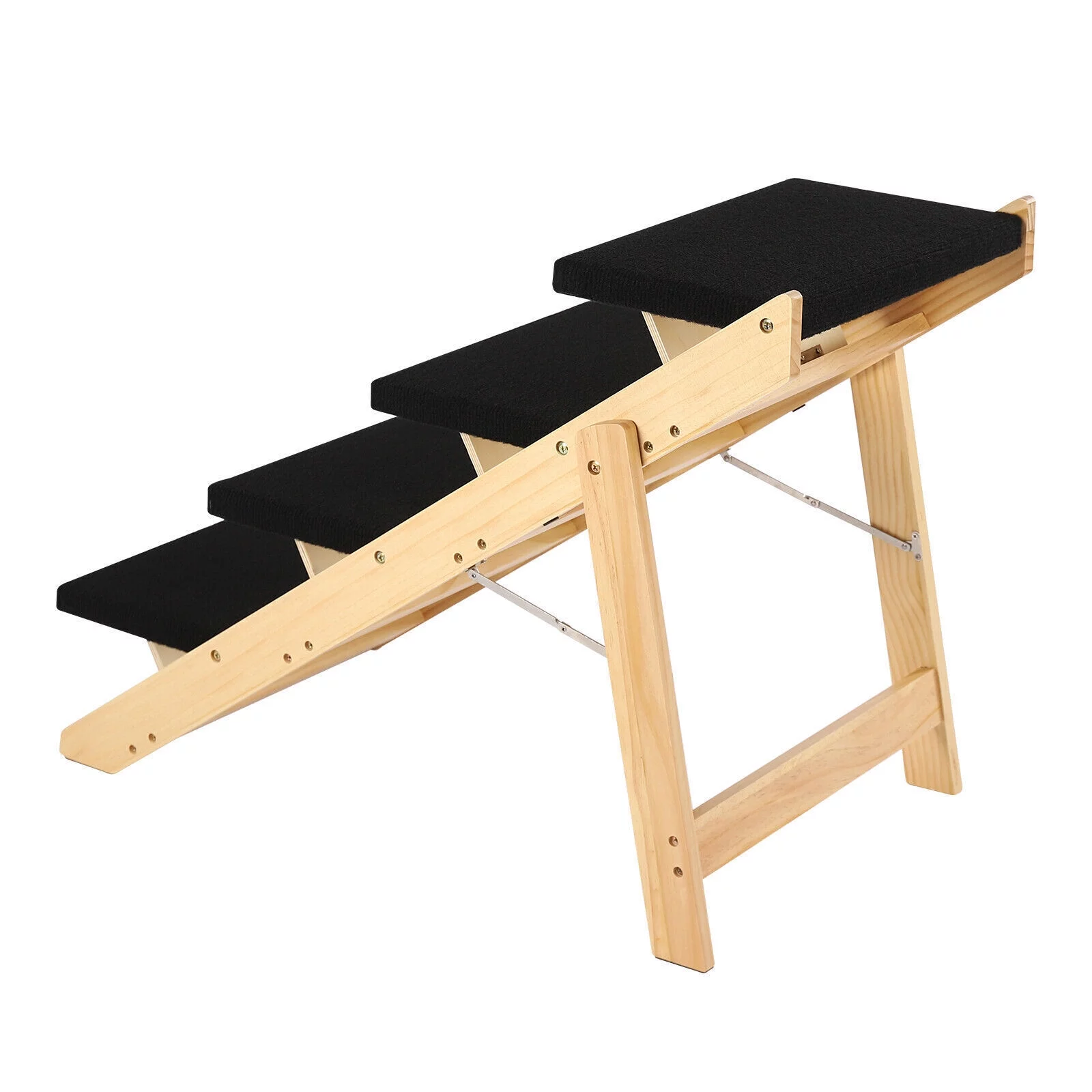 Freestanding Wooden Pet Stair Foldable Wooden Pet Ramp Cat Dog Wood Steps Ladder Stairs High Bed